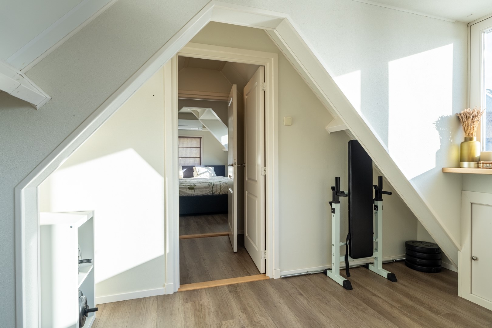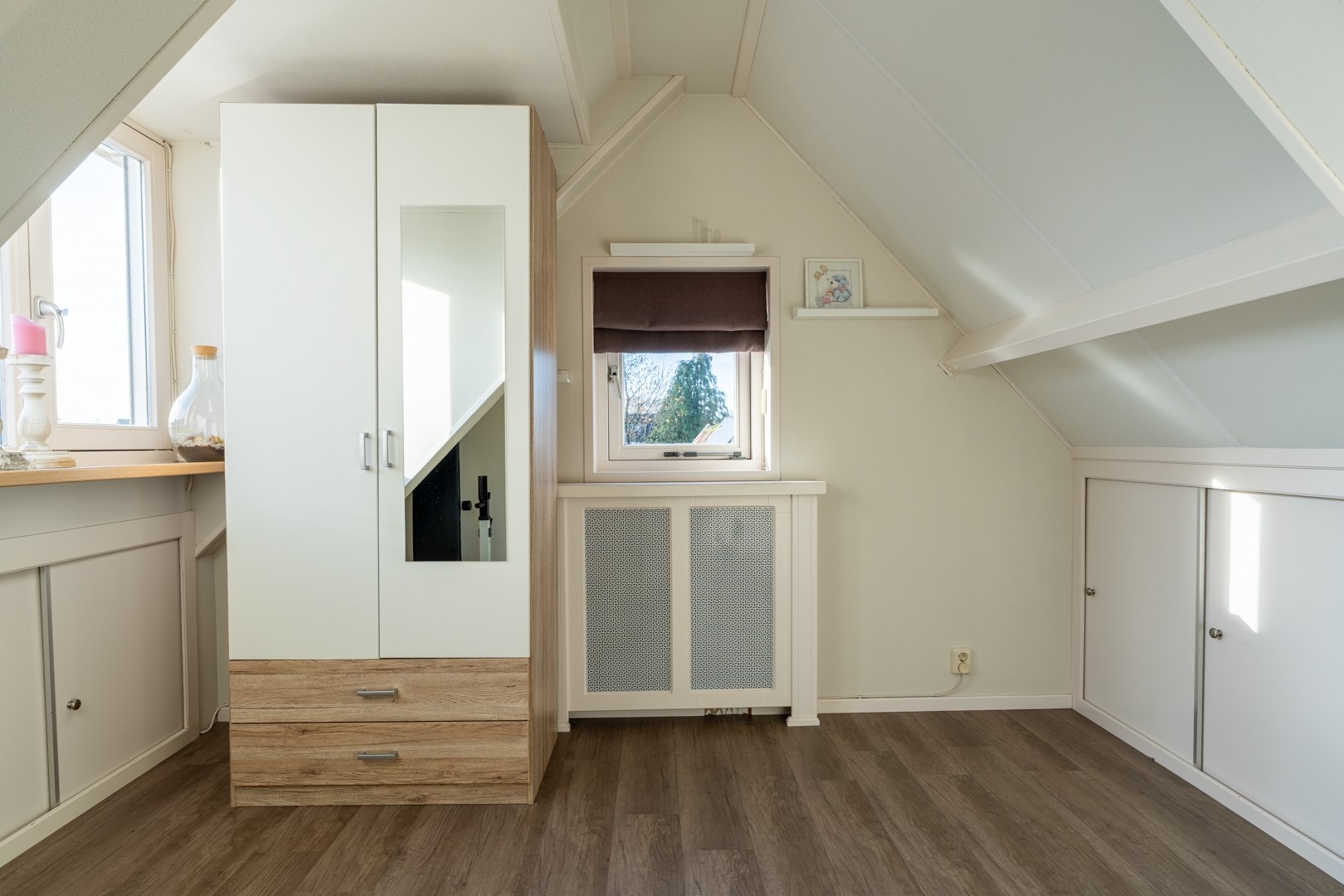 Overloop met vaste trapopgang en vaste kastruimte, 2 ruime slaapkamers met dakkapel en vaste kastruimte.