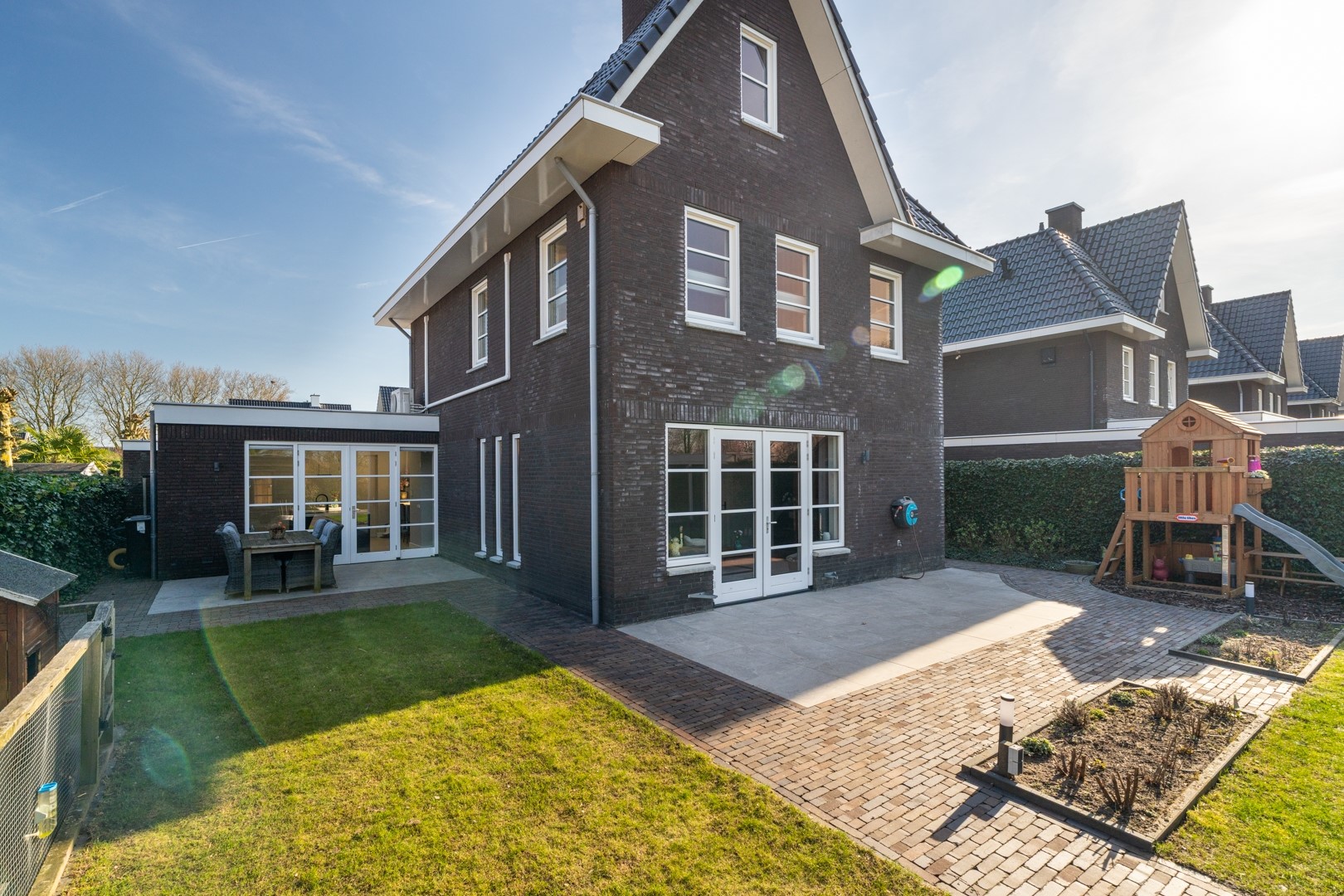 Aan de rand van het gezellige Brabantse Rijswijk staat deze stijlvolle vrijstaande villa uit 2017. De woning is gelegen aan het eind van een rustige straat en biedt aan de achterzijde een mooi uitzicht over het aangrenzende groen. Met een energielabel A (waarschijnlijk nu A+), volledige isolatie, HR++ beglazing én maar liefst zestien zonnepanelen is dit een duurzame en toekomstbestendige woning. Uiteraard is elke verdieping voorzien van vloerverwarming. De combinatie van ruimte, luxe afwerking en een prachtige ligging maakt dit een ideale gezinswoning.