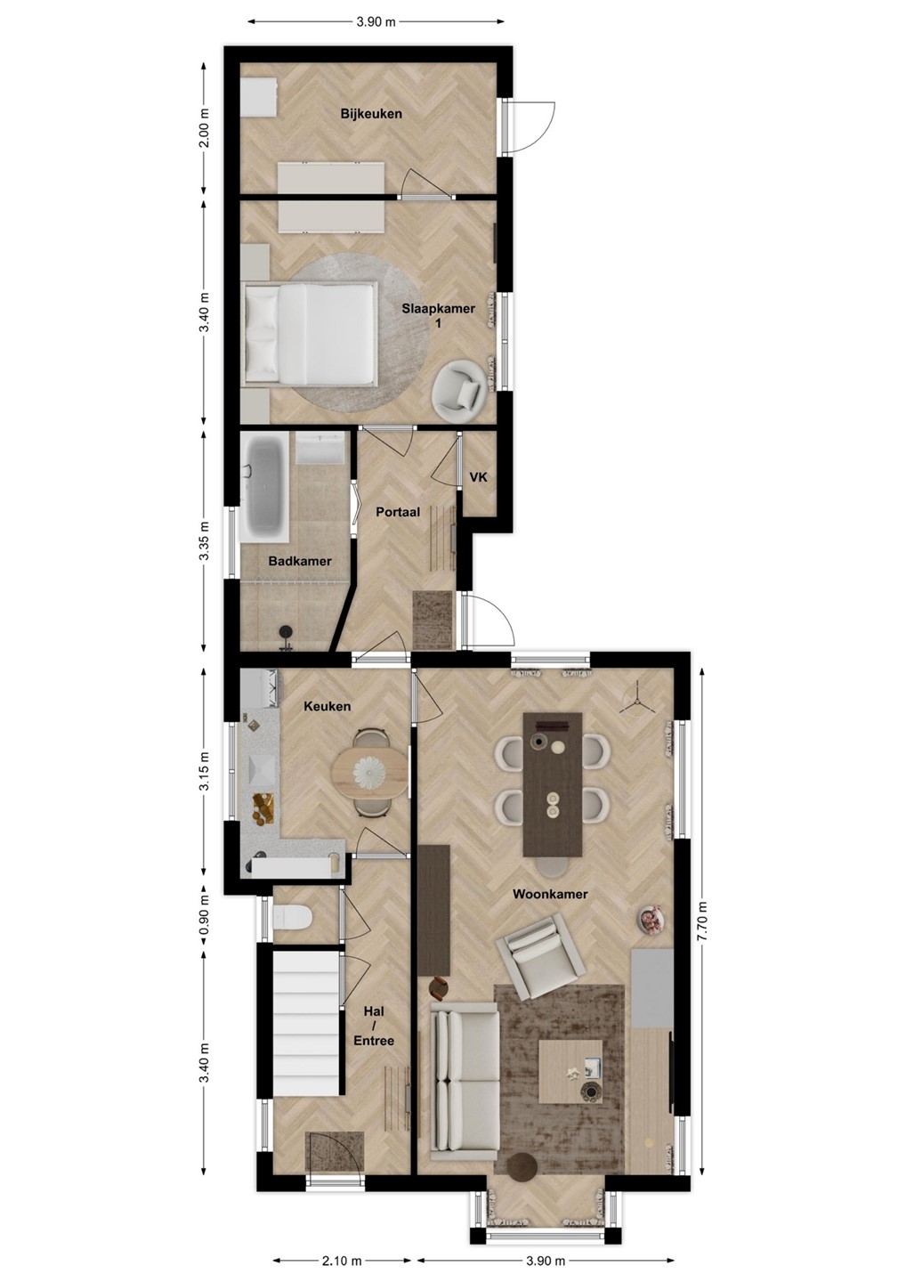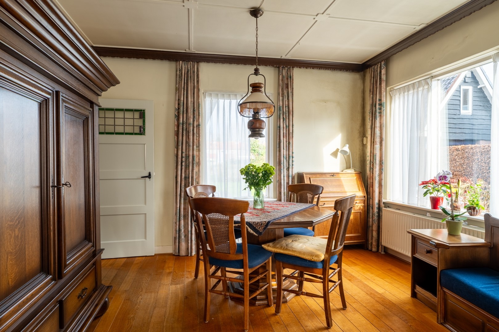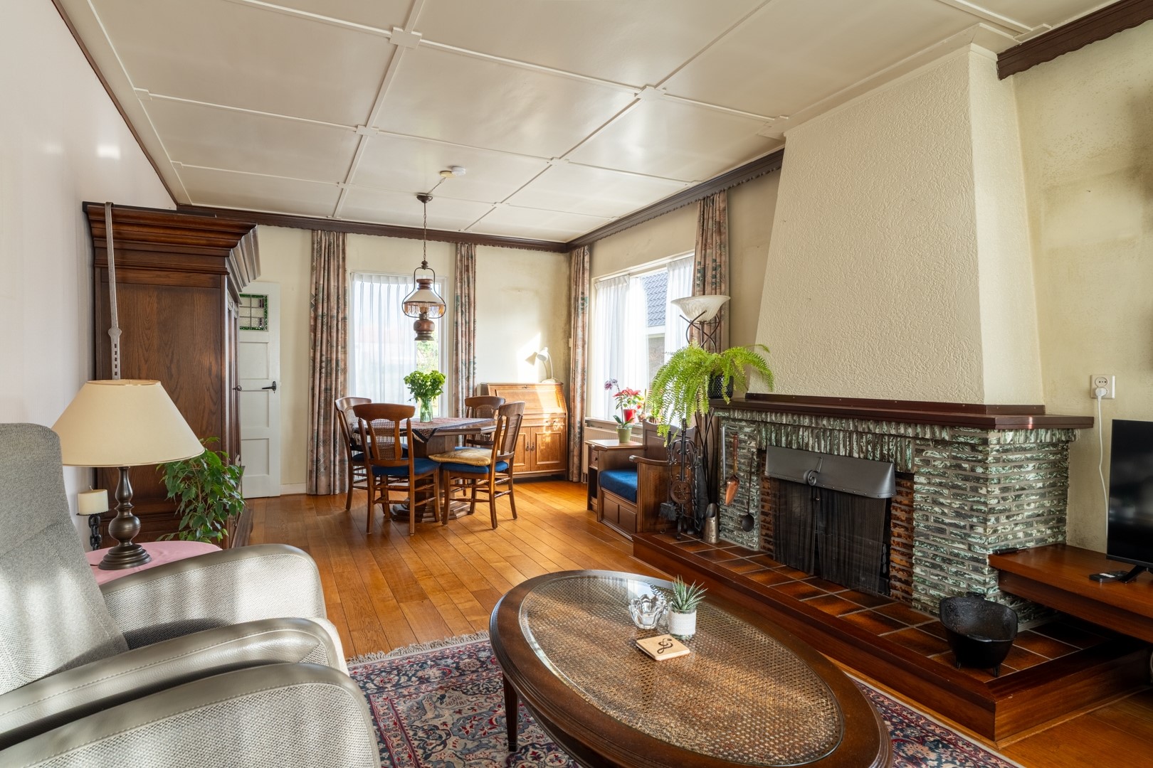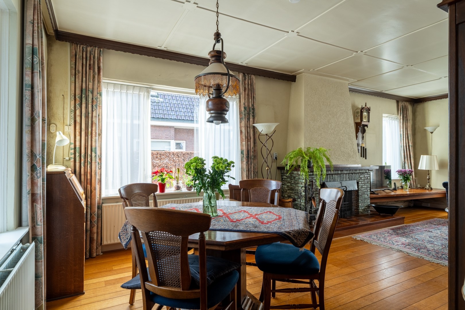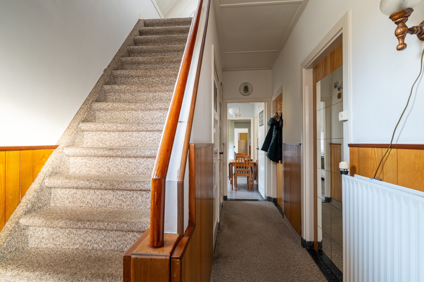 De woning bestaat uit twee delen: het oorspronkelijke woonhuis uit 1939 en een uit- en opbouw aan de achterzijde die in 2004 is gerealiseerd. Je komt binnen via de voordeur aan de voorzijde in de hal, met toegang tot het toilet, de kelder, de keuken en de vaste trap naar boven. De woonkamer is knus en gezellig, met grote raampartijen die zorgen voor veel licht. De open haard maakt het plaatje compleet: ideaal voor lange winteravonden. In de uitbouw vind je een achterportaal en een ruime bijkeuken — praktisch, functioneel en altijd handig. De keuken is klein maar fijn. Gezellig, overzichtelijk en netjes, al is vervanging bij renovatie wel logisch. Tip van de week: haal de muur tussen keuken en woonkamer eruit en je hebt in één klap een heerlijke leefruimte.