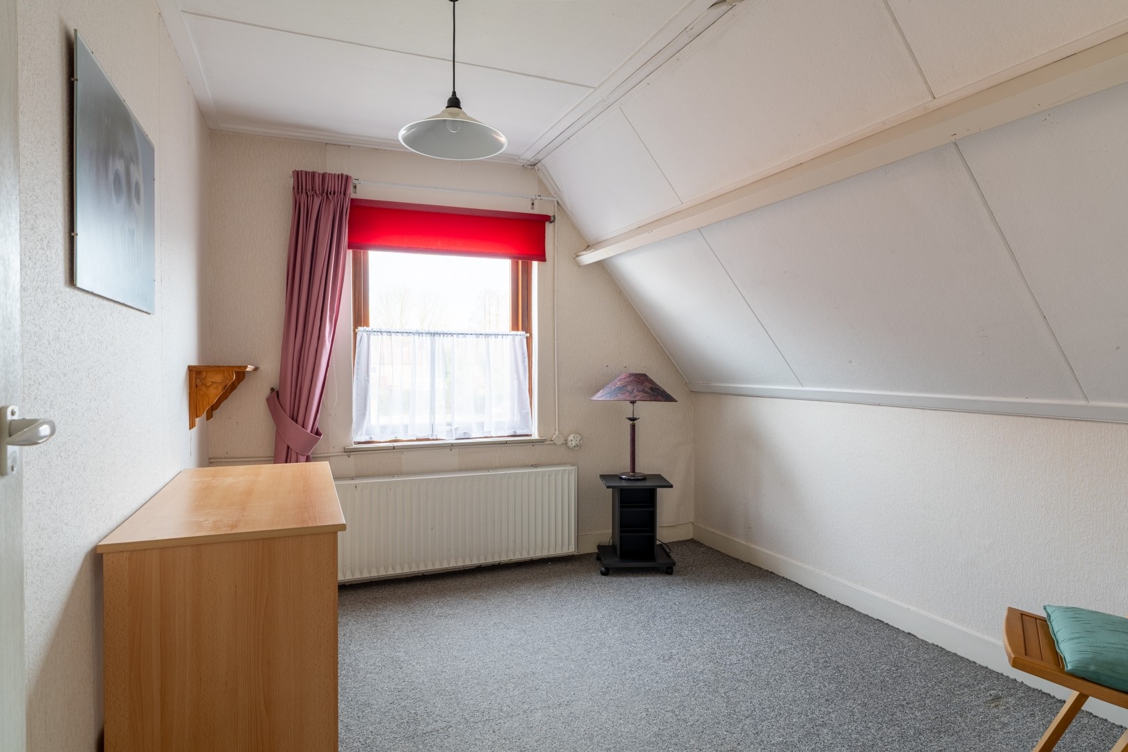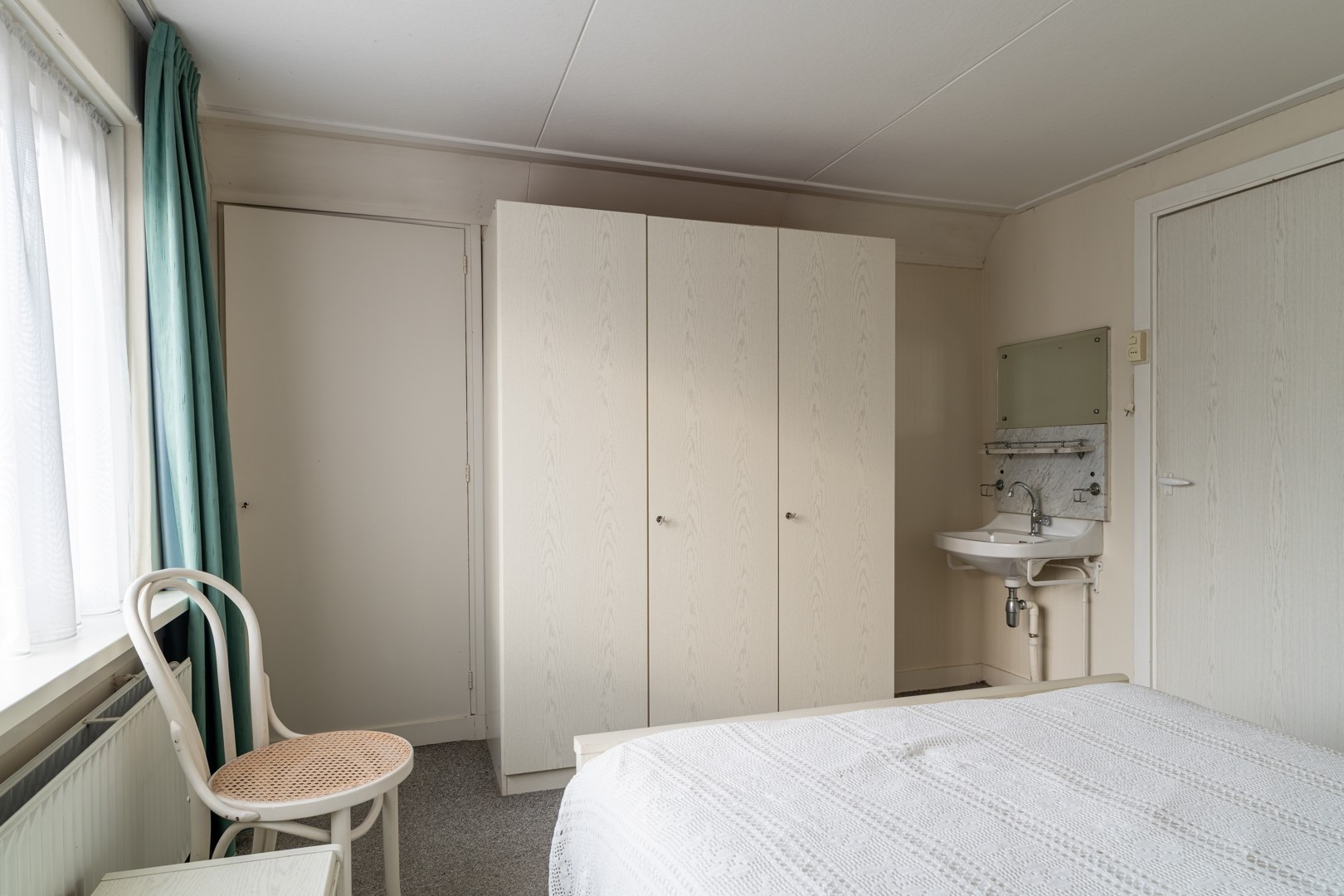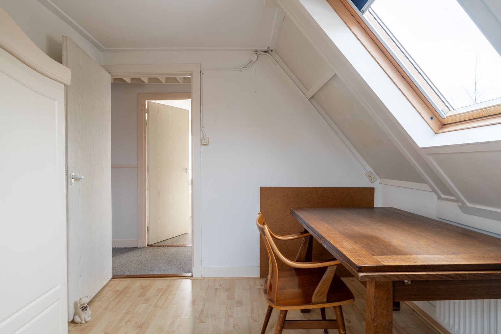 Op de begane grond bevindt zich een grote slaapkamer en een wat gedateerde maar ruime badkamer. Gelijkvloers wonen? Dat kan hier dus gewoon. Ook is er op de uitbouw een zolder gemaakt, die ook te gebruiken is als extra slaapkamer. Boven vind je nog eens drie royale slaapkamers met volop ruimte en bergruimte. Met in totaal vier slaapkamers is dit ook een uitstekende gezinswoning. De badkamer beneden is ruim, functioneel en… opvallend groen. Voorzien van ligbad, douche en wastafel. Wie weet wordt het vanzelf weer hip — anders is vernieuwen natuurlijk ook een optie.