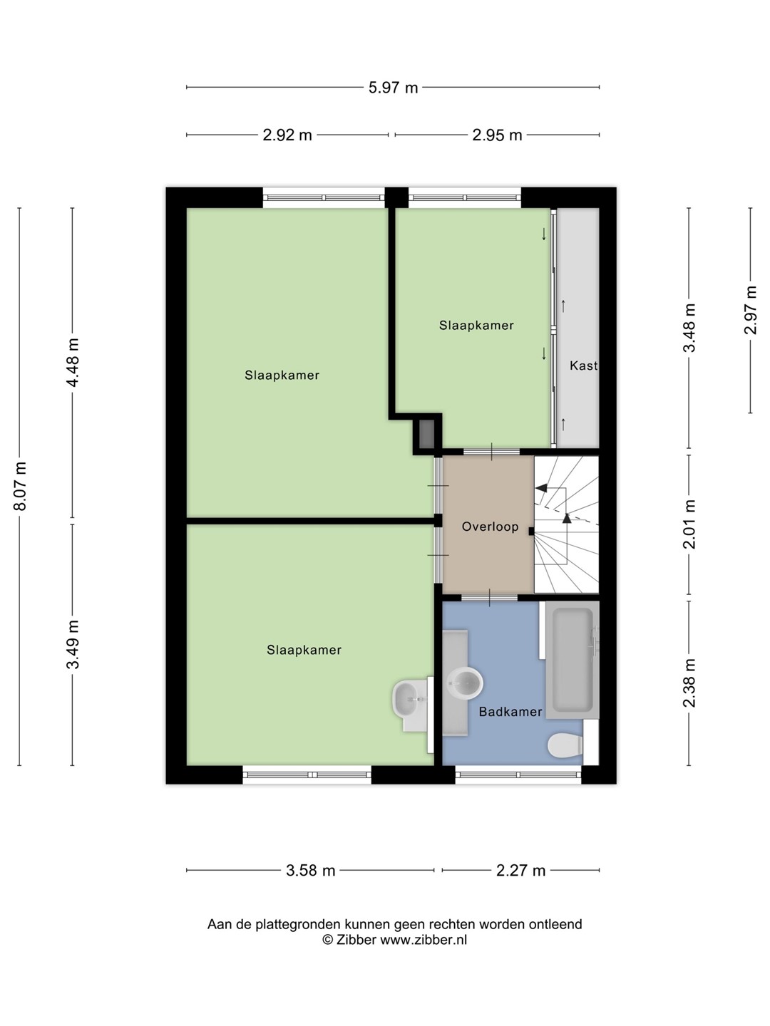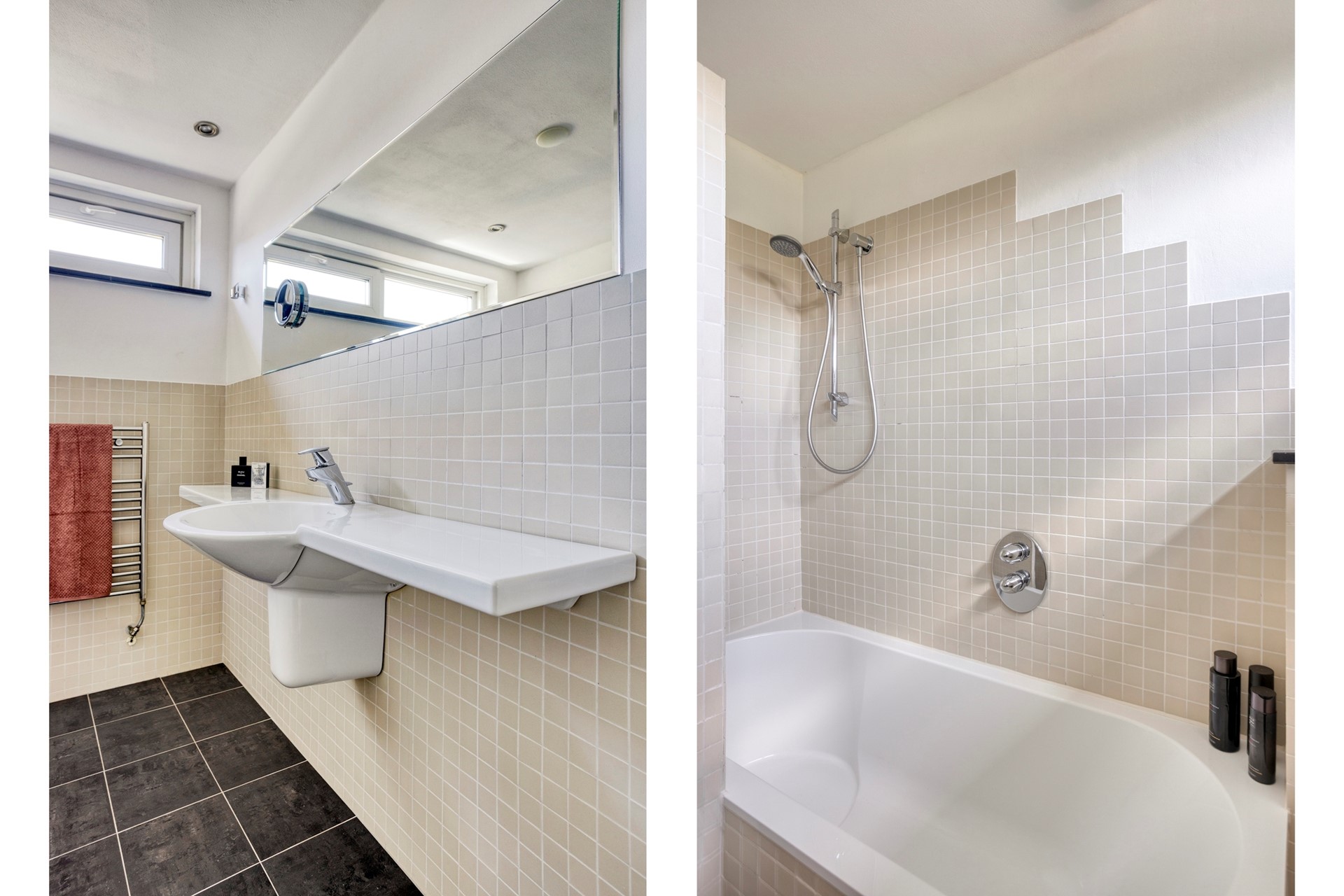 Op de eerste verdieping vind je drie slaapkamers met ieder hun eigen pluspunten. De ene heeft een wastafel, de andere airco (lekker koel slapen in de zomer!) en de derde een praktische inbouwkast. De badkamer is netjes en compleet: vloerverwarming, ligbad met douchecombinatie, zwevend toilet, wastafelmeubel en designradiator – dus ook je handdoeken blijven stijlvol warm.