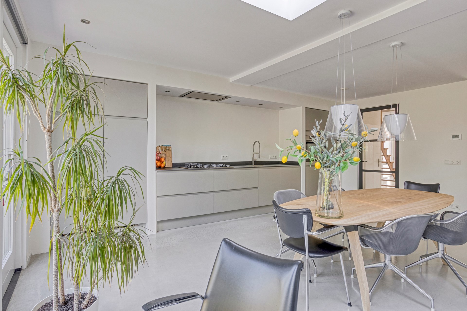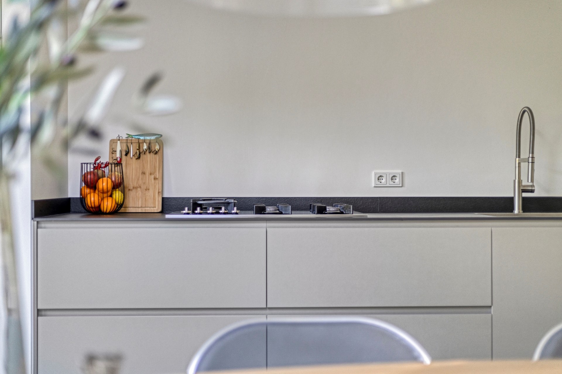De moderne keuken (2018) is een droom voor elke hobby chef. Uitgerust met een 5-pits gaskookplaat, afzuigkap, oven, vaatwasser, koelkast én vriezer. Alles geïntegreerd in een strak keukenblok dat even praktisch als stijlvol is. Dankzij de open indeling ben je tijdens het koken nooit ver weg van je gasten – of je kinderen die al voor de vierde keer vragen wat er vanavond op tafel staat. In het plafond van de keuken is inbouwverlichting aangebracht. Het geheel is strak en tijdloos afgewerkt. Dit verveeld nooit.