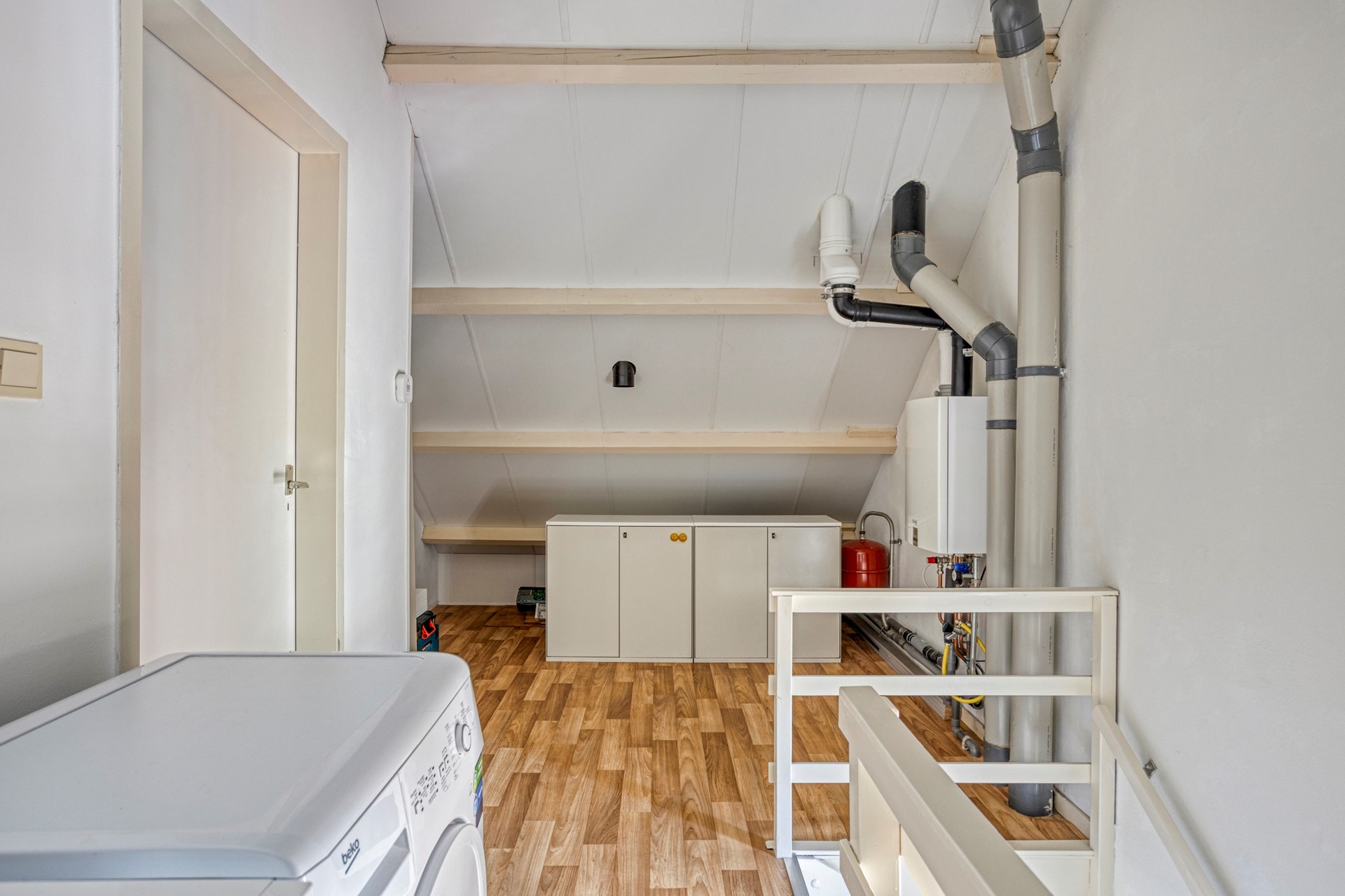 De zolder verrast met een vierde slaapkamer, een dakraam en volop bergruimte achter het knieschot en in de bergkast. Op de overloop is plek voor de cv-ketel en je wasmachine. Kortom, hier kun je een thuiskantoor creëren of je tiener eindelijk dat ‘eigen plekje’ geven.