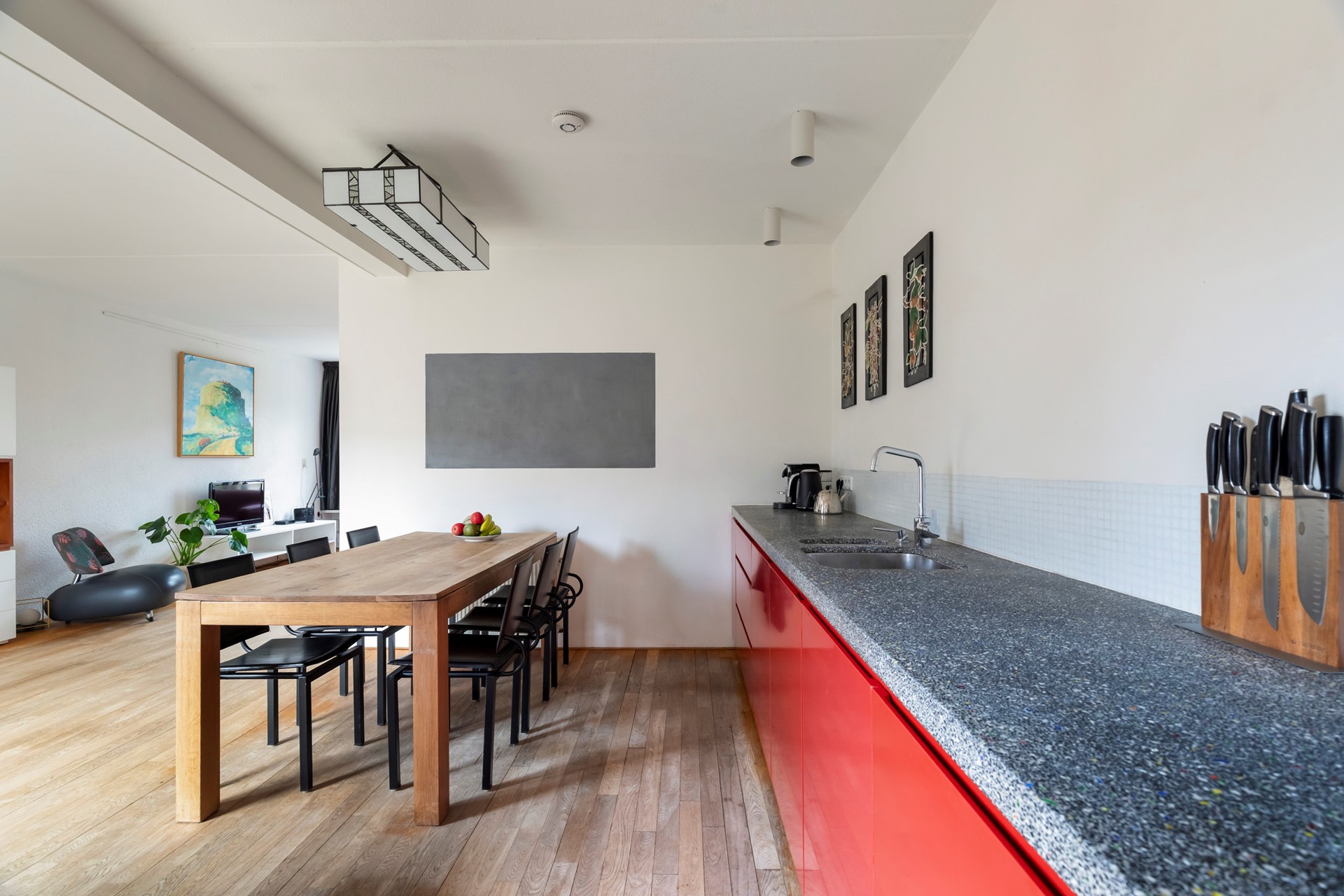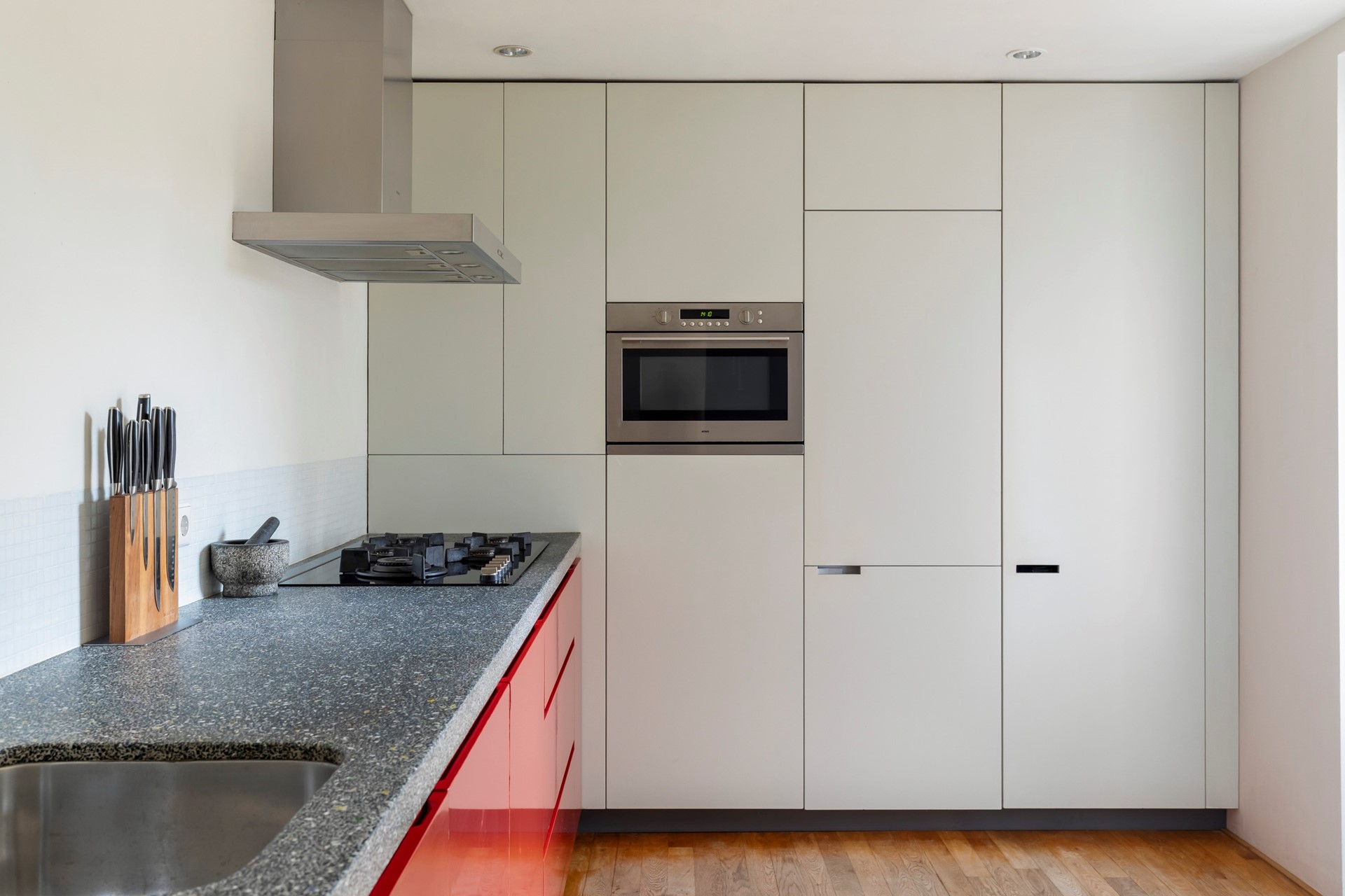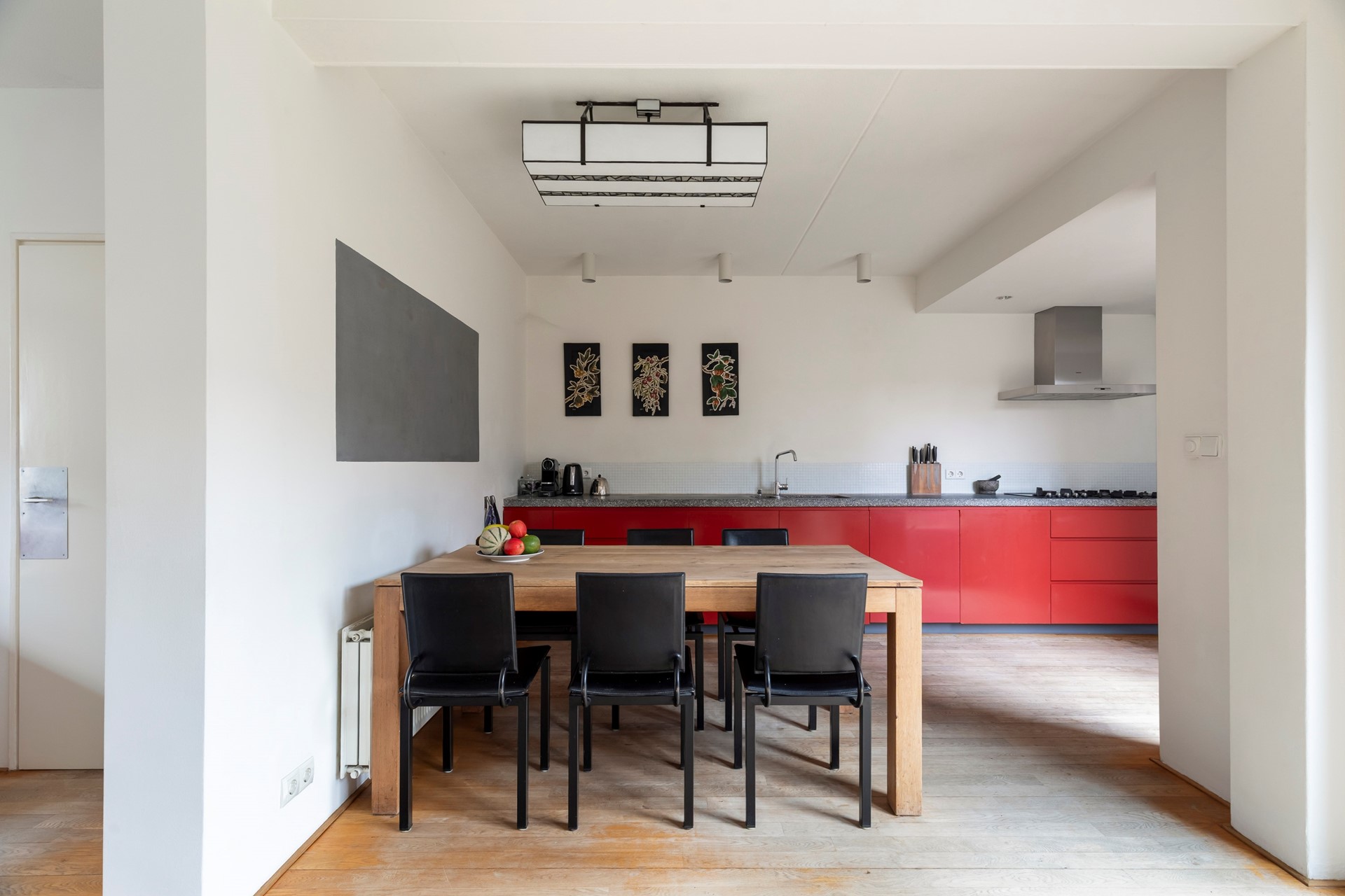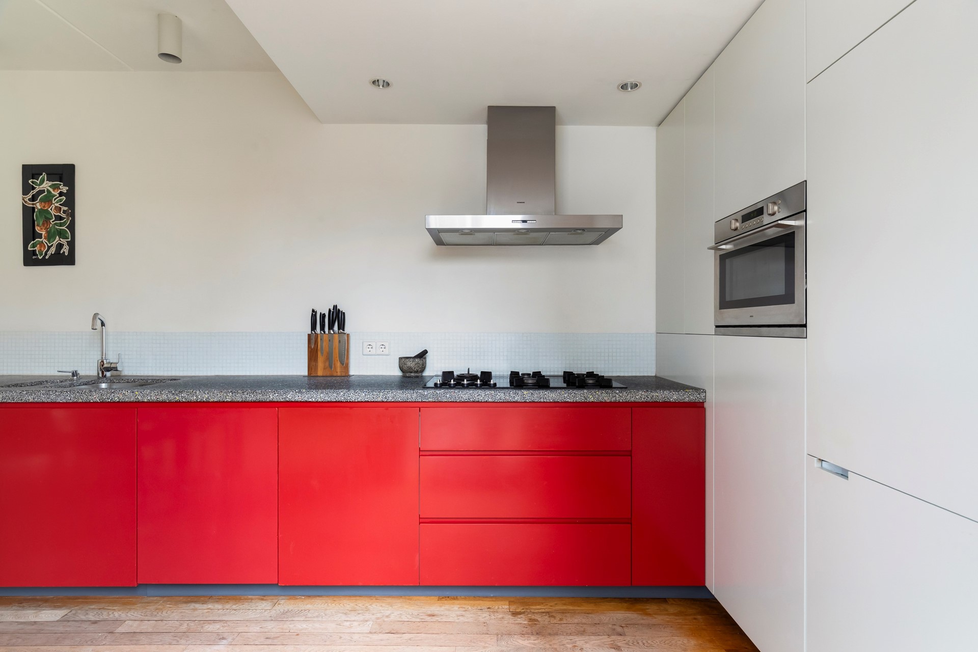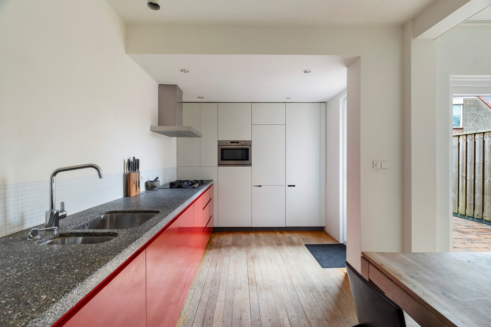 Via de entree kom je in de hal met toegang tot het toilet, de woonkamer en de trap naar boven. De woonkamer is heerlijk licht dankzij de grote ramen en voelt meteen ruim aan. De openslaande tuindeuren zorgen voor een fijne verbinding met buiten — op zonnige dagen zet je ze open en lijkt je woonkamer spontaan een maat groter. Aan de achterzijde bevindt zich de uitgebouwde woonkeuken. De keuken is een echte blikvanger, mede dankzij de opvallende kleurstelling. Niet jouw kleur? Geen probleem: een lik verf of een wrap doet wonderen (en je hoeft er geen chef voor te zijn). Praktisch is hij sowieso, met veel kastruimte en diverse inbouwapparatuur, waaronder een vaatwasser