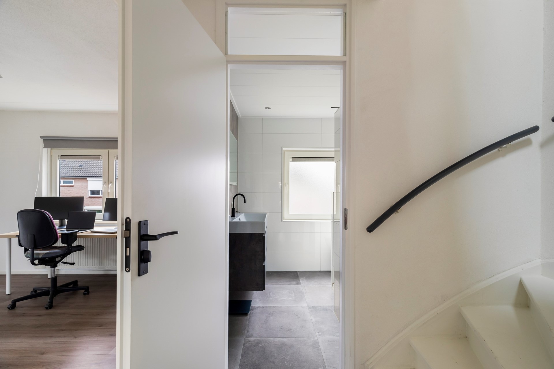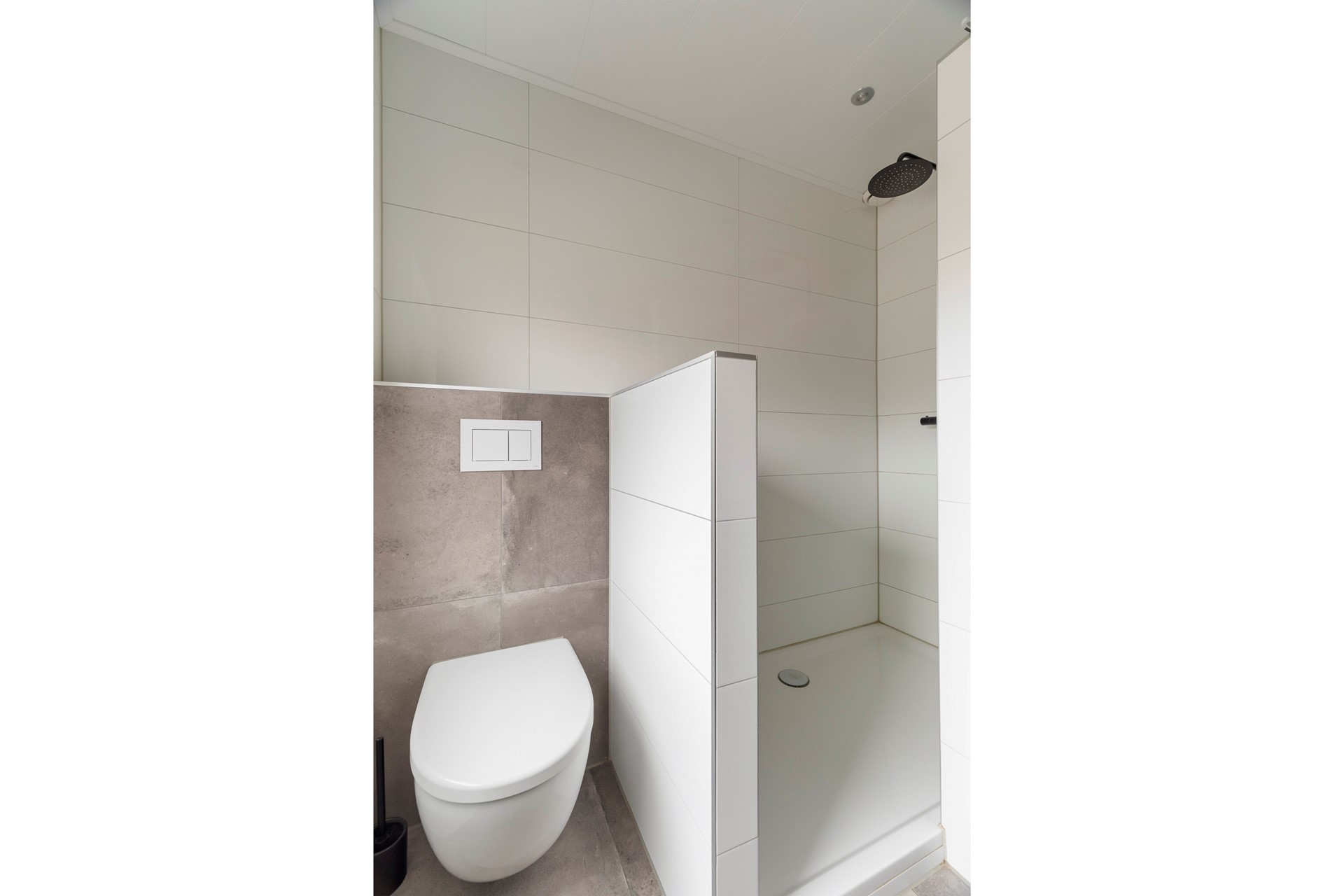 Op de eerste verdieping vind je drie ruime slaapkamers met rechte wanden, dus geen lastige hoeken maar gewoon optimaal inrichten. De recent gemoderniseerde badkamer is netjes en compleet uitgevoerd met een royale inloopdouche, wastafelmeubel en tweede toilet.