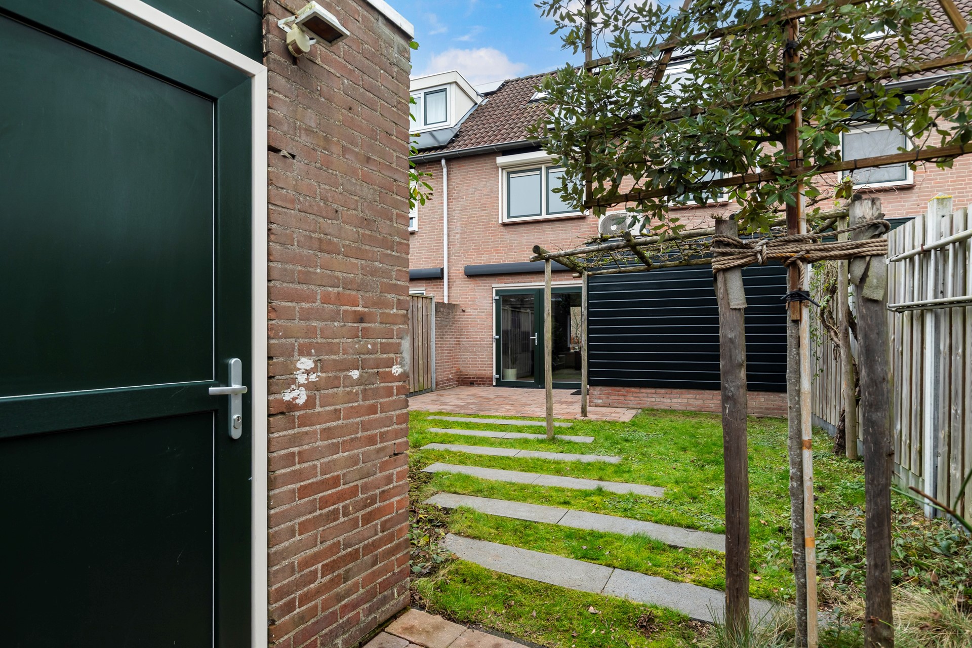 Via de tuindeuren stap je de achtertuin in, die speels is aangelegd met een combinatie van straatwerk, gazon met stapstenen en compacte borders. Het resultaat: een gezellige tuin met karakter, zonder dat je elk weekend met tuinhandschoenen hoeft te zwoegen. De ligging op het oosten zorgt voor een fijne ochtend- en middagzon. Achterin staat een praktische berging voor fietsen, gereedschap en alles wat je liever niet in huis hebt staan.