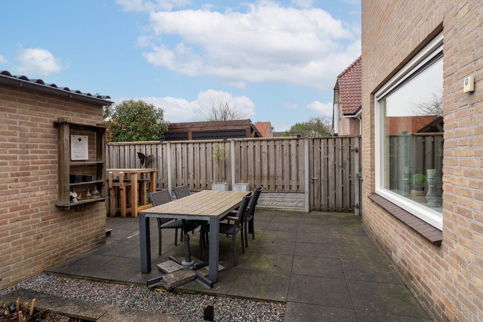 De omsloten achtertuin met eigen achterom en berging is gelegen op het noorden en is onderhoudsvriendelijk ingedeeld. Aan de voorzijde siertuin en voldoende parkeermogelijkheid op openbaar terrein.
