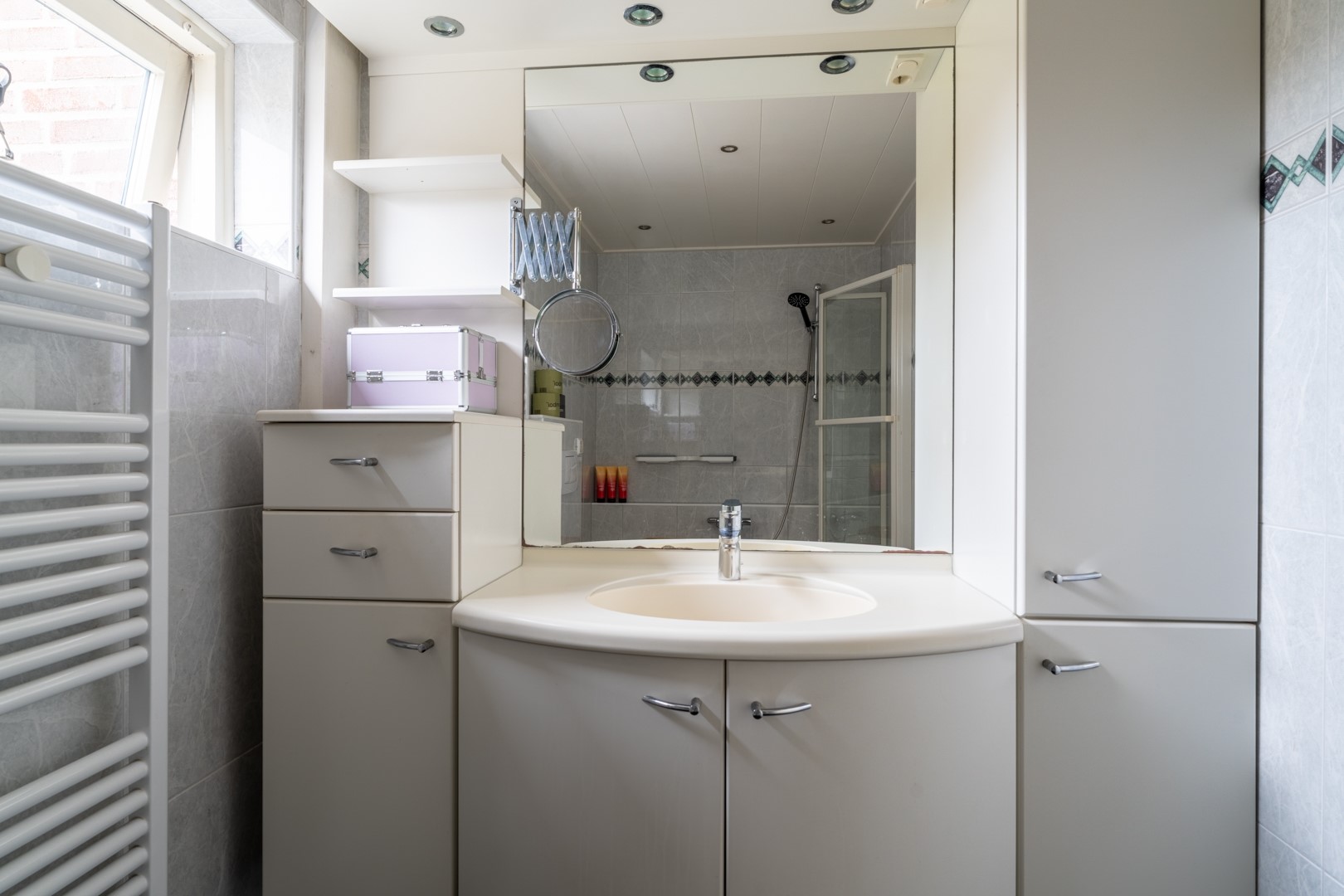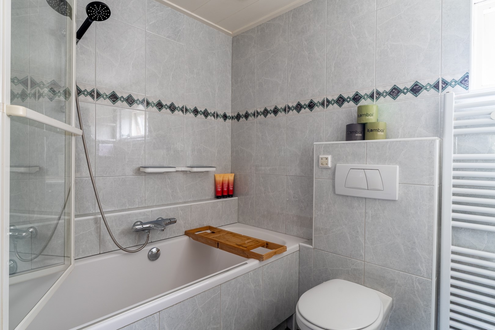 Op de eerste verdieping bevinden zich drie slaapkamers en de badkamer met ligbad, toilet, wastafelmeubel en designradiator.