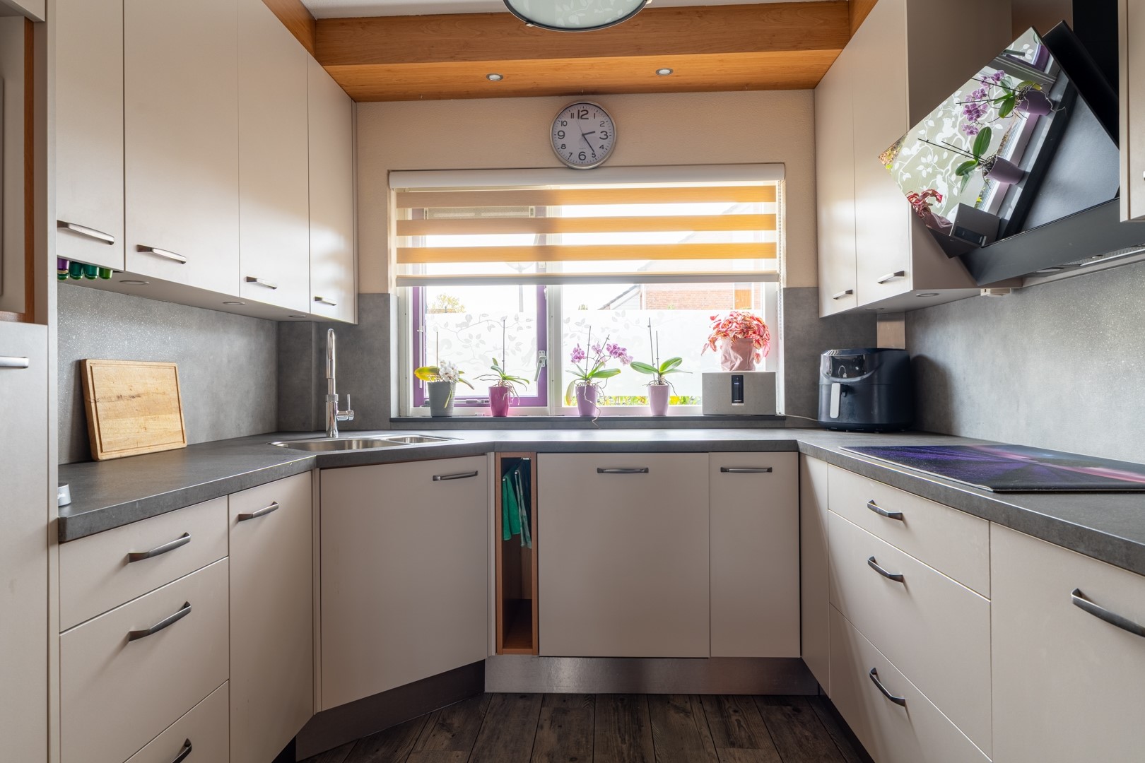Bij binnenkomst valt direct de prettige sfeer op. De hal geeft toegang tot het moderne toilet, de meterkast en de woonkamer. De woonkamer heeft grote ramen aan de achterzijde, waardoor er veel daglicht binnenvalt. Aan de voorzijde bevindt zich de open keuken (gerenoveerd in 2021), uitgerust met inbouwapparatuur zoals een inductiekookplaat, quooker, magnetron, koelkast, vriezer, afzuigkap en vaatwasser. Vanuit de woonkamer is er toegang tot het tochtportaal en de tuin.