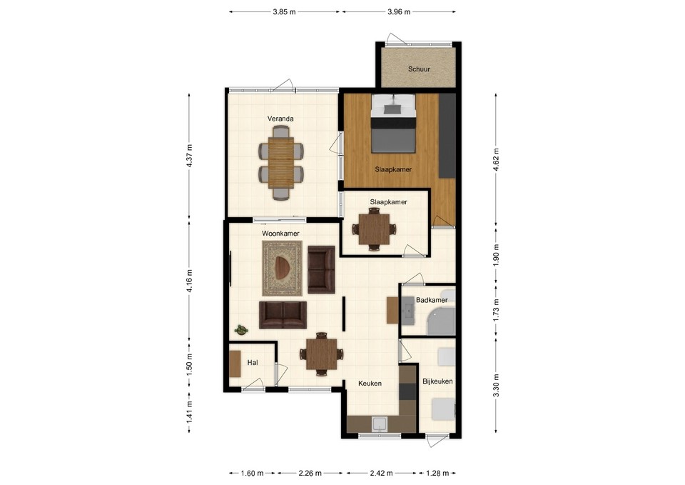 - Praktische en gezellige veranda aan de achterzijde (4,37 x 3,85 meter).