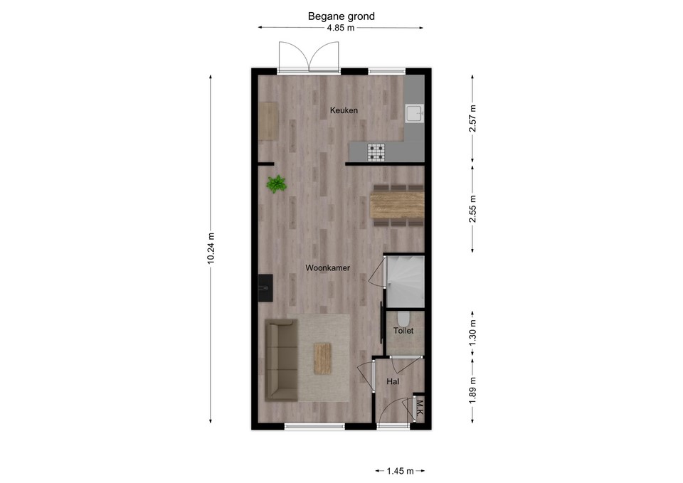 Hal met ruim toilet en aangepaste meterkast, sfeervolle woonkamer met gezellige houtkachel en middels een deur toegang naar de trapopgang, aan de achterzijde de uitgebouwde keuken hoekopstelling en de volgende inbouwapparatuur: kookplaat met afzuigkap, combimagnetron, vaatwasser en koelkast middels openslaande tuindeuren toegang naar het terras en achtertuin.