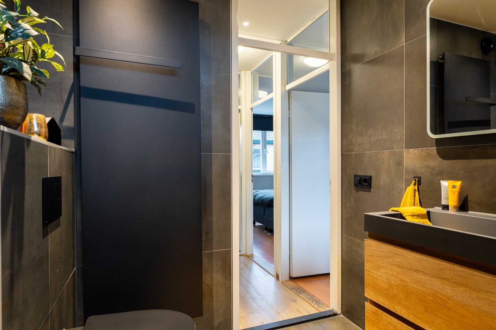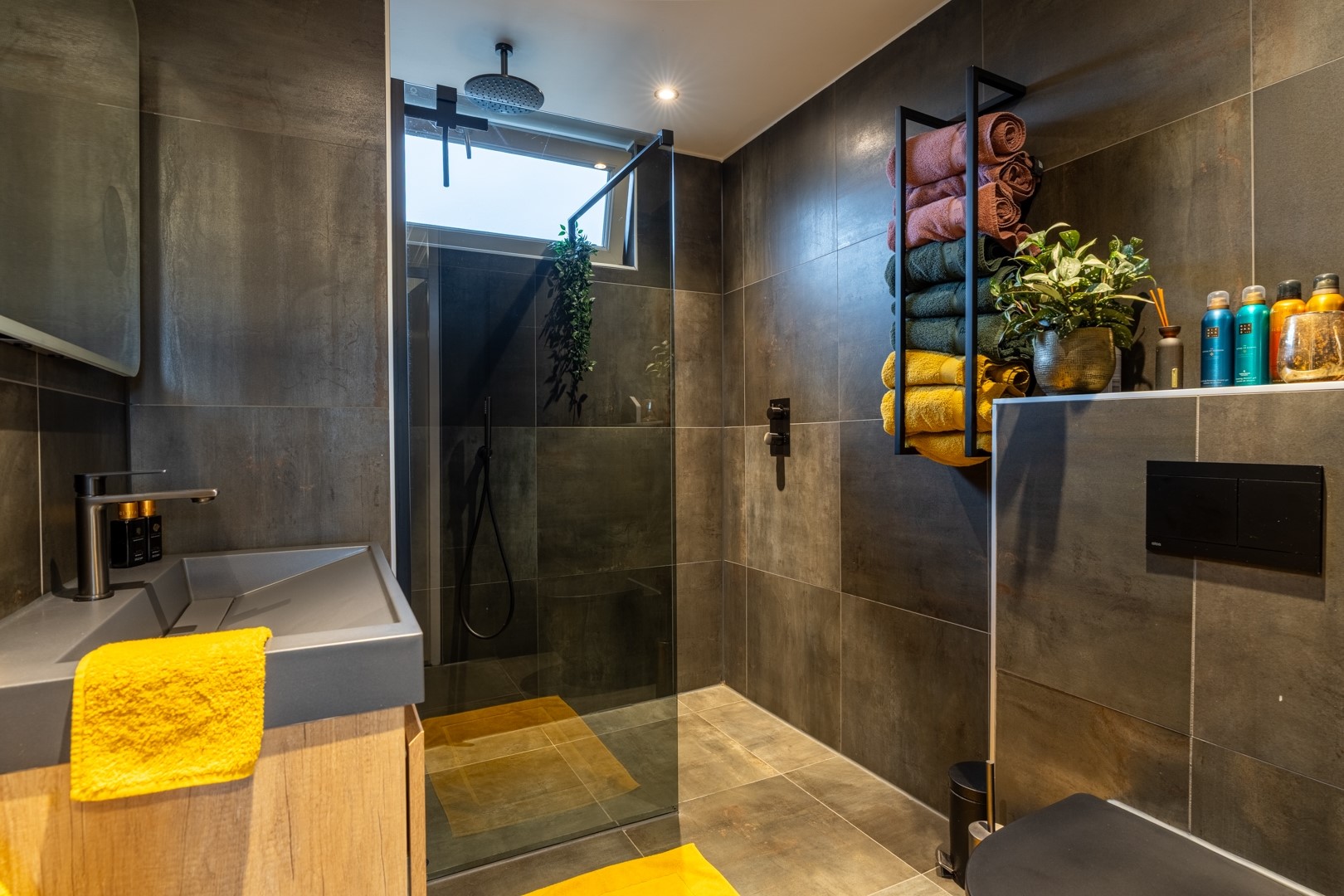 Overloop, 3 ruime slaapkamers en zeer luxe badkamer ingedeeld met ruime inloopdouche, toilet, wastafelmeubel en designradiator. De badkamer beschikt over zowel mechanische als natuurlijke ventilatie.