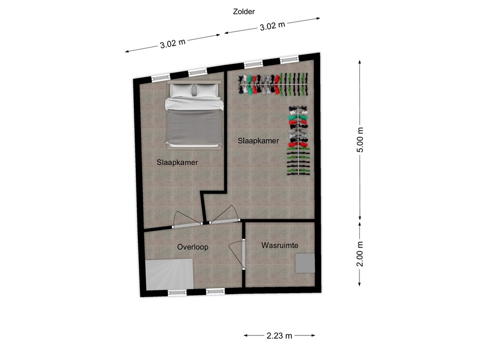 Op de tweede verdieping bevinden zich nog twee royale slaapkamers en een overloop met wasruimte en aansluitingen voor wasapparatuur.
