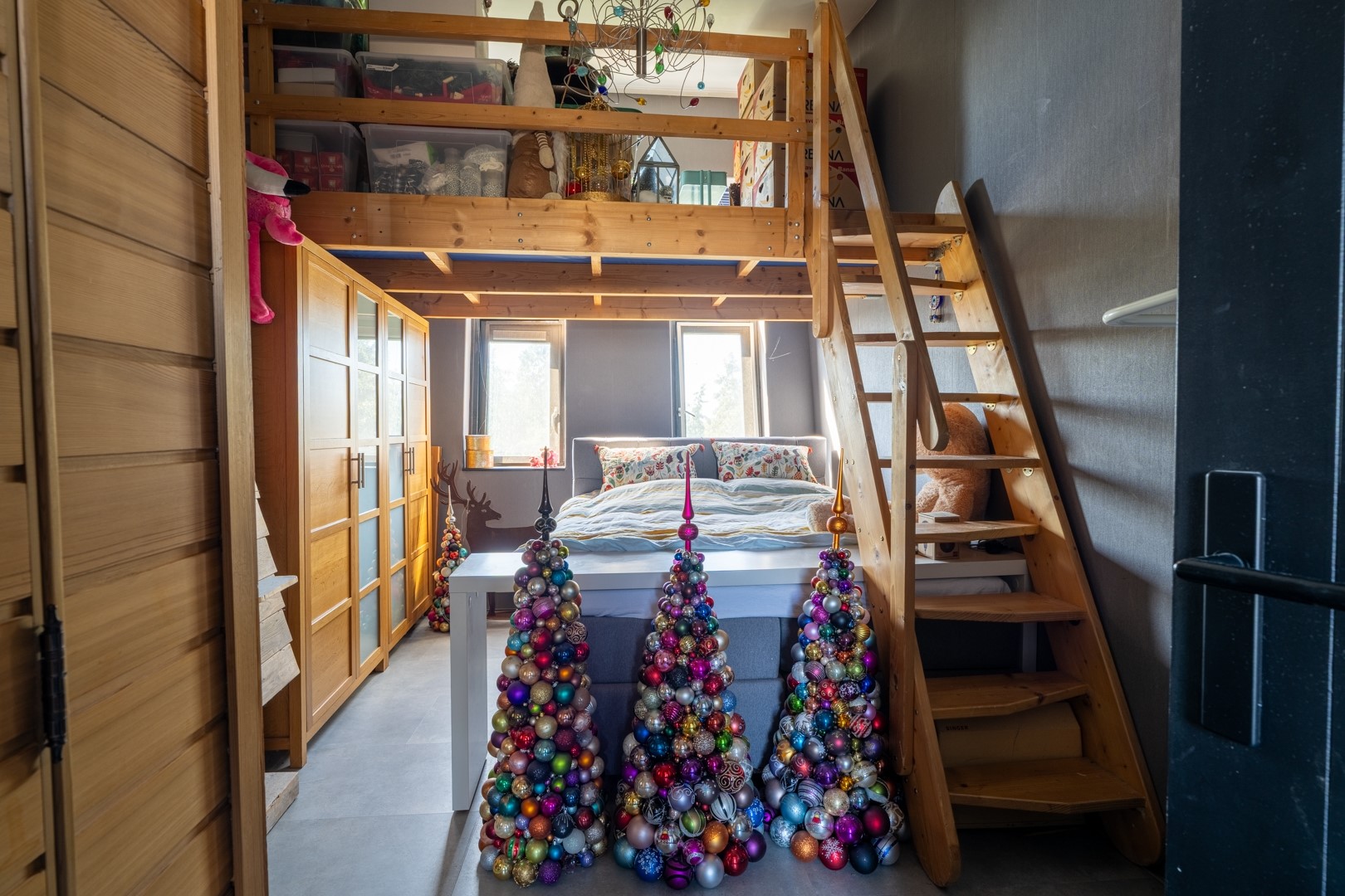 De dichtgemaakte vide zorgt voor extra woonruimte en een optimaal gebruik van het volume van de woning. De lichte, royale woonkamer met gezellige houtkachel vormt het hart van deze verdieping. Dankzij de verhoogde ligging geniet u hier van een prachtig panoramisch uitzicht over de Dongevallei. Tevens bevindt zich op deze verdieping een ruime slaapkamer met vrijstaand bad. De moderne, keurig onderhouden badkamer beschikt over een inloopdouche, dubbele wastafel, designradiator en er is een separaat toilet aanwezig.