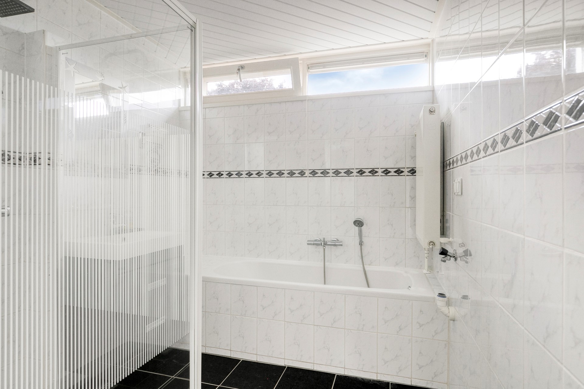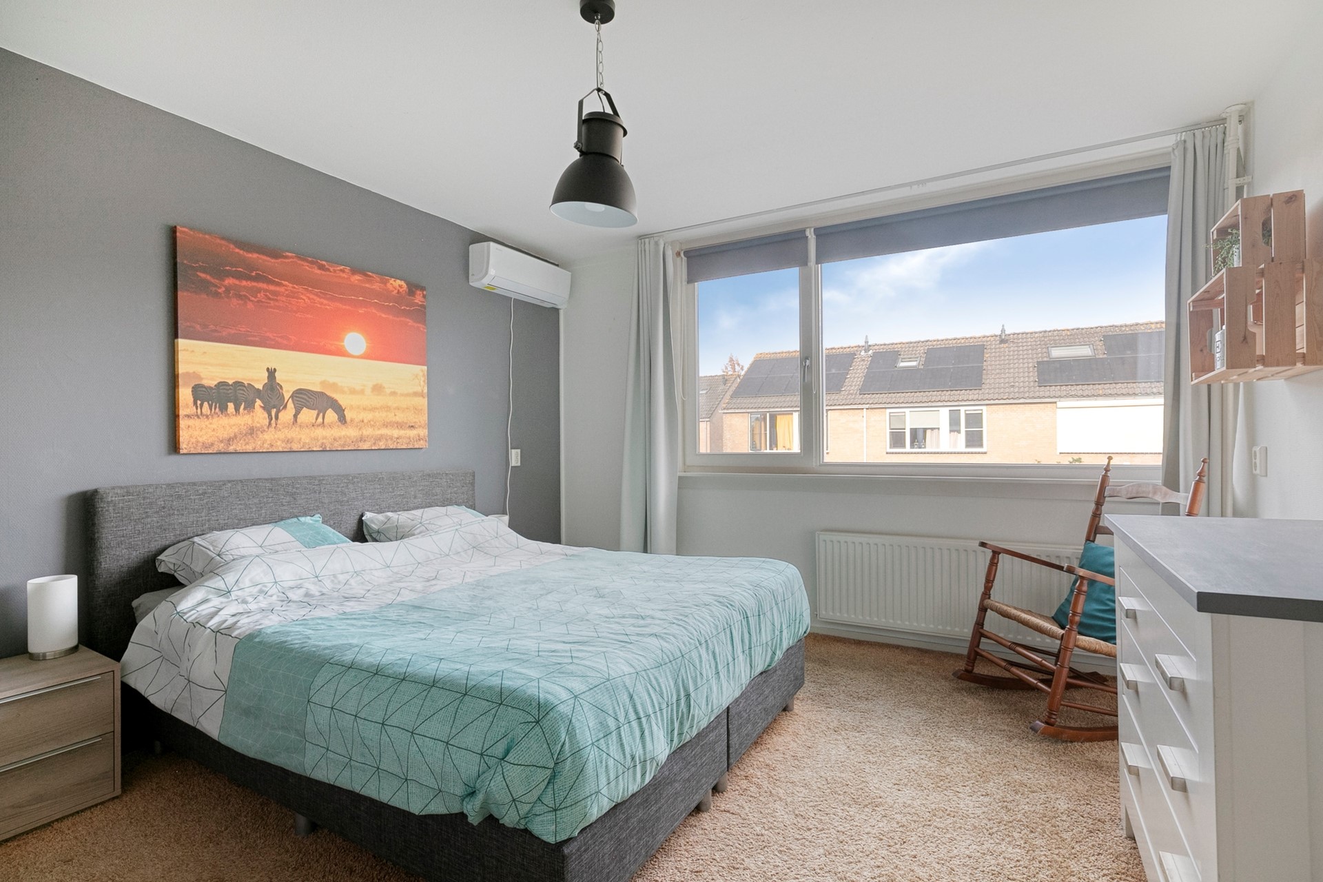 Op de eerste verdieping vind je drie ruime slaapkamers, waarvan één met airco – lekker koel in de zomer! De badkamer is verrassend ruim en heeft een ligbad, douche en een wastafelmeubel. Op zolder wacht nog een vierde slaapkamer, ideaal als logeerkamer, werkplek of chillruimte. Met het dakraam komt er lekker veel licht binnen, en achter het knieschot heb je extra opbergruimte. De overloop biedt plaats aan de wasmachine, cv-ketel (Vaillant, 2023) én nog meer opslag.