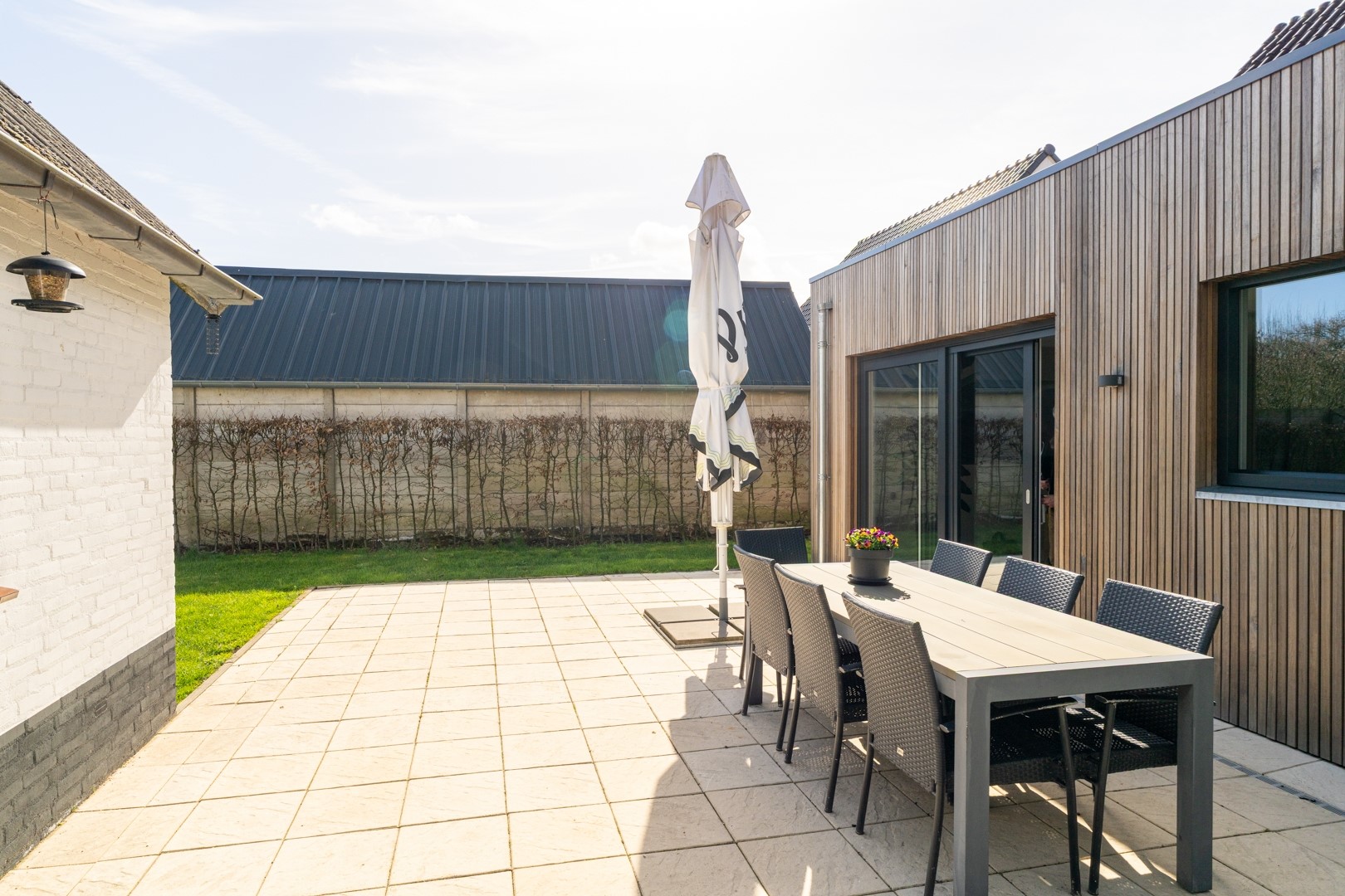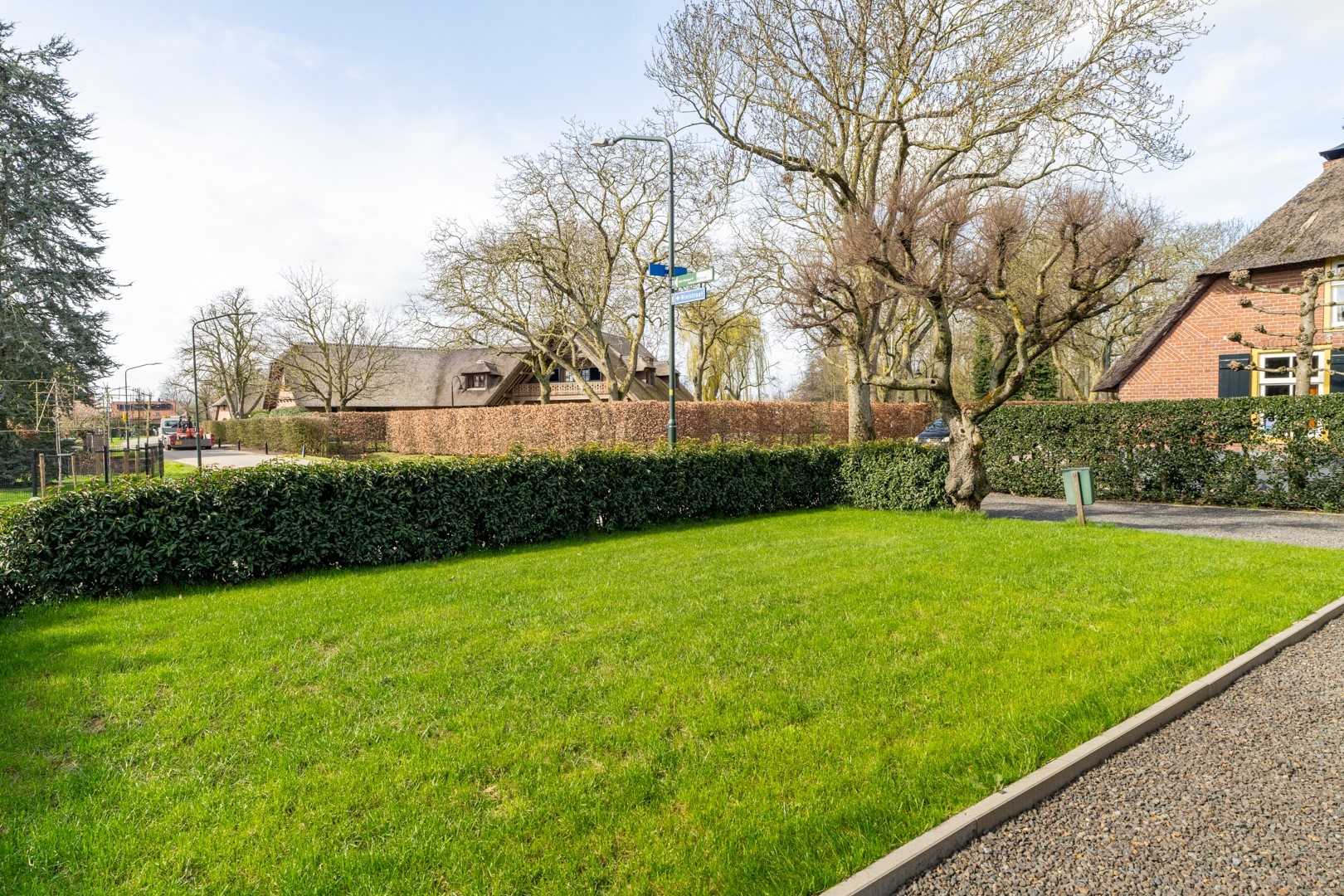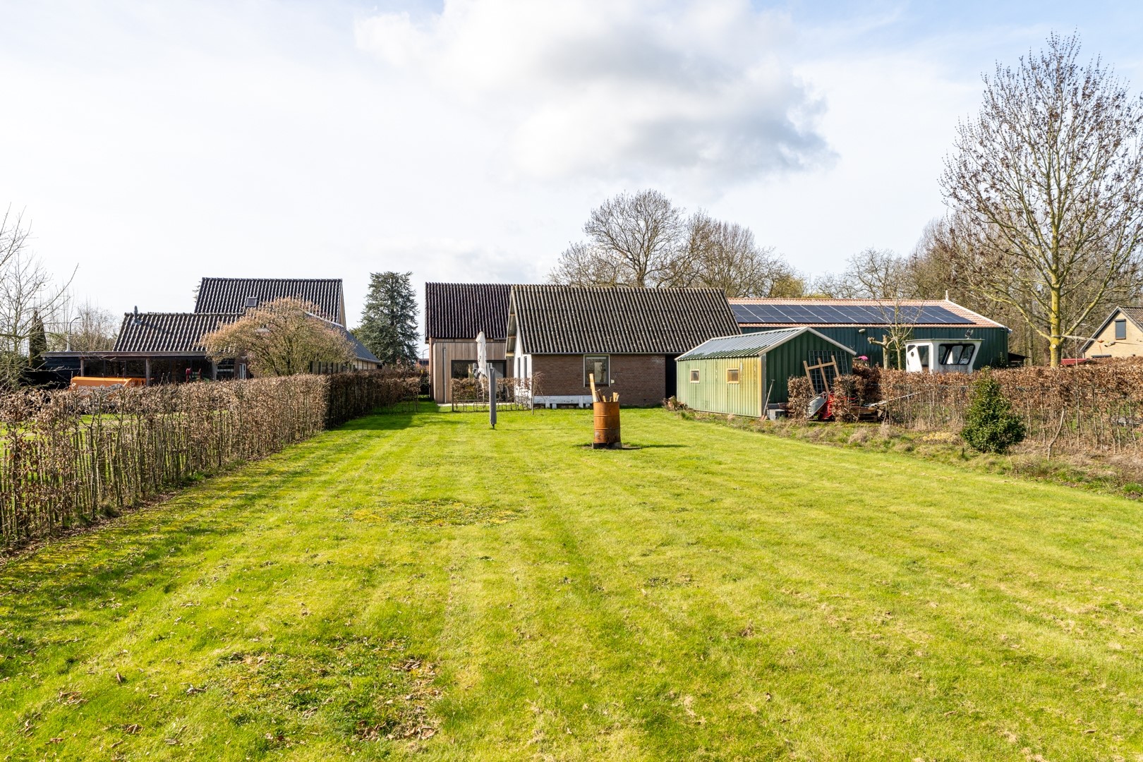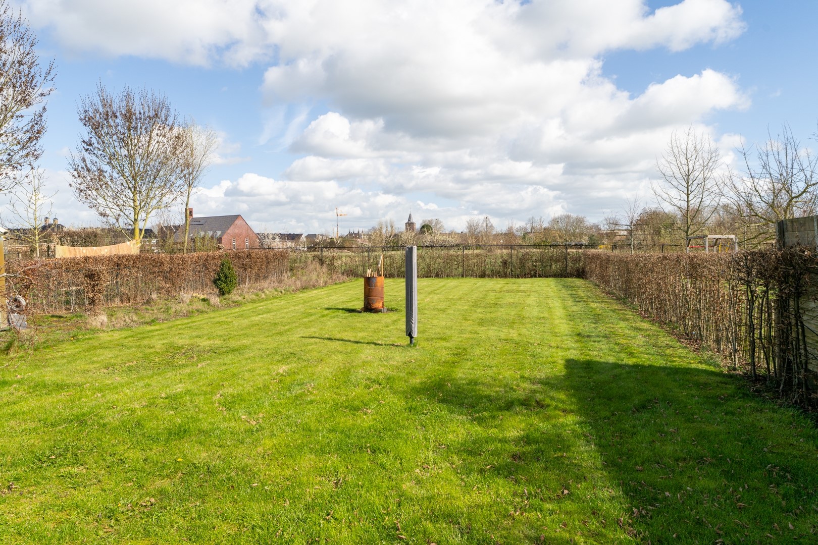 Het zonneterras tussen het woonhuis en het gastenverblijf is een heerlijke, beschutte plek om te genieten van de zon. De achtertuin is ruim en wordt omsloten door een groene beukenhaag. De tuin is grotendeels ingericht met gazon en biedt volop mogelijkheden om naar eigen wens verder in te richten. Parkeren kan eenvoudig op eigen terrein voor de garage.