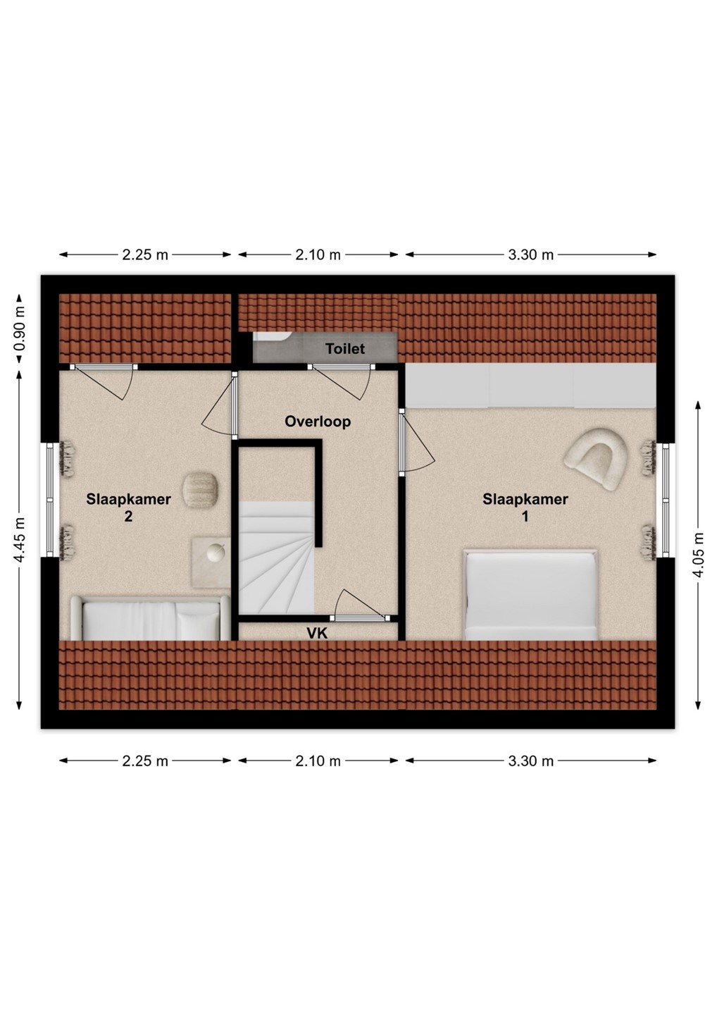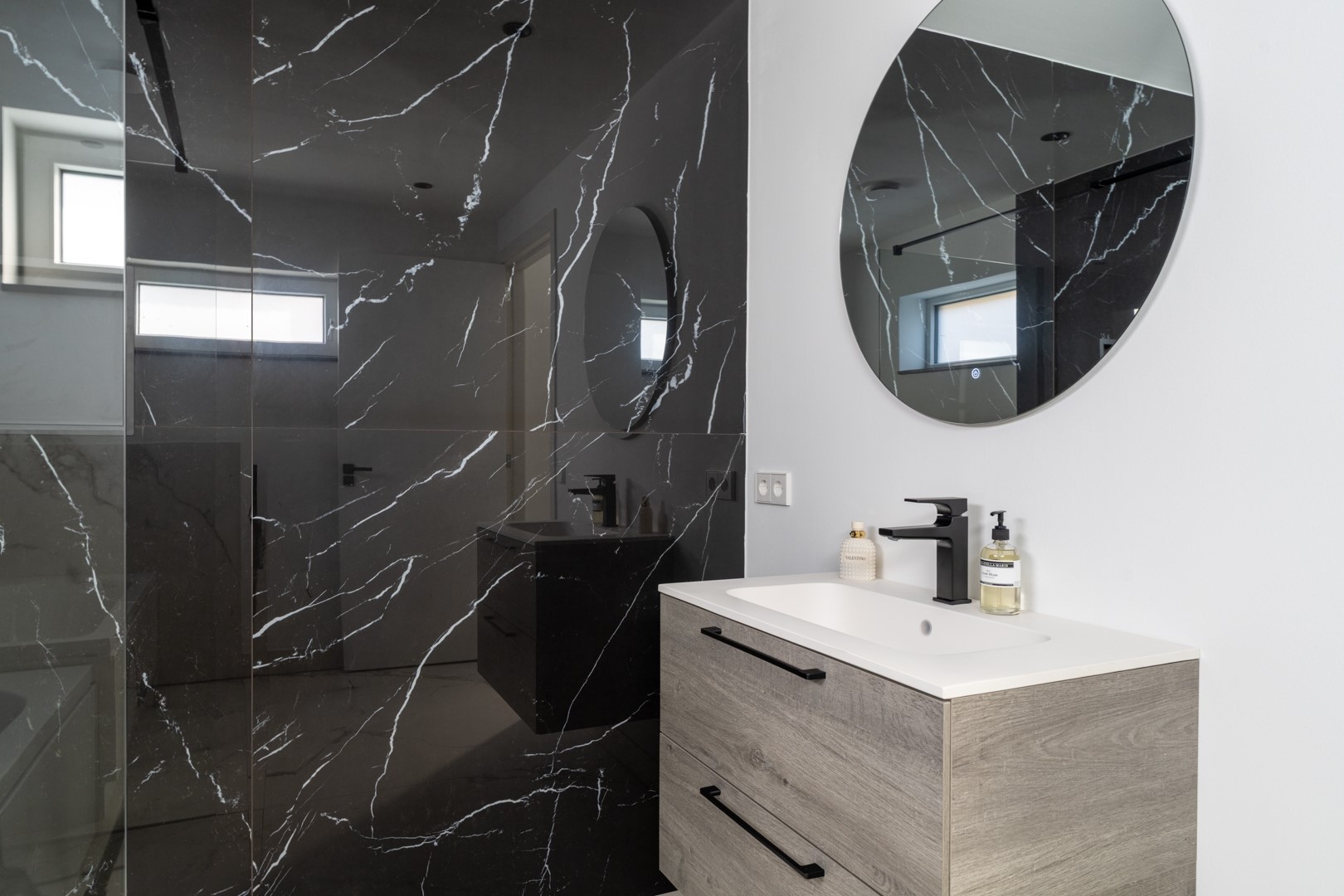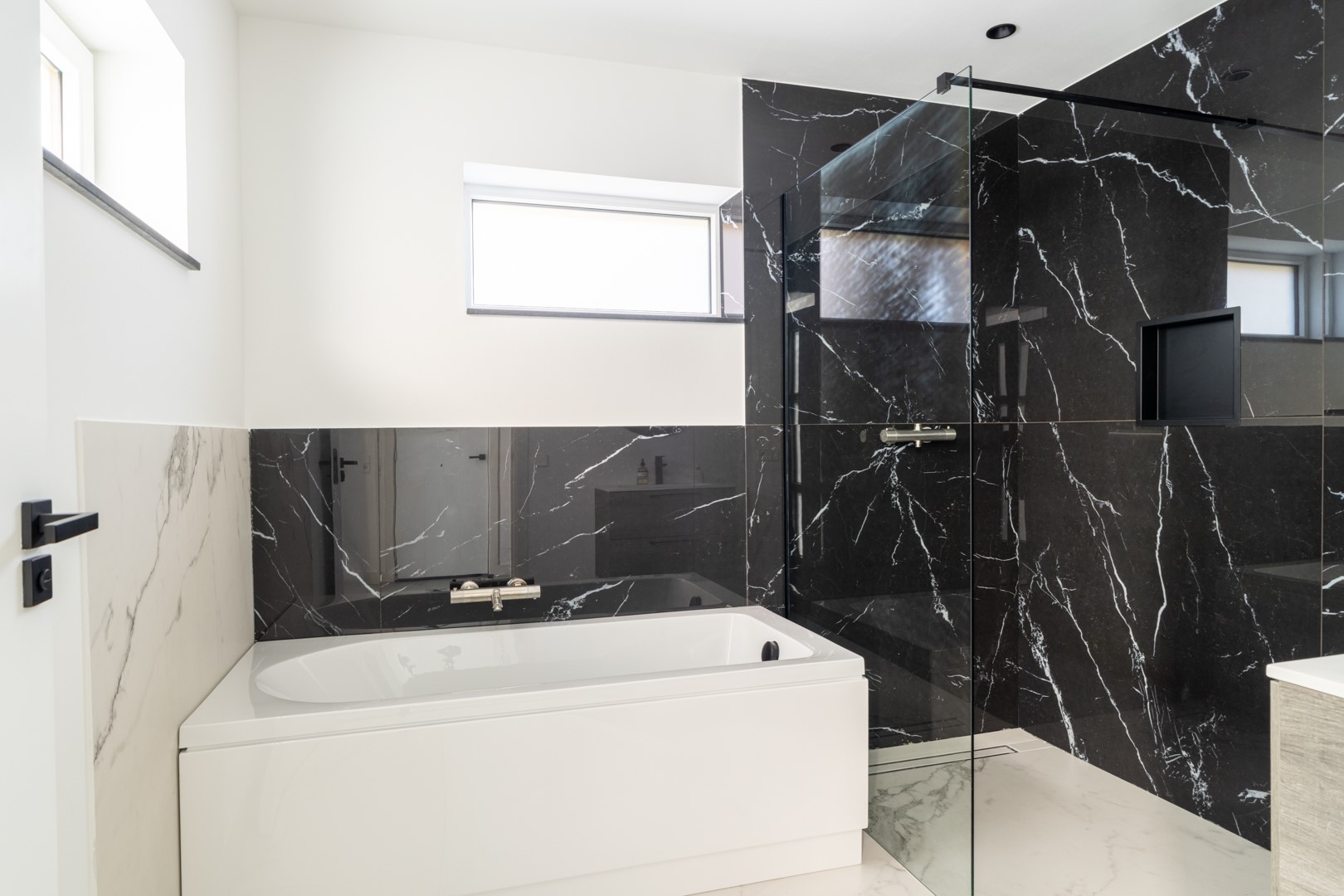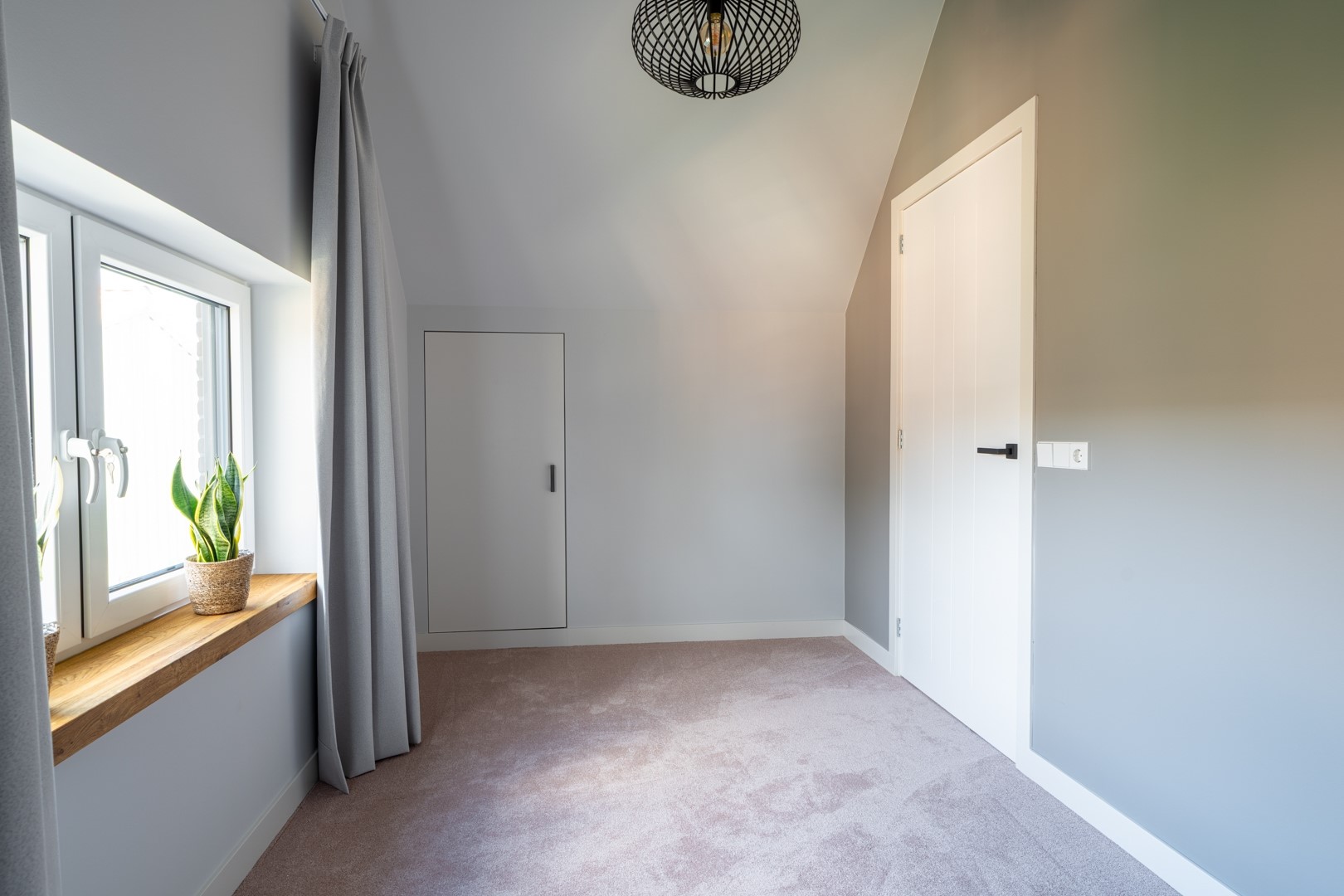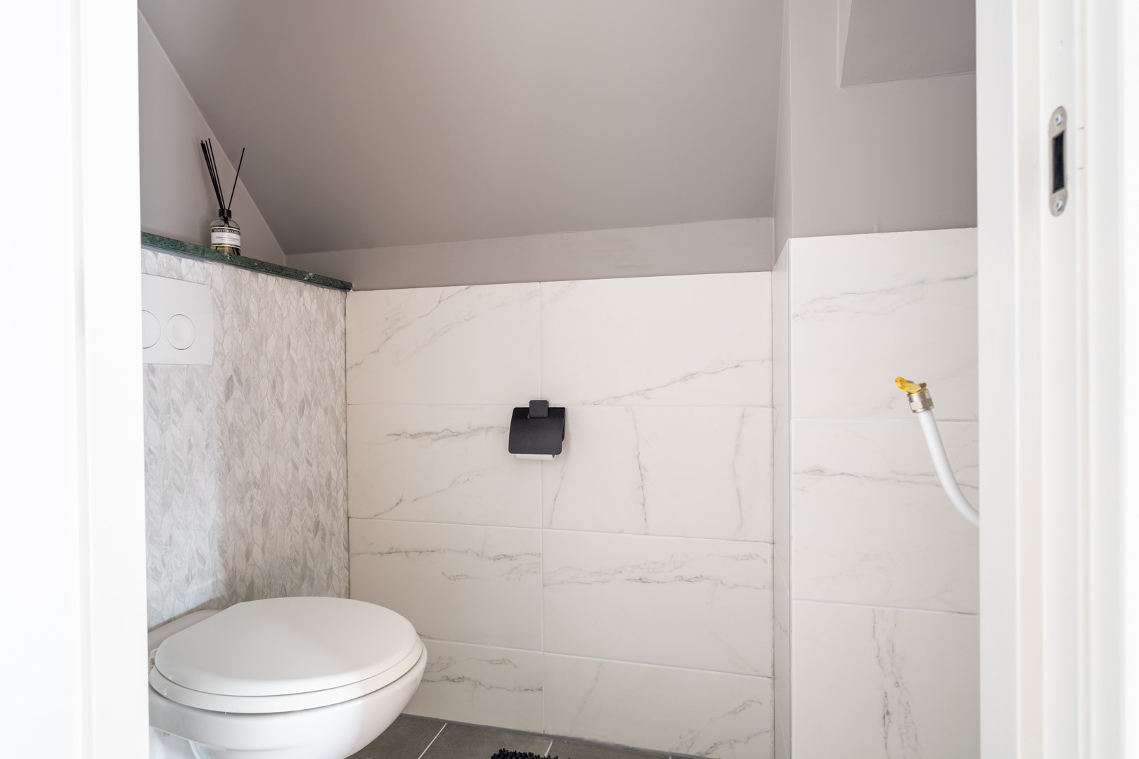 De nieuwe badkamer bevindt zich op de begane grond en is modern afgewerkt met een ligbad, een inloopdouche en een wastafelmeubel met spiegel. In het plafond zijn sfeervolle inbouwspots verwerkt. Op de verdieping vind je een overloop met vaste kastruimte, een separaat toilet met zwevend closet en twee ruime slaapkamers over de volle breedte van de woning.