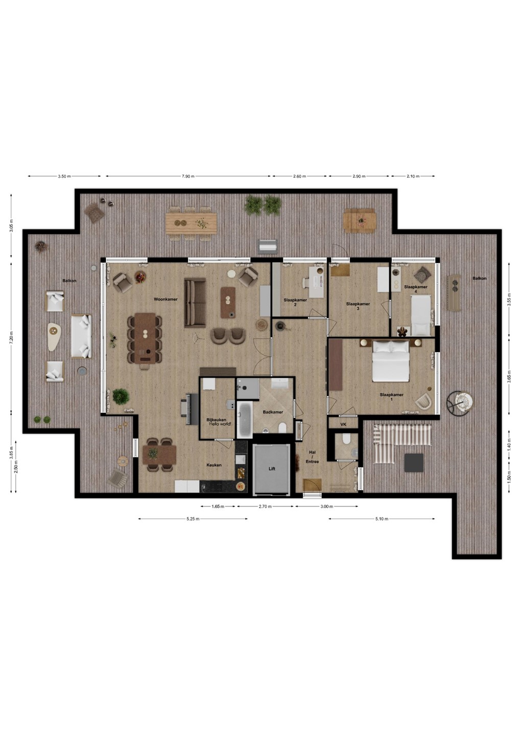 Het buitenleven is hier werkelijk uniek. Het royale dakterras van circa 150 m² ligt rondom het penthouse, waardoor je op ieder moment van de dag een fijne plek in de zon of schaduw kunt vinden. Of je nu rustig wilt ontbijten in de ochtendzon of uitgebreid wilt dineren met vrienden – dit dakterras biedt alle ruimte om optimaal te genieten. En dat alles met een prachtig uitzicht over het dorp Veen.