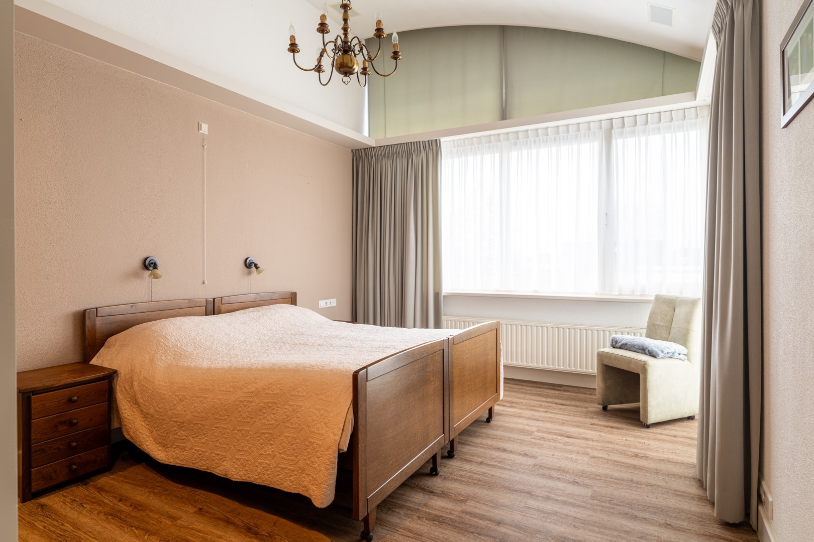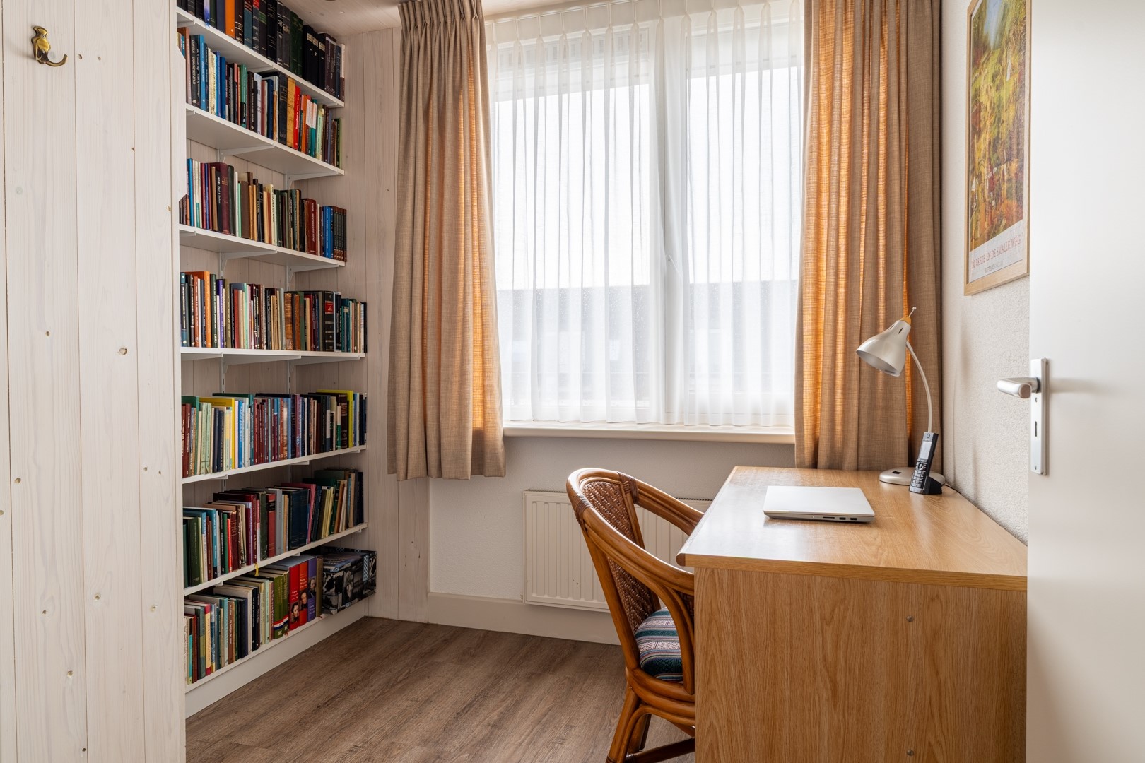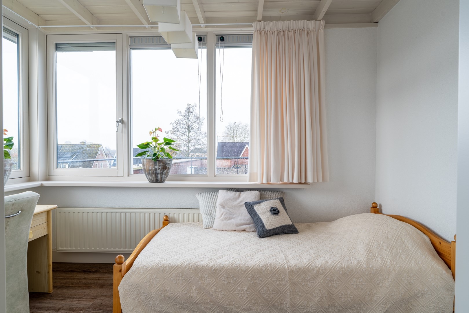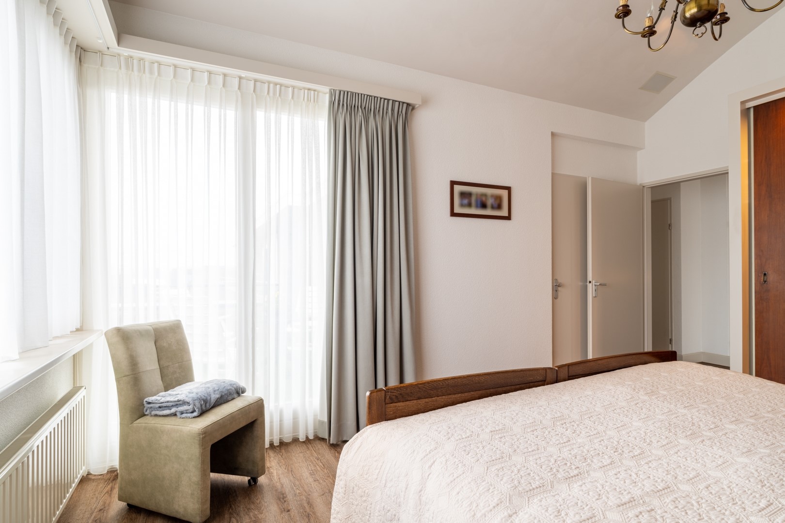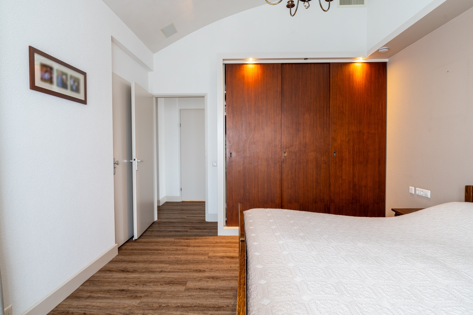 De slaapvleugel is ruim en praktisch ingedeeld met vier slaapkamers en een complete badkamer. Hierdoor is de woning perfect geschikt voor een gezin, voor thuiswerken of voor het creëren van een comfortabele logeerkamer. De badkamer beschikt over een ligbad, douche, wastafelmeubel met spiegel, vaste kastruimte, toilet en urinoir. Eén van de slaapkamers wordt momenteel gebruikt als werkkamer en is voorzien van een vaste boekenkast. De master bedroom heeft een ruime vaste kast met schuifwanden en daarnaast nog een extra vaste kast. Vanuit één van de slaapkamers heb je bovendien directe toegang tot het dakterras.