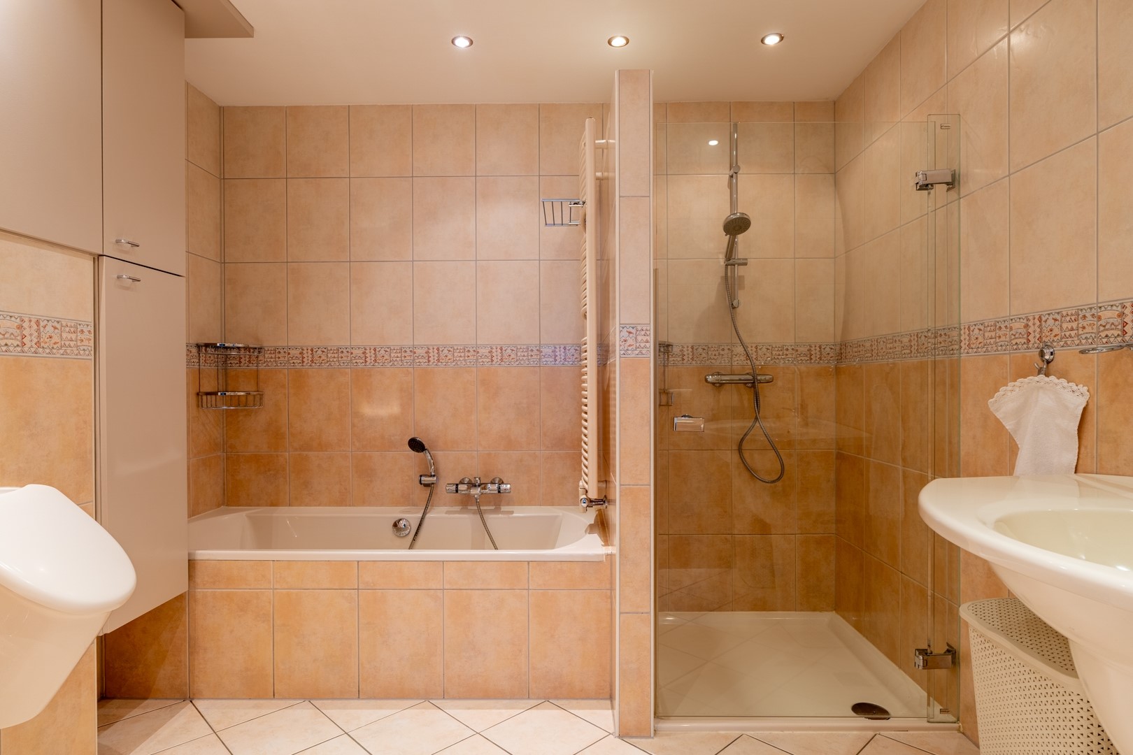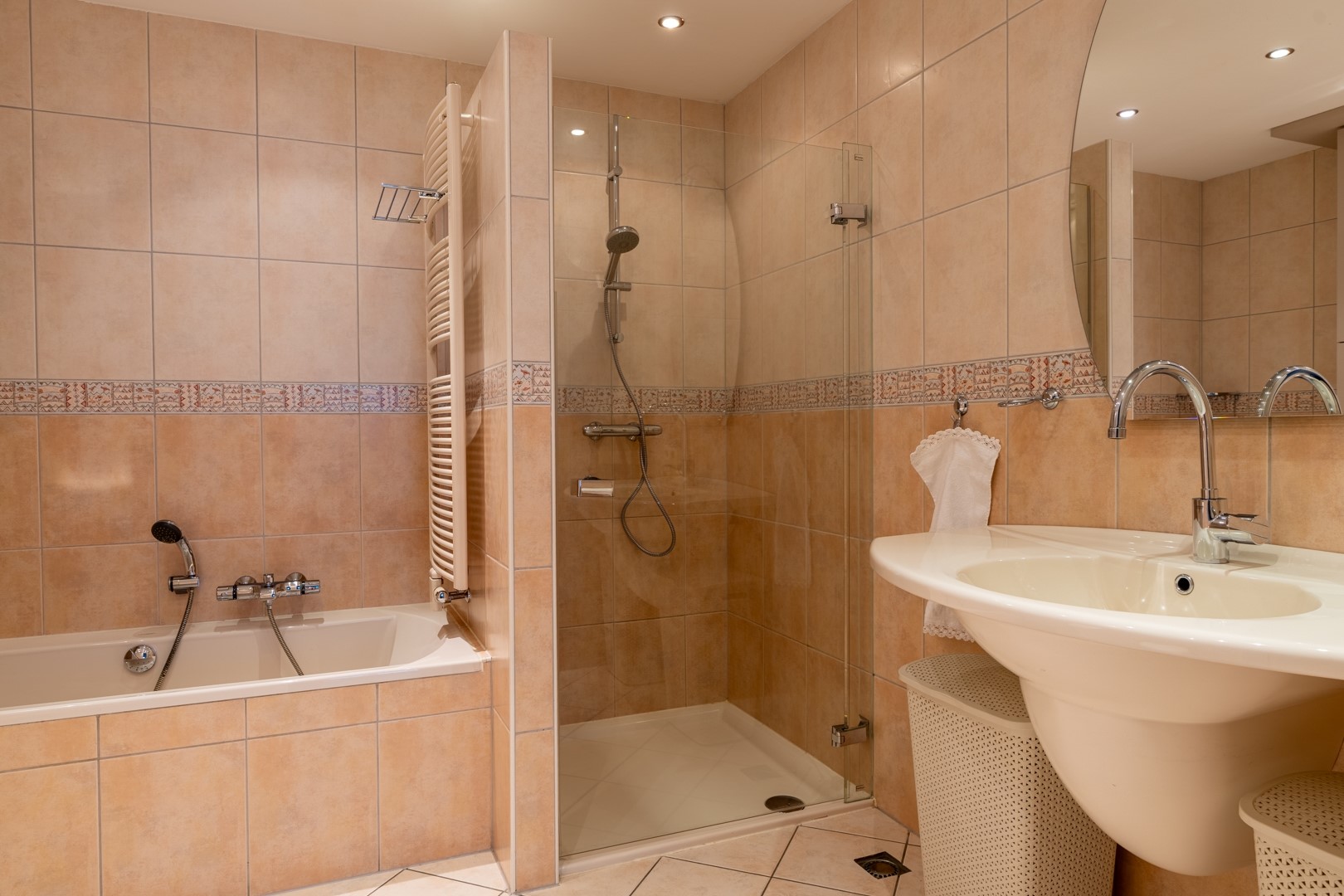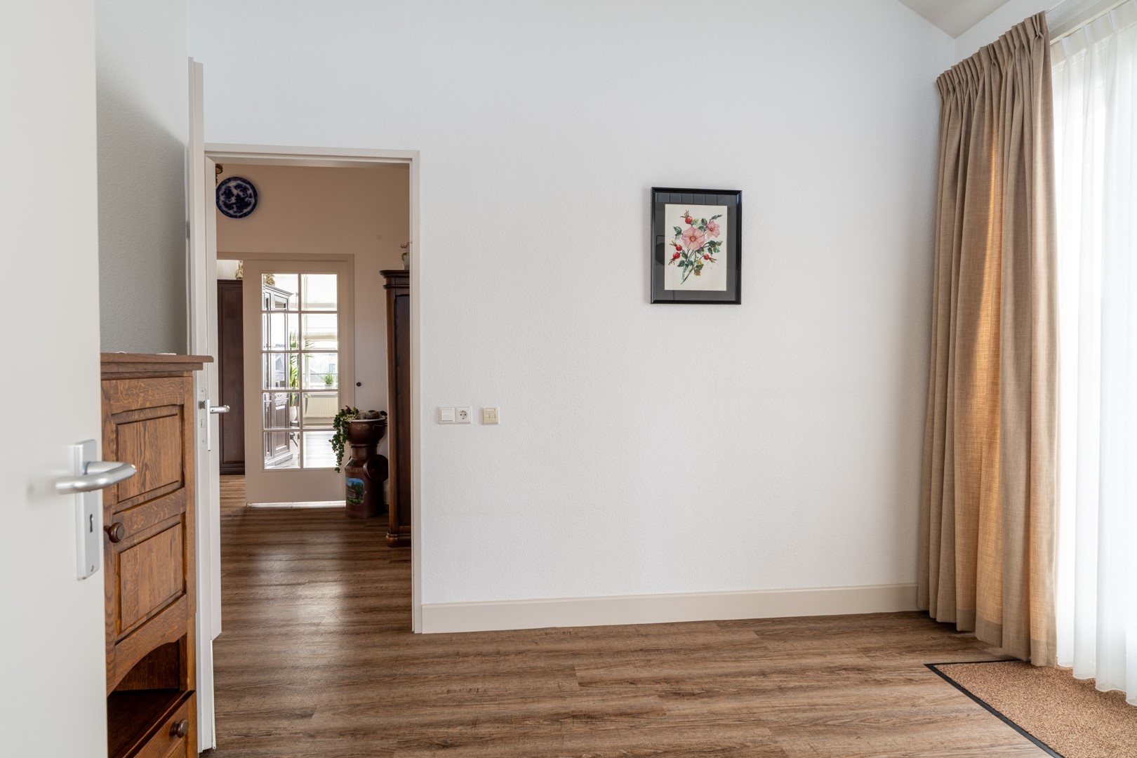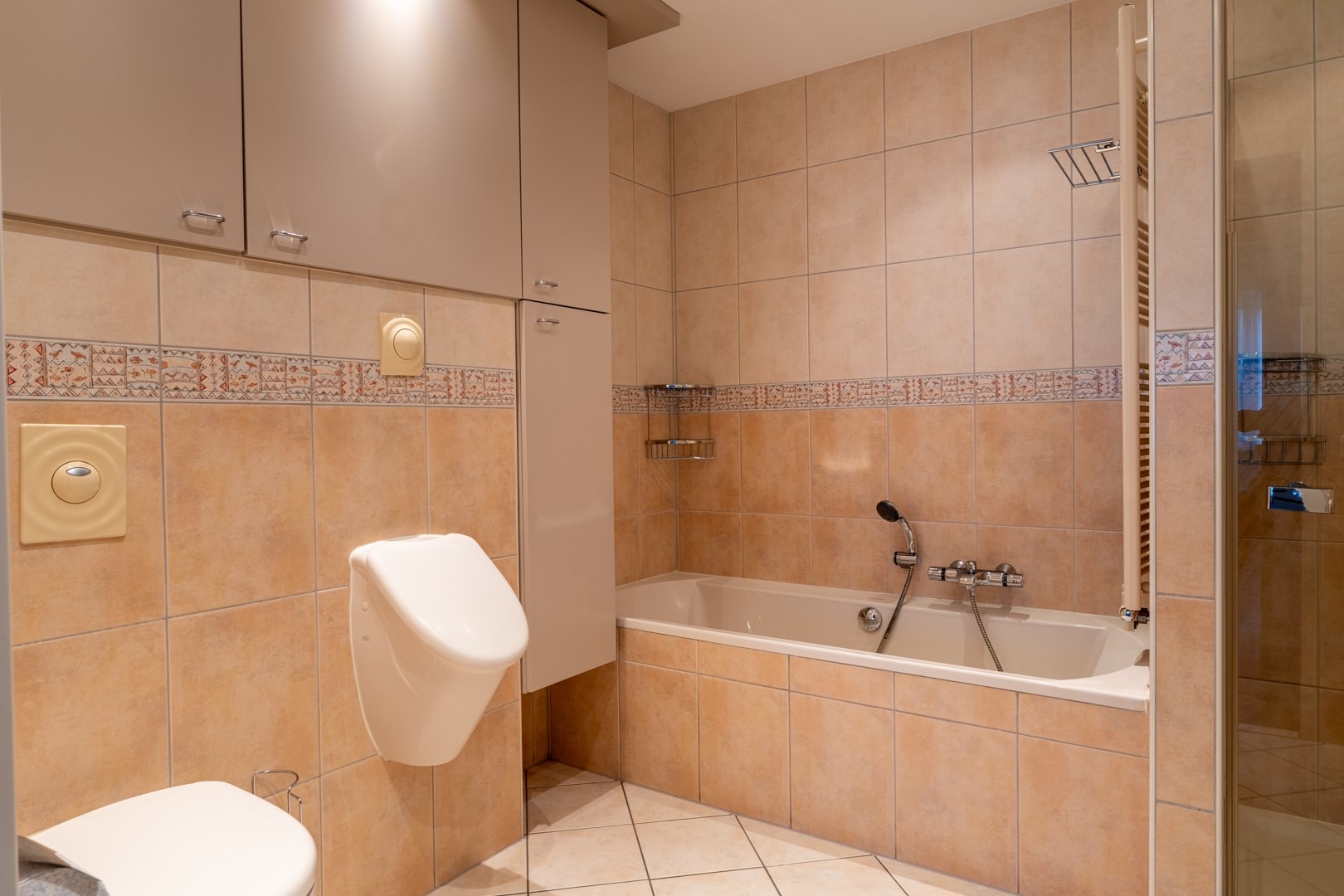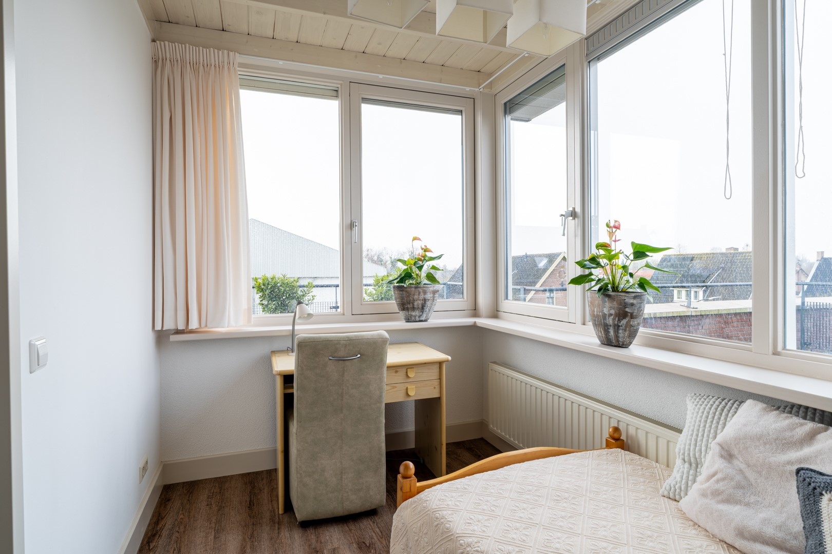 De slaapvleugel is ruim en praktisch ingedeeld met vier slaapkamers en een complete badkamer. Hierdoor is de woning perfect geschikt voor een gezin, voor thuiswerken of voor het creëren van een comfortabele logeerkamer. De badkamer beschikt over een ligbad, douche, wastafelmeubel met spiegel, vaste kastruimte, toilet en urinoir. Eén van de slaapkamers wordt momenteel gebruikt als werkkamer en is voorzien van een vaste boekenkast. De master bedroom heeft een ruime vaste kast met schuifwanden en daarnaast nog een extra vaste kast. Vanuit één van de slaapkamers heb je bovendien directe toegang tot het dakterras.