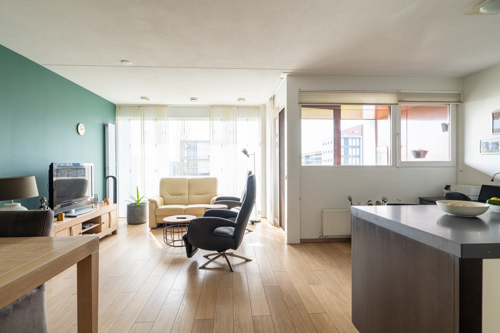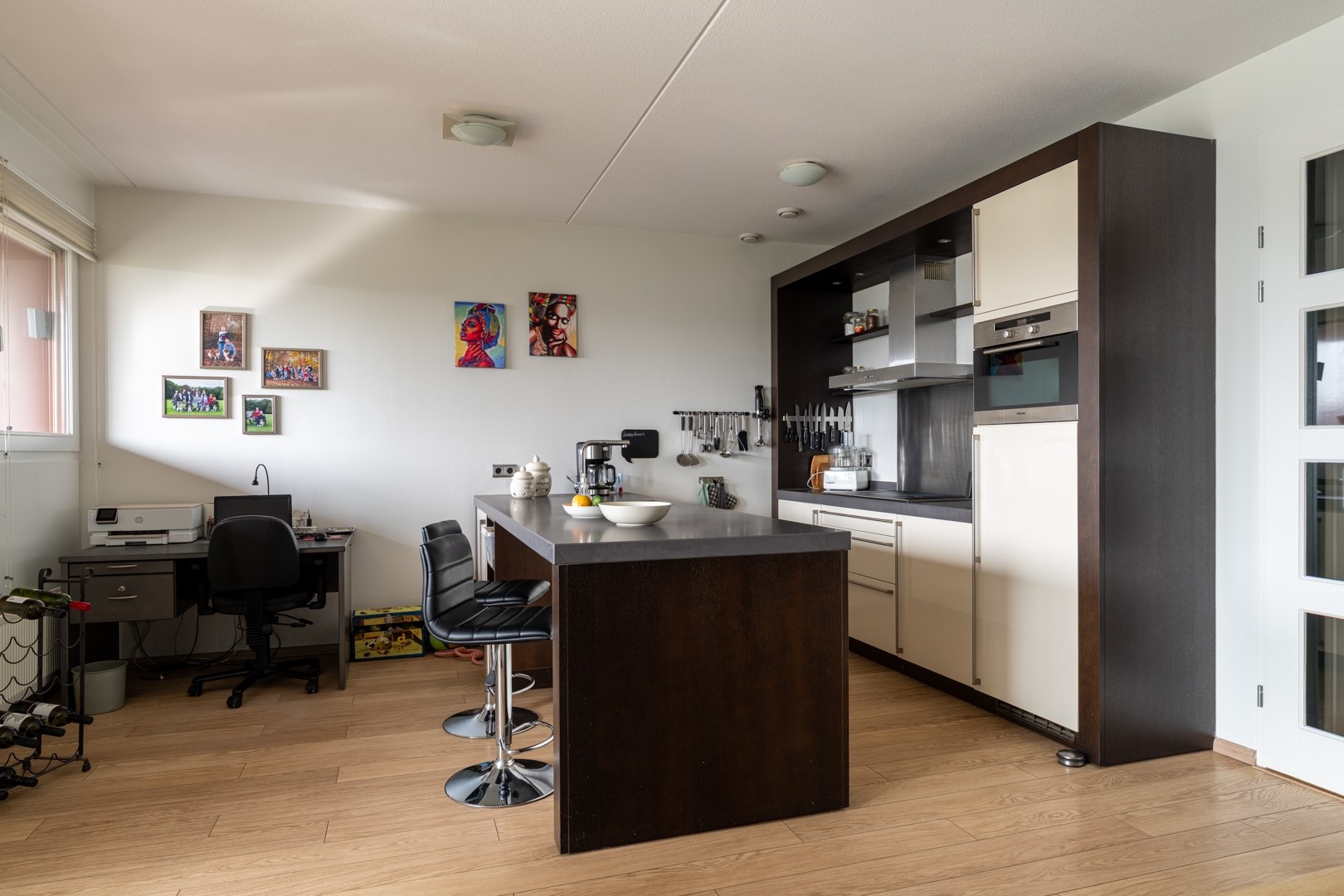 Ruime hal met meterkast, toilet, luxe badkamer voorzien van een inloopdouche en wastafelmeubel, 2 nette slaapkamers en technische ruimte met WTW-installatie (Itho, 2007) CV-combiketel (AWB, 2007) en was-aansluitingen. Aan de achterzijde gelegen op het zuiden bevindt zich de royale L-vormige living met loopdeur naar het inpandige balkon en open keuken met luxe keukenopstelling en sfeervol kookeiland met eetbar voorzien van de volgende inbouwapparatuur; inductiekookplaat met afzuigkap, combimagnetron, vaatwasser en koelkast. Het complex is voorzien van een belinstallatie, trapportaal en lift. Tevens is er voldoende parkeergelegenheid in de directe omgeving.