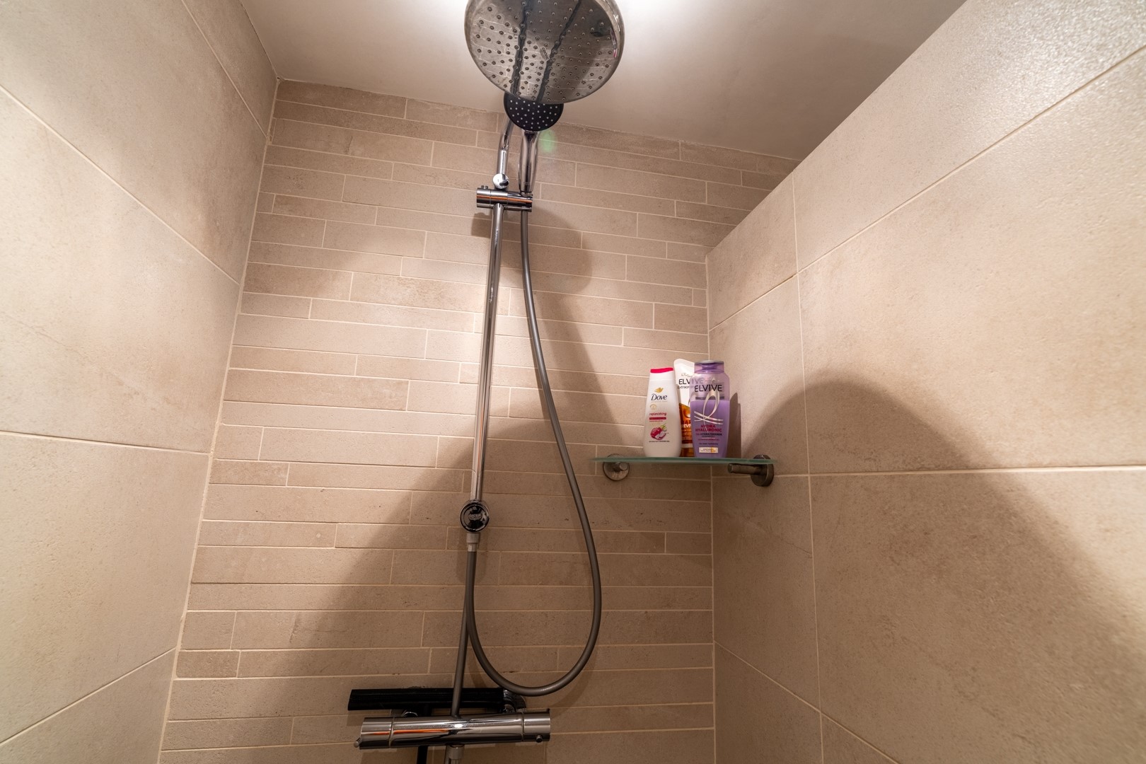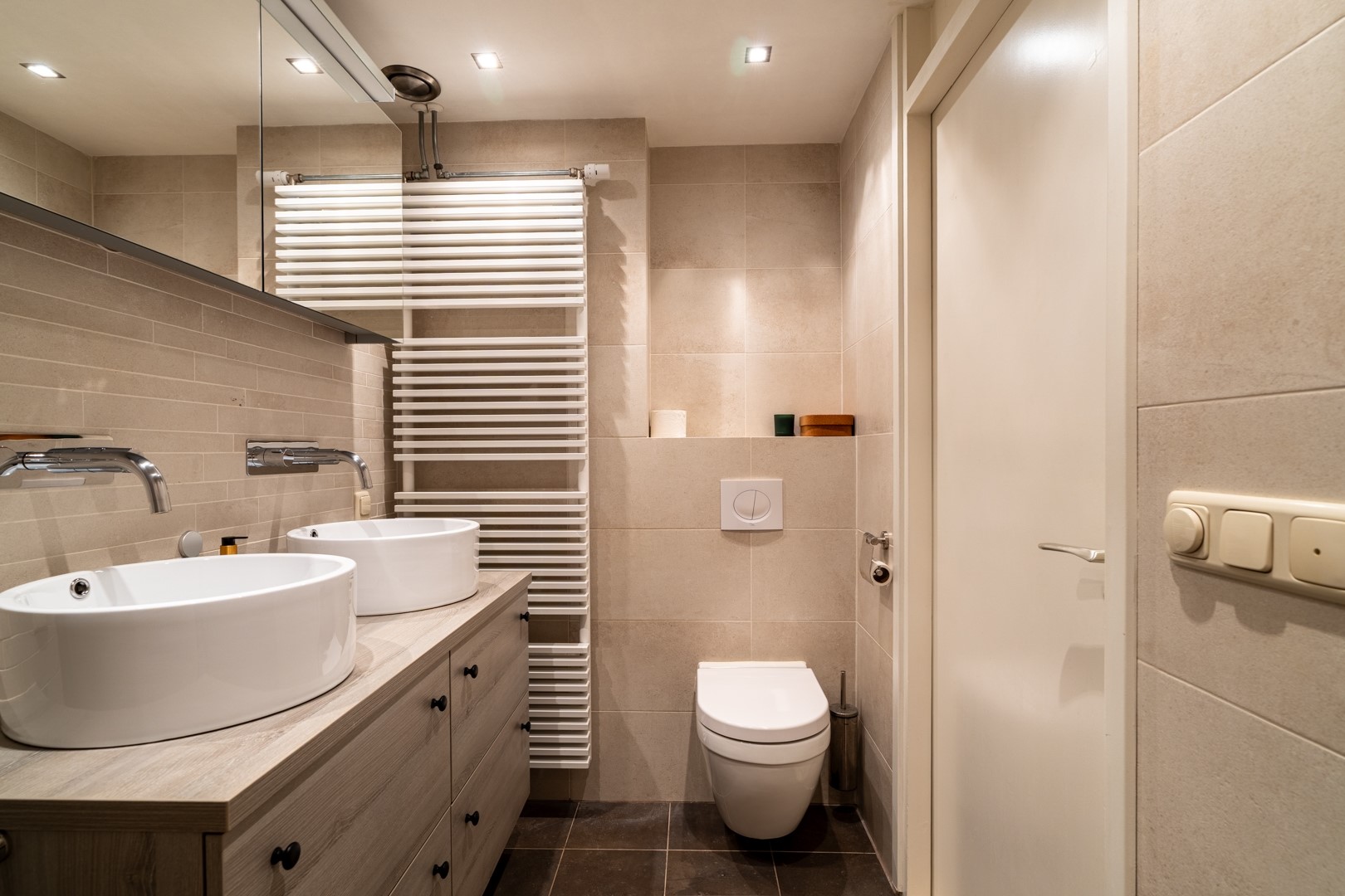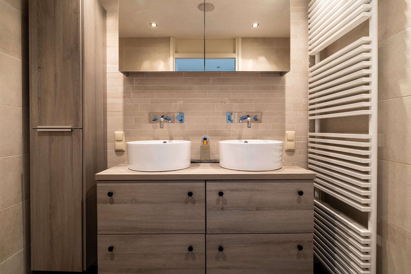 Vanaf de overloop heb je toegang tot drie slaapkamers waarvan 1 met airco en de moderne badkamer met luxe inloop/stortdouche, 2e toilet, dubbele wastafel met meubel en designradiator.