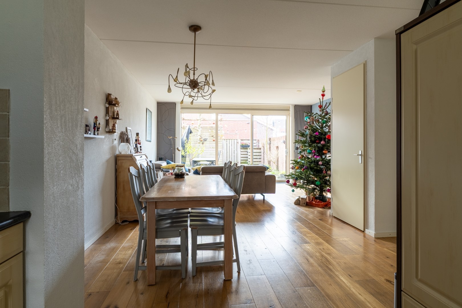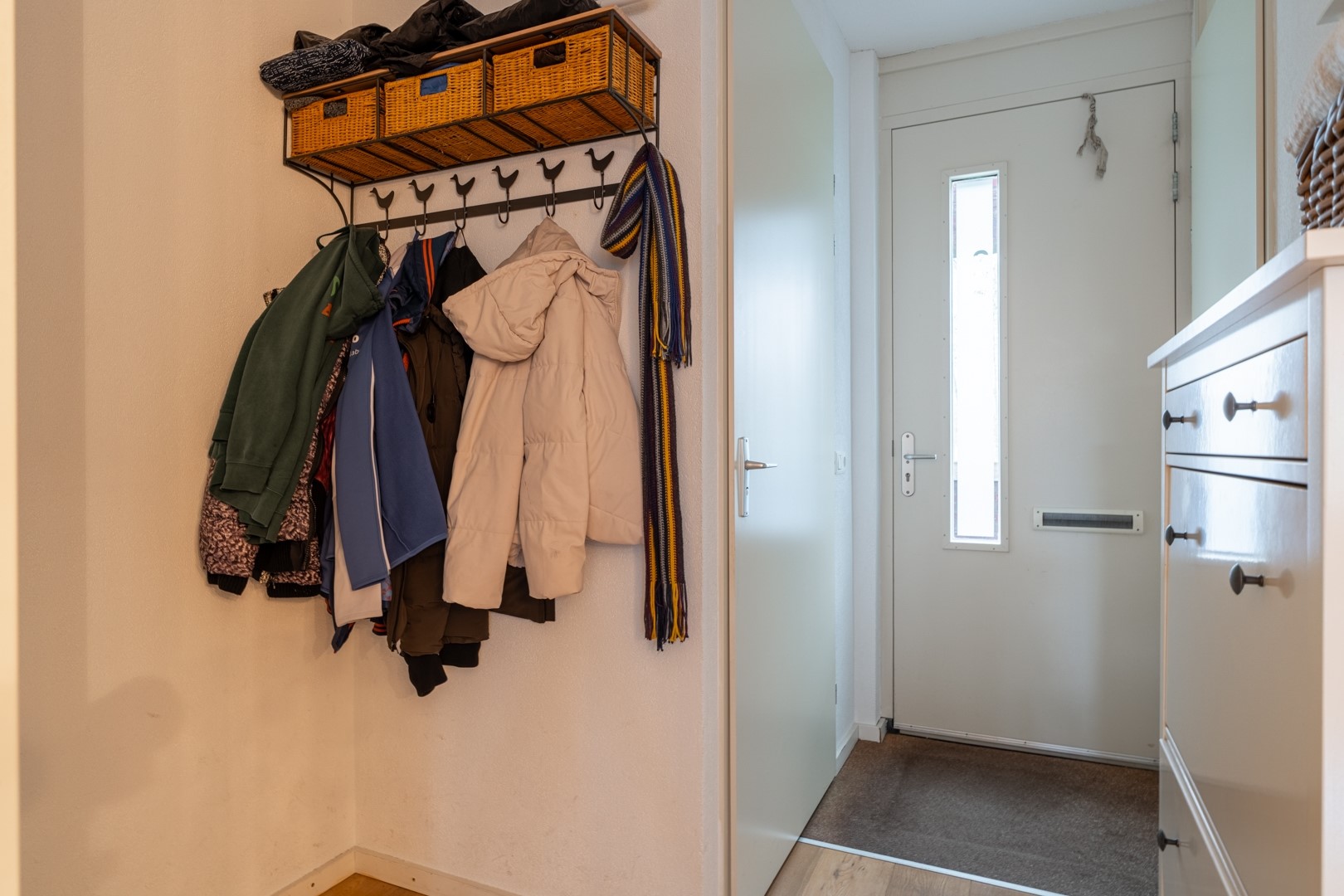 Bij binnenkomst valt meteen op hoe netjes en verzorgd deze woning is. In de hal bevinden zich de trapopgang, garderobe, meterkast en het toilet. Vanuit hier stap je de woonkamer binnen: een lichte, aangename ruimte met een praktische trapkast en een schuifpui naar de zonnige tuin. De grote ramen zorgen voor veel daglicht en geven de kamer een open en rustige uitstraling.