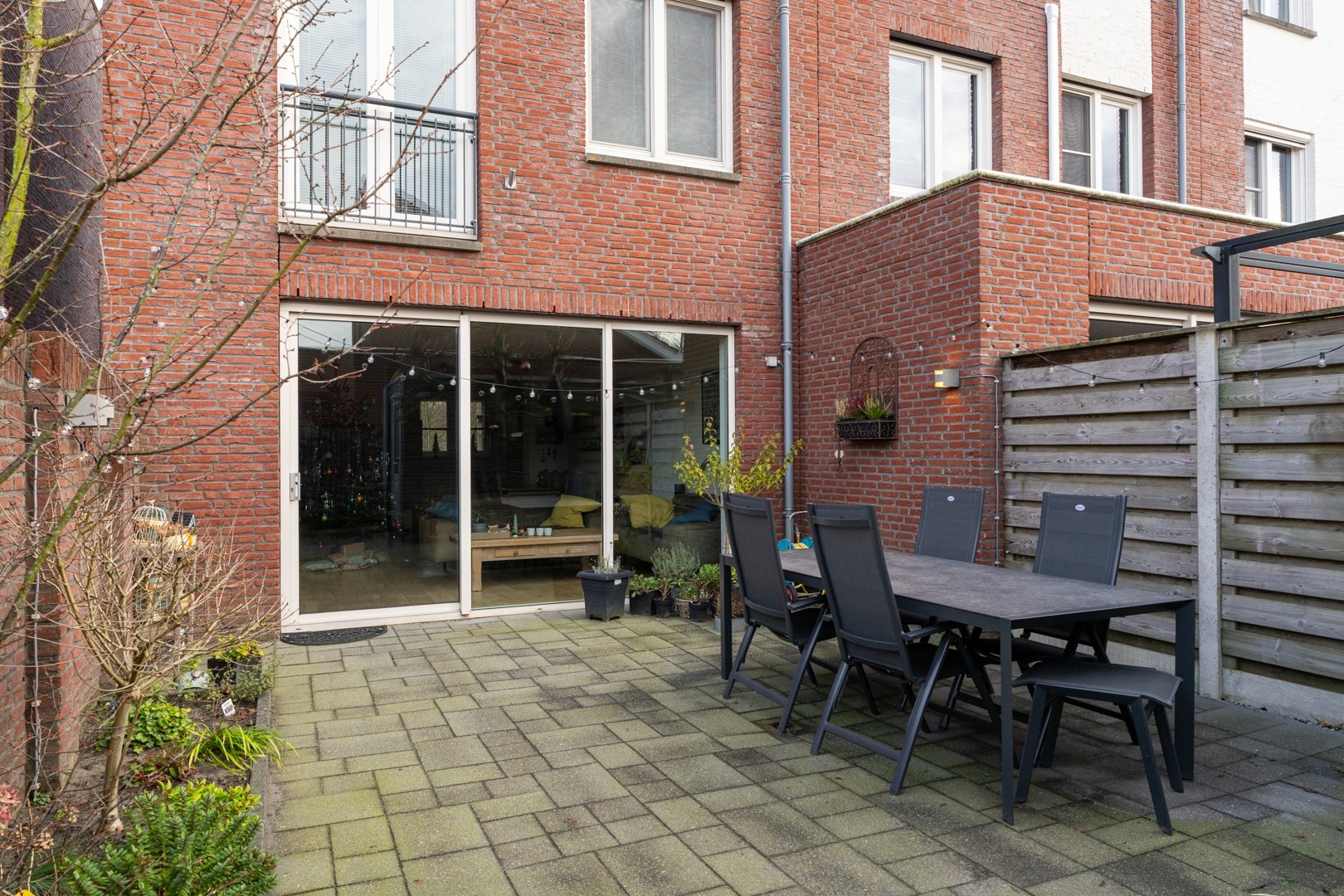 De achtertuin is keurig en onderhoudsarm aangelegd, met ruimte voor zowel een zit- als eethoek. Dankzij de gunstige ligging op het zuidwesten geniet je hier volop van de zon. Achterin de tuin bevindt zich een houten berging en een achterom richting de parkeerplaatsen.
