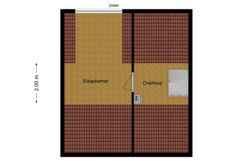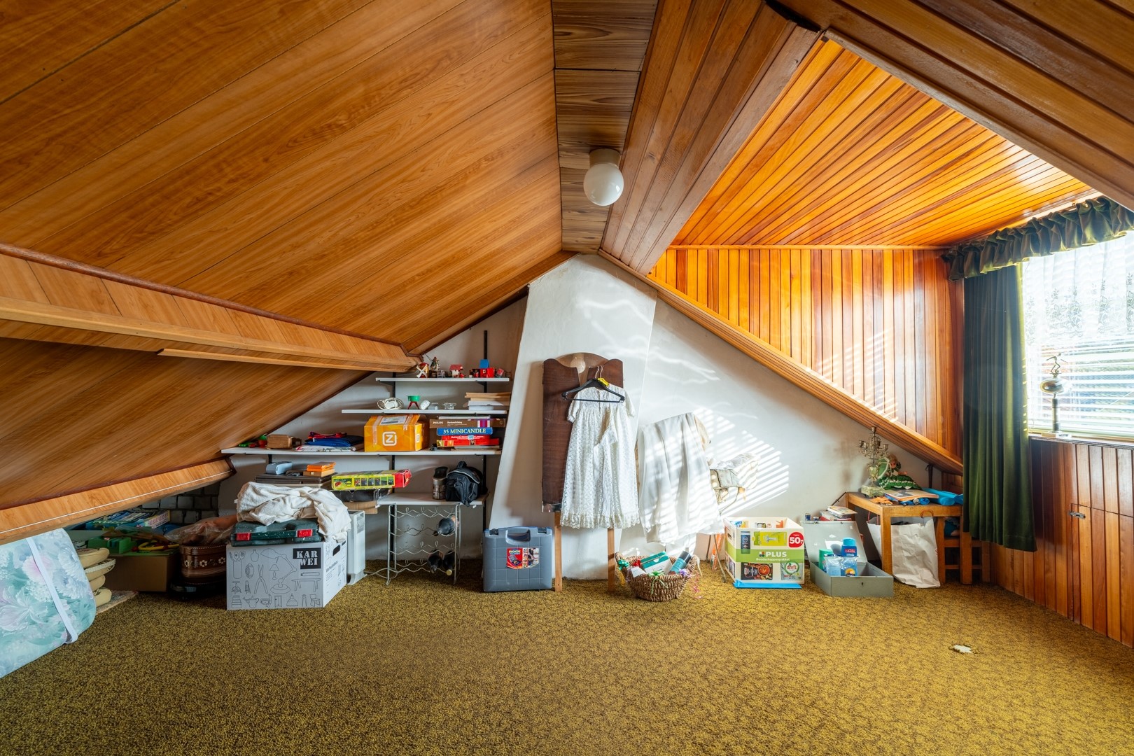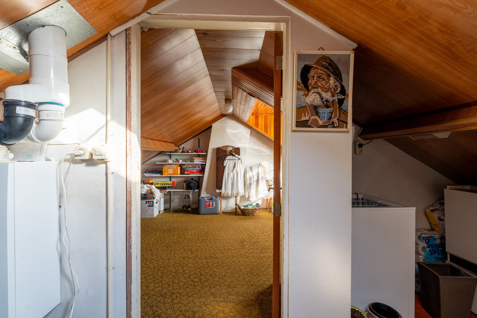 De woning beschikt over een zolderverdieping met slaapkamer, bereikbaar via een vlizotrap, die ideaal is als bergruimte. Hier bevindt zich ook de CV-installatie (Remeha HR, bouwjaar 2023).