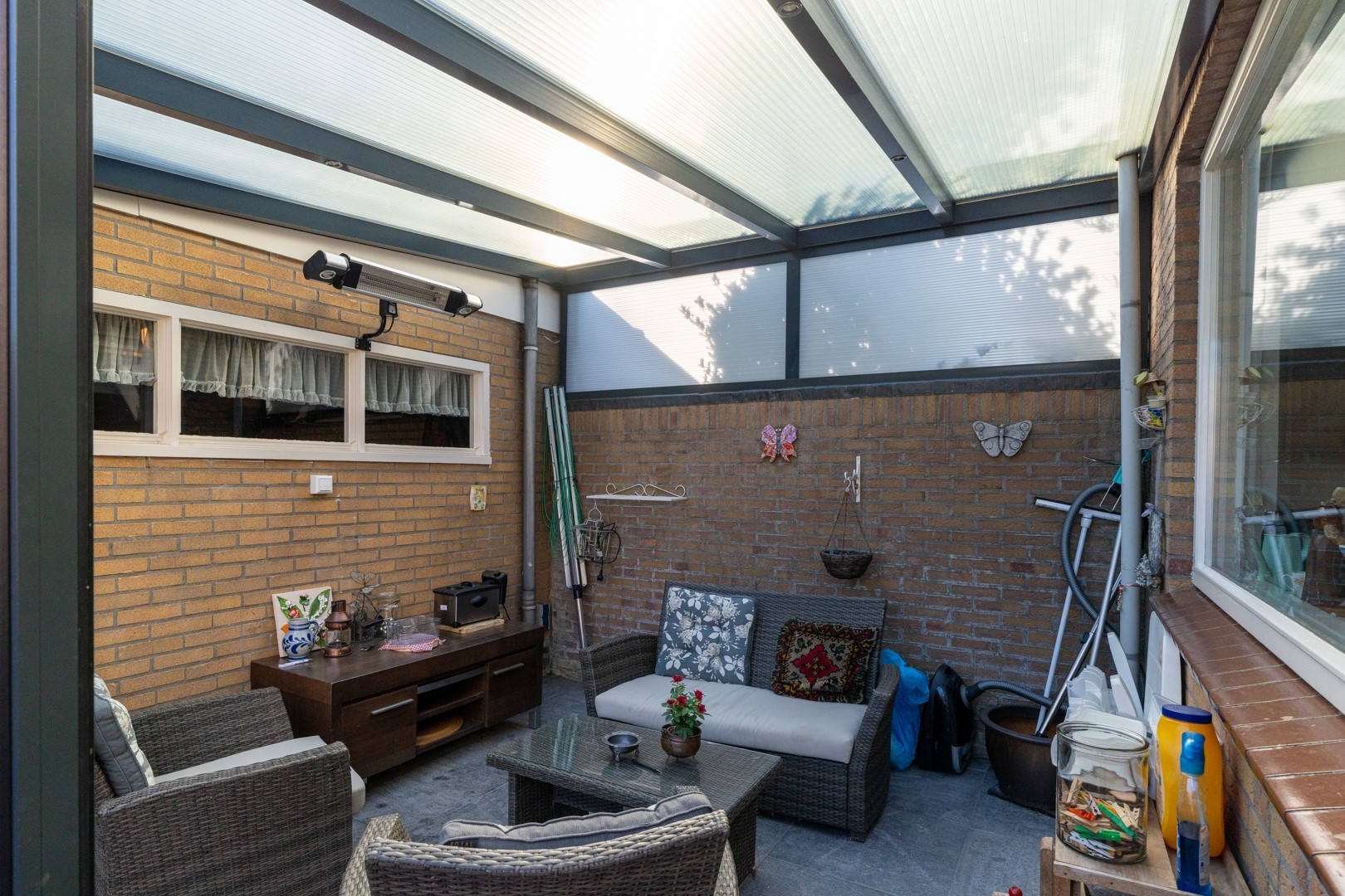 De woning heeft een voor- en achtertuin, beide onderhoudsvriendelijk aangelegd. De achtertuin op het oosten is volledig omheind, biedt veel privacy en is voorzien van borders met beplanting, bestrating, een serre, een houten fietsenschuurtje en een achterom.