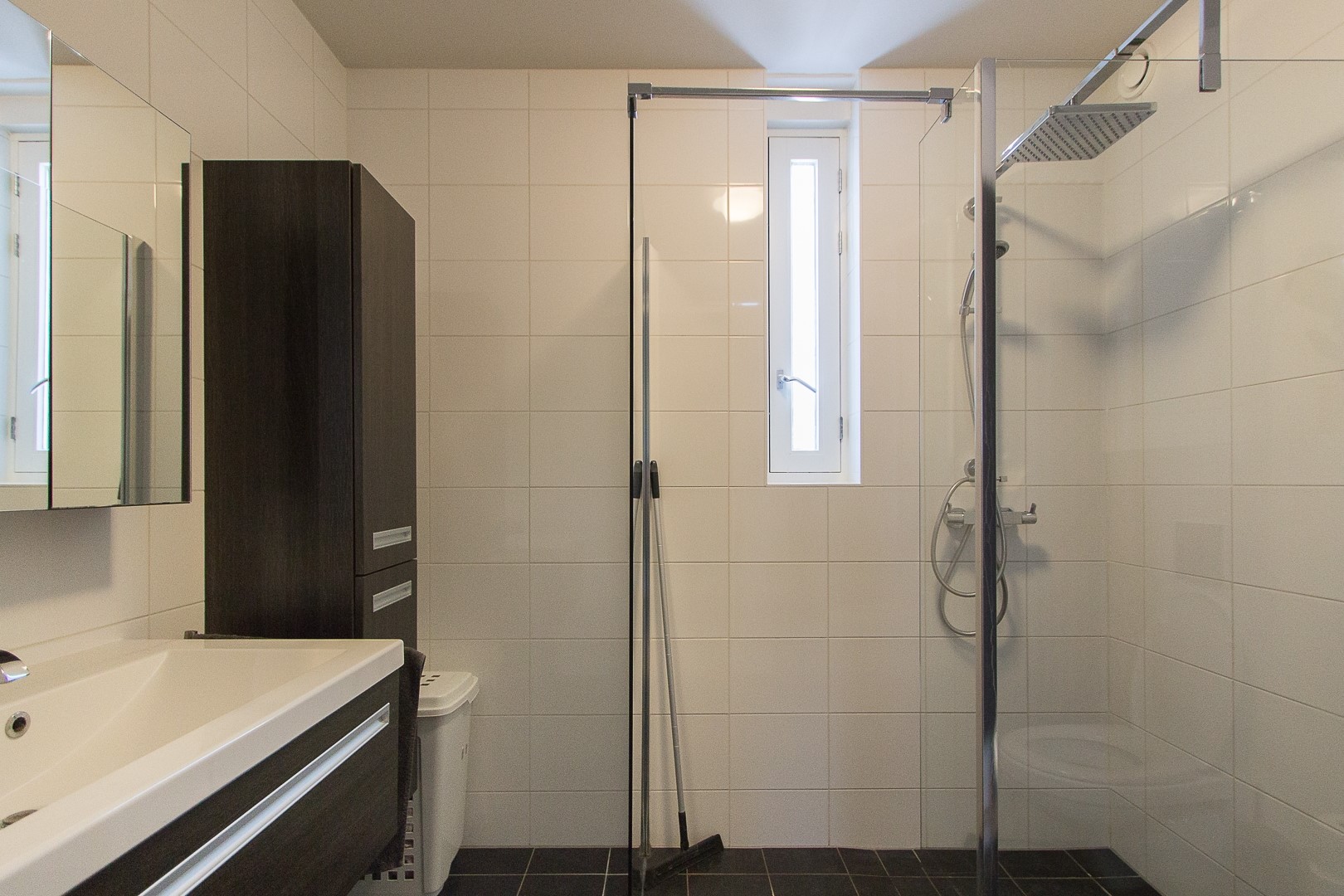 Op de eerste verdieping bevinden zich twee slaapkamers. De hoofdslaapkamer is voorzien van een walk-in closet en rolluiken. De badkamer is modern uitgevoerd en beschikt over een inloopdouche, hangend toilet en een wastafelmeubel.