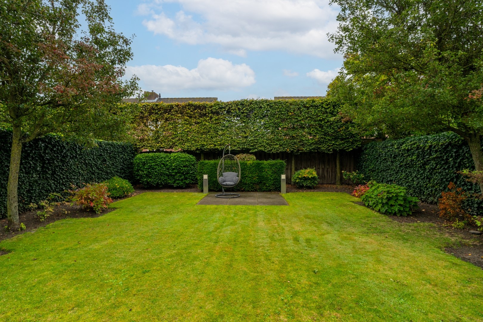 De omsloten achtertuin is gelegen op het zonnige zuiden. De tuin is afwisselend ingedeeld met sierbestrating, terras, gazon en plantenborders. De vrijstaande garage is aan de voorzijde voorzien van een kanteldeur en praktische carport met ruime oprit voor meerdere auto’s, tevens is de garage bereikbaar vanuit de achtertuin middels een loopdeur en voorzien van elektra. De voortuin is ingericht als siertuin met vaste beplanting en sierbestrating.