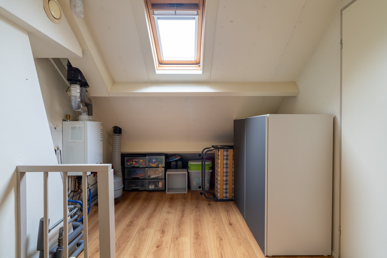 Ruime zolderetage bereikbaar middels een vaste trap. Op de voorzolder bevindt zich de CV-opstelling (Type: Nefit HR, bouwjaar 2014). De extra slaapkamer is ruim en voorzien van een dakkapel en vaste kastruimtes en is ook prima bruikbaar als hobbykamer of werken thuis.