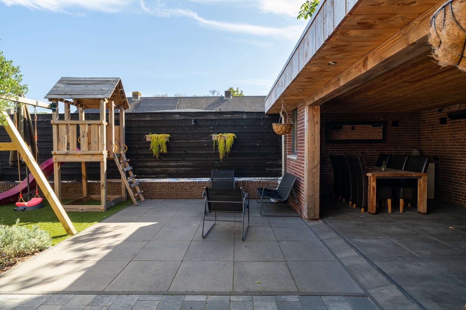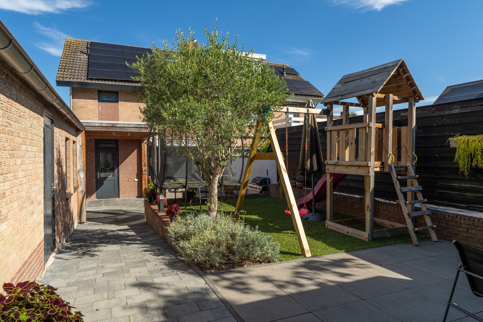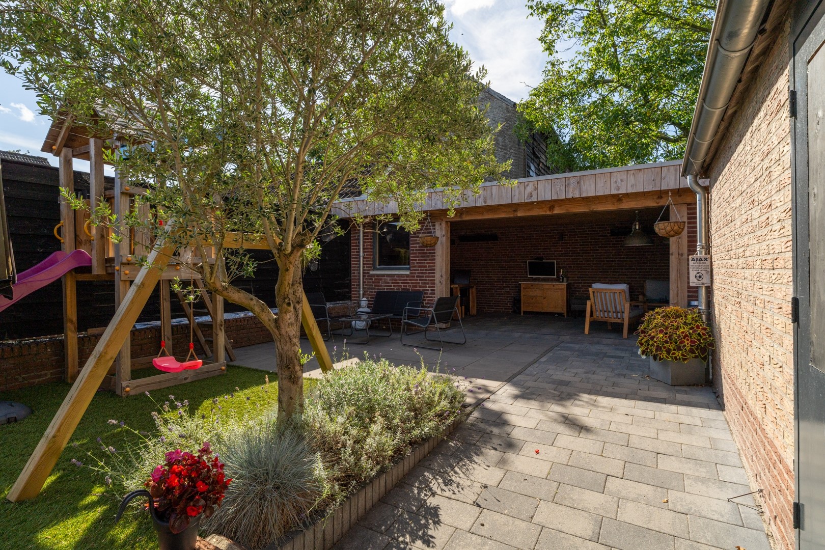 • Omsloten en onderhoudsvriendelijke achtertuin met berging en garage;