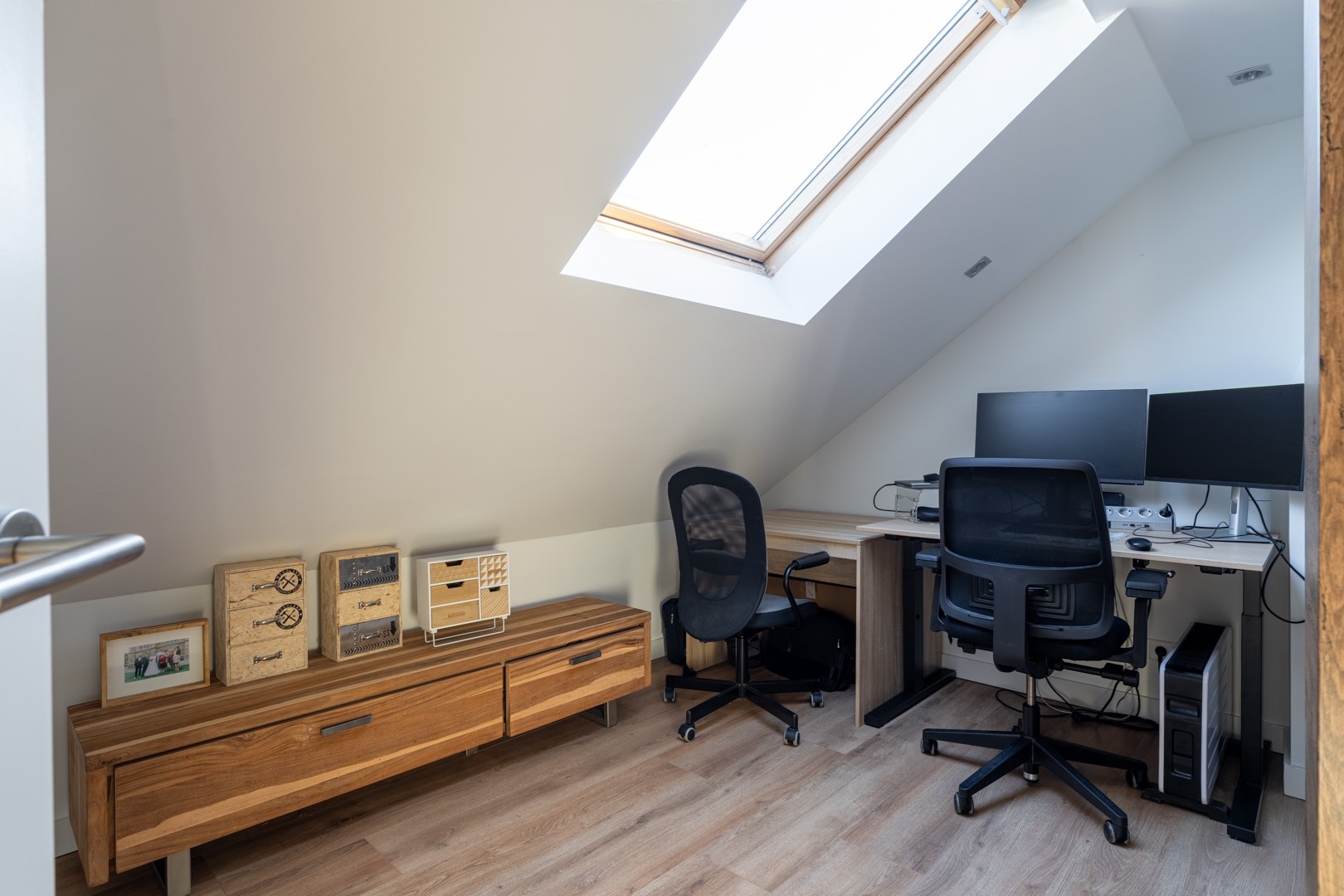 Ruime zolderetage bereikbaar middels een vaste trap. Op de voorzolder bevindt zich hier de CV-opstelling (Remeha HR, bouwjaar 2021) en aansluiting voor de wasmachine en droger. De extra 4e en 5e slaapkamer met Velux dakramen doen dienst als kantoor en logeerkamer, maar zijn ook prima bruikbaar als hobbykamer.