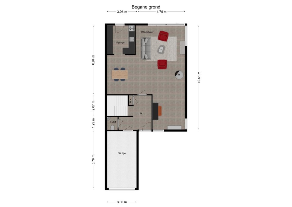 Begane grond (voorzien van vloerverwarming):