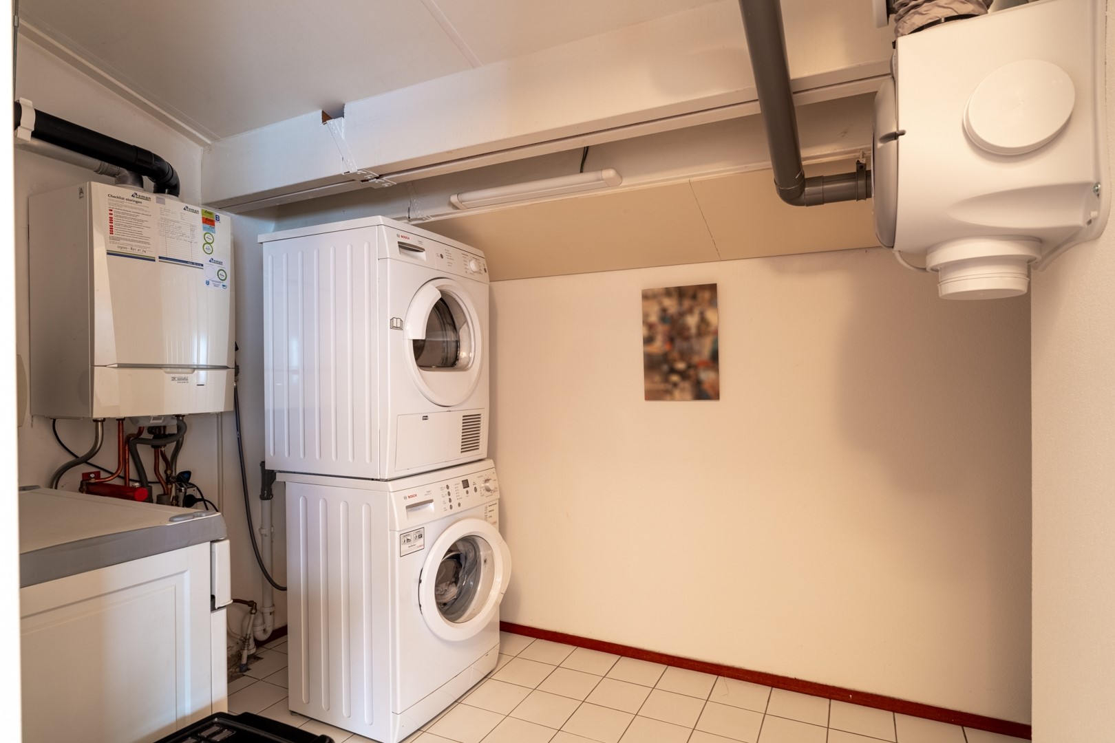 Overloop met vide, was-/technische ruimte met wasmachineaansluitingen, CV-opstelling (Nefit HR, 2009) en ventilatiebox. Separaat toilet. De moderne badkamer is uitgevoerd met een ligbad, douche, dubbele wastafel en designradiator. Daarnaast zijn er drie ruime slaapkamers aanwezig met de mogelijkheid tot het realiseren van een vierde slaapkamer.