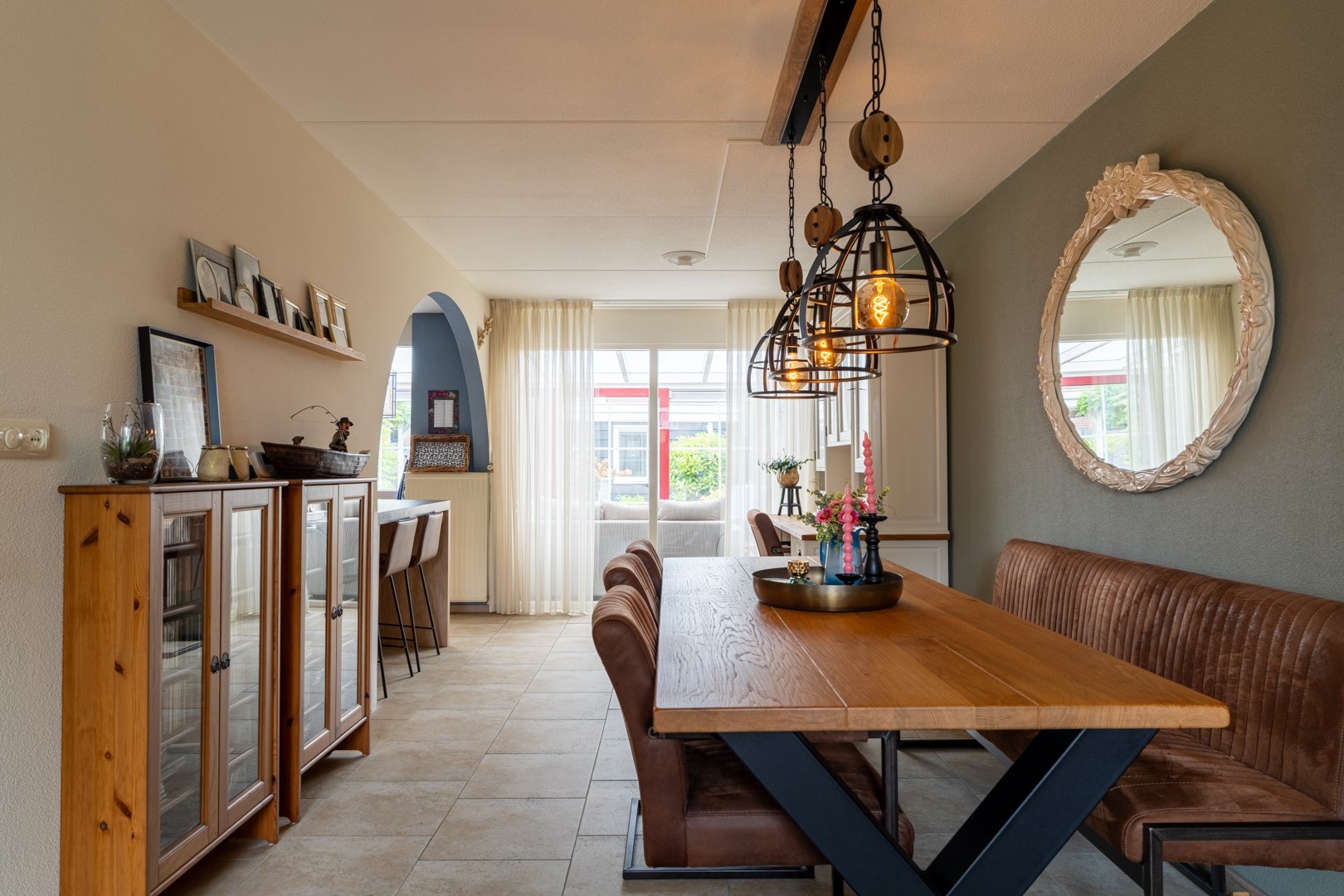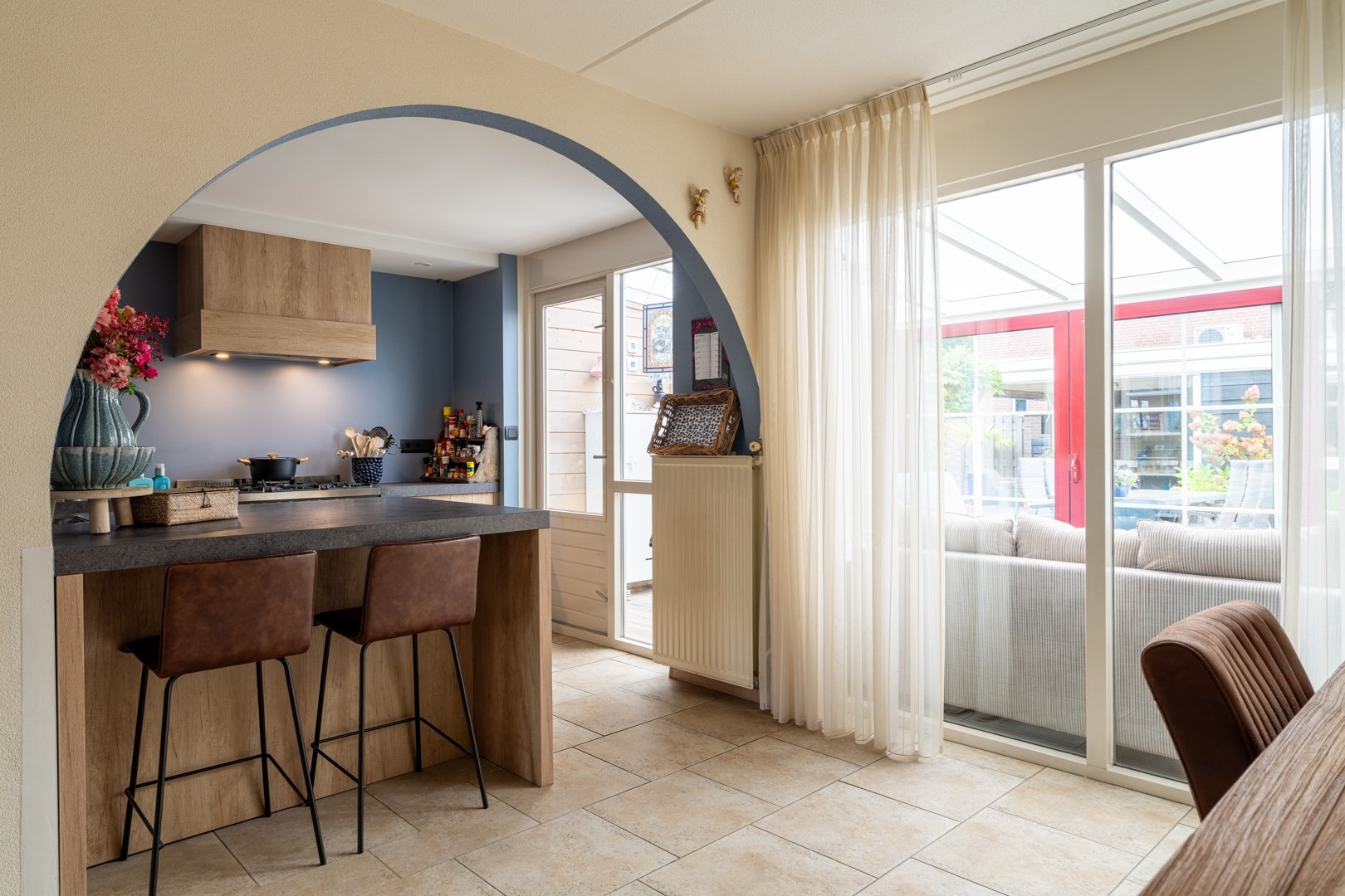 Op een mooie hoek in een rustig hofje staat deze verrassend ruime en goed onderhouden twee-onder-een-kapwoning met garage. Achter is de woning uitgebouwd met een sfeervolle tuinkamer — echt zo'n fijne plek waar je het hele jaar door van je tuin geniet. De keuken? Die is luxe, modern en super praktisch met een kookeiland en alles wat je nodig hebt. De woonkamer aan de voorkant geeft uitzicht op een groen plantsoen, wat het extra ruimtelijk en rustig maakt. Boven is alles keurig afgewerkt met drie nette slaapkamers en een complete badkamer. En dan is er ook nog een grote zolder met vaste trap — ideaal voor een extra kamer of werkplek. Naast het huis staat een geïsoleerde garage, met daarachter een handige bijkeuken. Helemaal achter in de tuin vind je een sfeervol houten bijgebouw met overkapping en houtkachel. Hier wil je gewoon zitten. Kortom: een heerlijk, compleet gezinshuis op een fijne plek!
