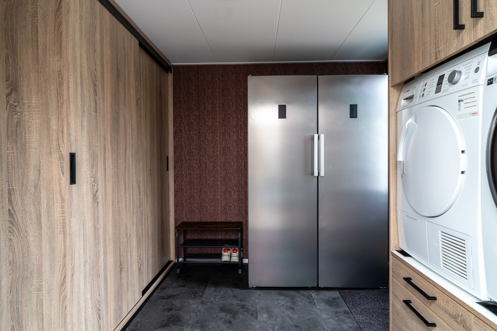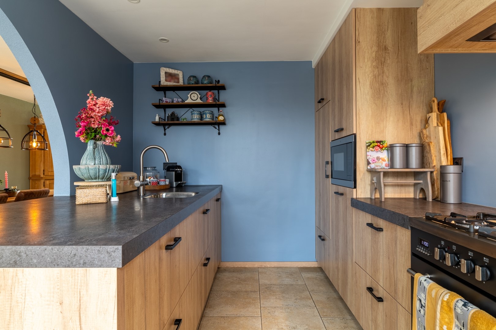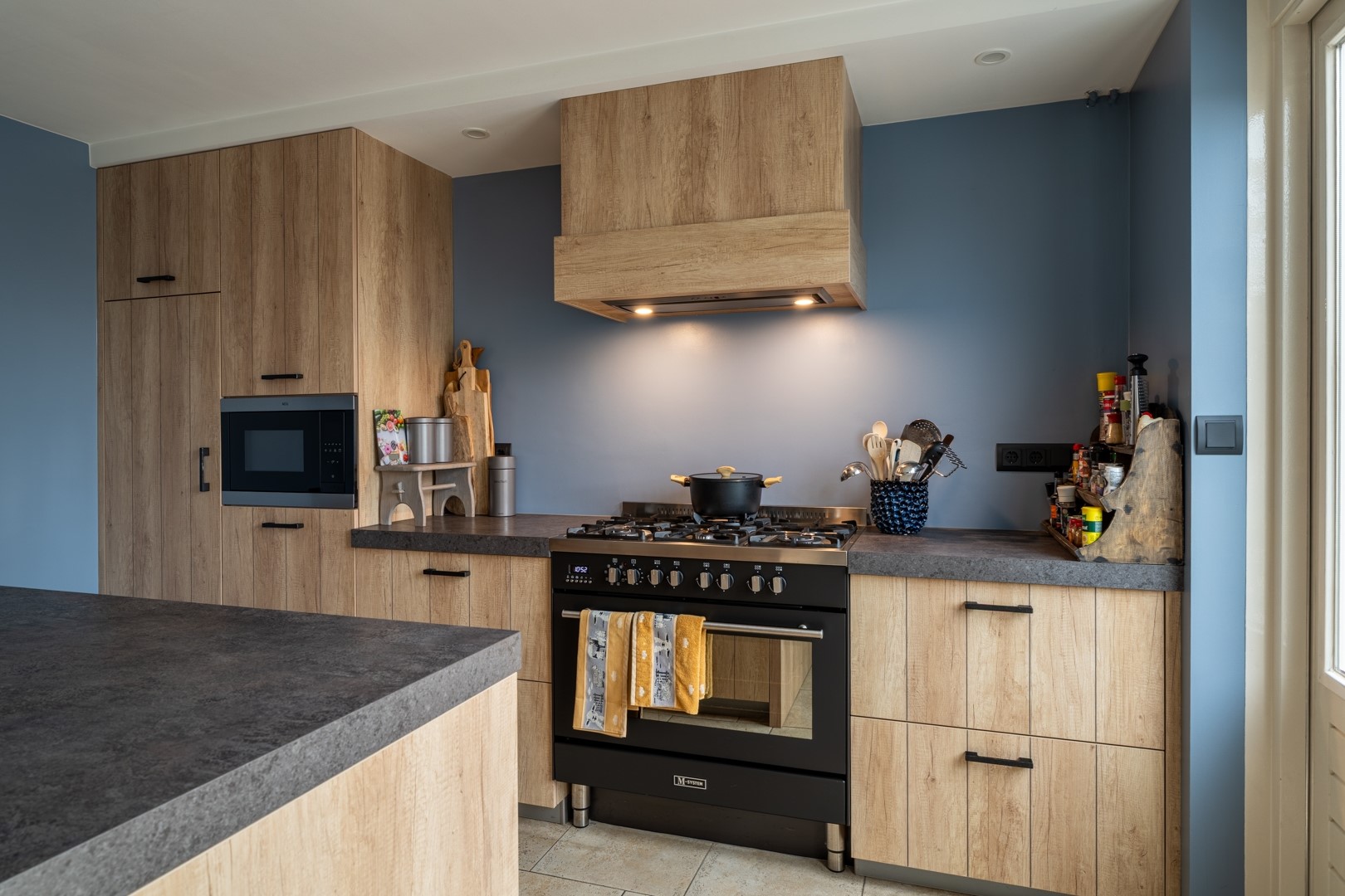 Een keuken om van te dromen! De combinatie van een rechte wandopstelling met een kookeiland maakt deze ruimte zowel stijlvol als functioneel. Voorzien van een 6-pits gasfornuis met oven, afzuigkap, magnetron, koelkast, vriezer en vaatwasser. Aan het eiland kun je ook lekker zitten met een kop koffie of borrel. De bijkeuken is bereikbaar via de tuinkamer en biedt extra werkruimte, een washoek en handige kastruimte. Alles bij de hand, zonder rommel in de keuken!