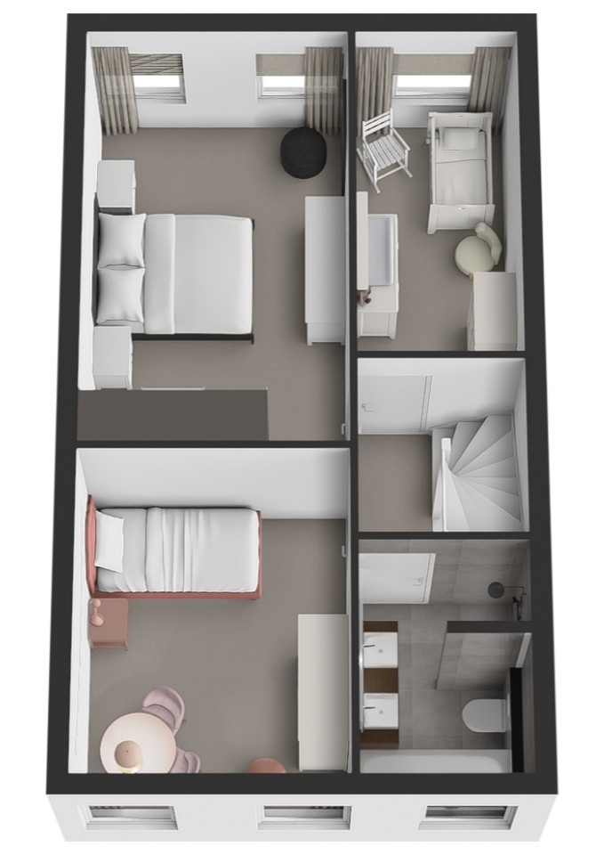 De slaapverdiepingen bieden volop ruimte. Op de eerste verdieping vind je drie grote slaapkamers én een prachtige, vernieuwde badkamer met luxe afwerking: een ligbad, inloopdouche, zwevend toilet en een strak wastafelmeubel. De zolder is verrassend ruim met een voorzolder, nóg twee slaapkamers én een aparte ruimte voor de wasmachine en droger. Alles is netjes en functioneel ingedeeld, met daarbovenop nog een handige bergzolder – perfect voor wat je niet dagelijks nodig hebt.