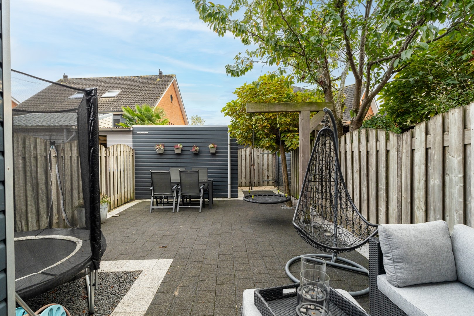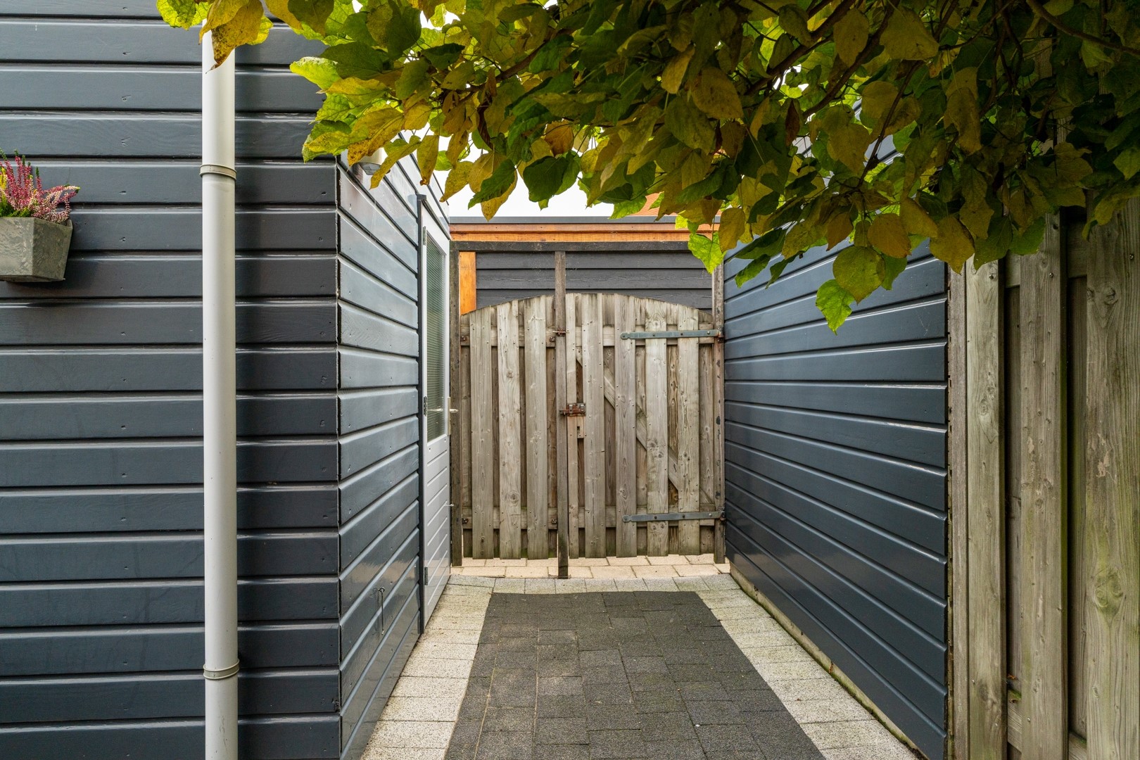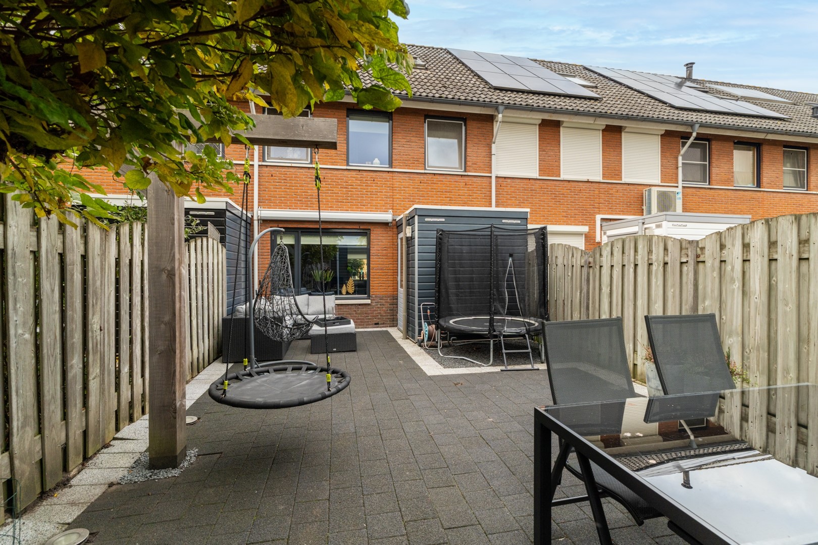 Genieten van de zon? Dat komt hier helemaal goed! De tuin ligt op het zuiden en is onderhoudsvriendelijk aangelegd. Direct achter het huis ligt een terras met een zonnescherm. Helemaal achterin staat een houten berging. Via de achterom kom je uit op een brandgang. Parkeren doe je gewoon aan de voorzijde op openbaar terrein – altijd plek!
