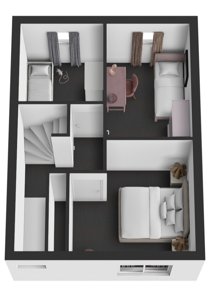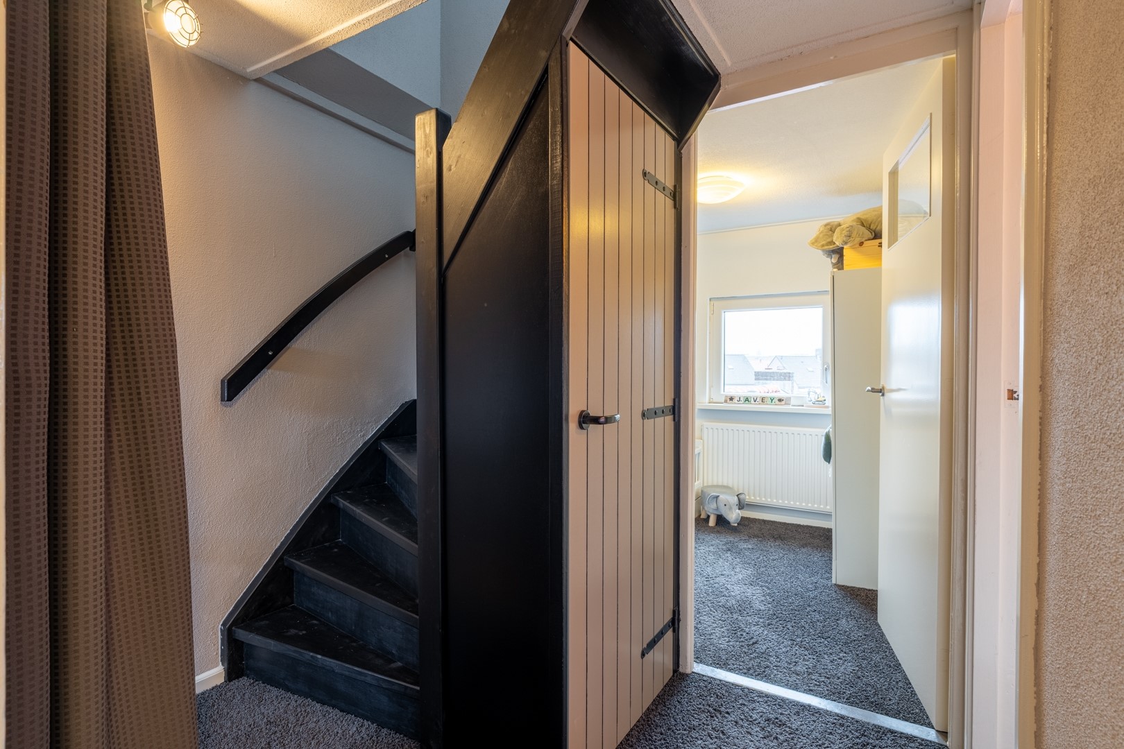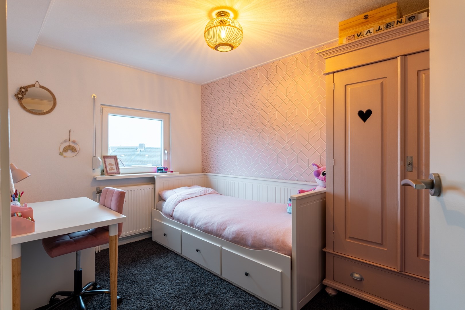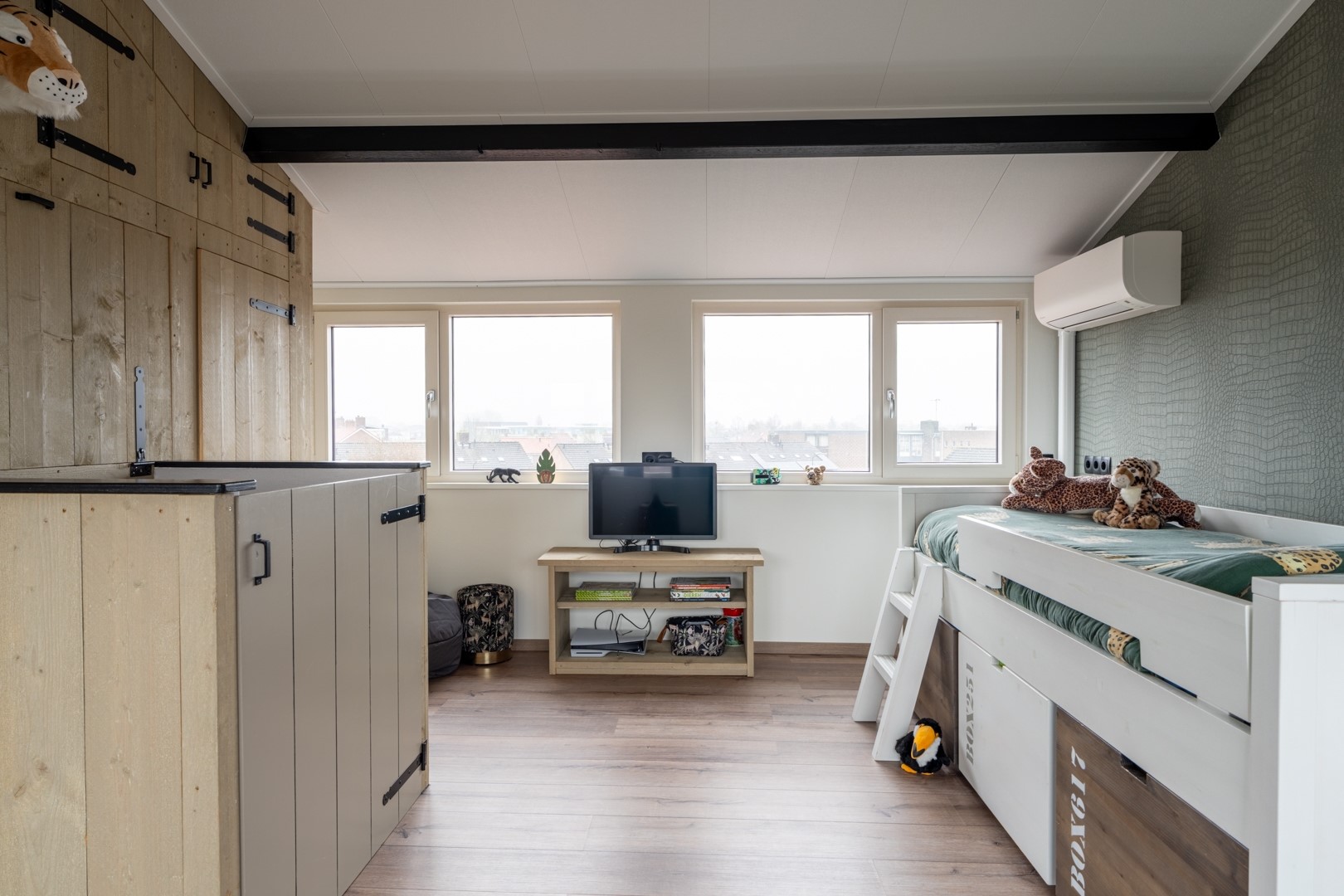 Op de eerste verdieping bevinden zich drie fijne slaapkamers. De grootste slaapkamer beschikt over vaste kastruimte en airco – heerlijk koel in warme zomernachten. De zolderverdieping is dankzij de opbouw een volwaardige extra woonlaag en momenteel ingericht als ruime (slaap)kamer. Hier is eventueel zelfs ruimte om twee kamers te creëren. Ook vind je hier een vaste kastenwand met cv-opstelling en extra bergruimte. Ook deze verdieping is voorzien van airco. Comfort verzekerd!