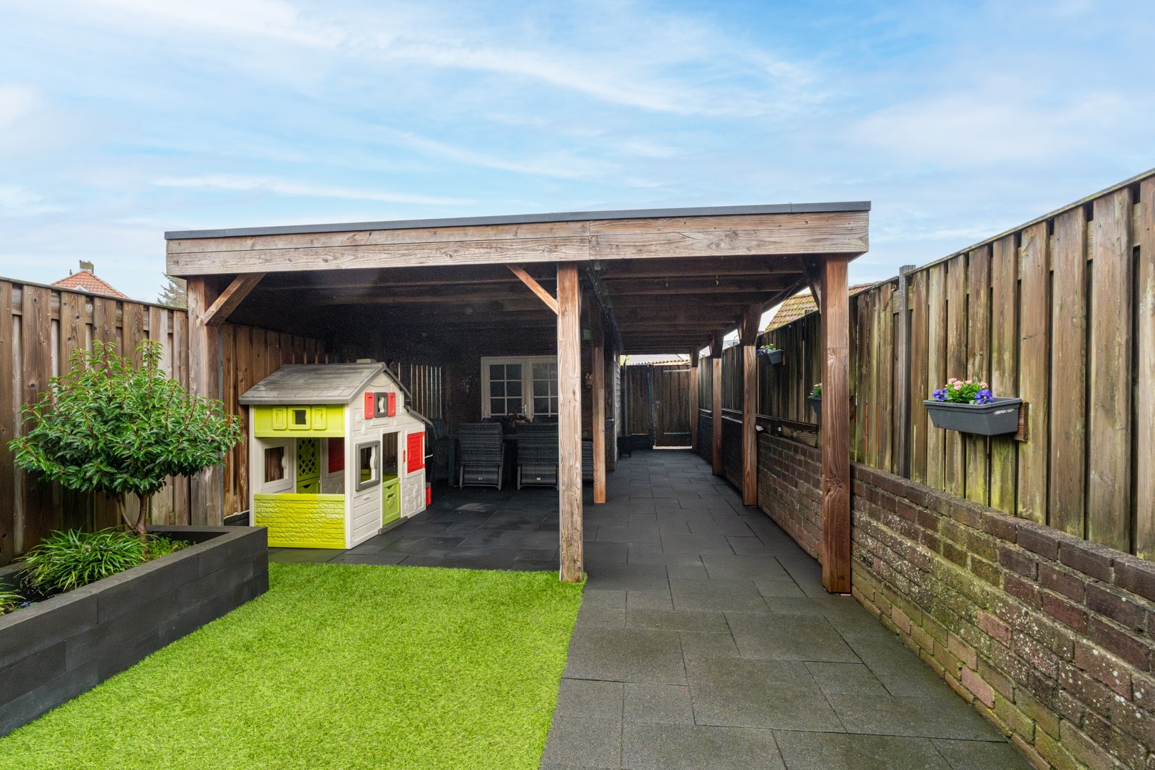 De achtertuin is verzorgd aangelegd met bestrating en kunstgras: groen zonder gedoe met maaien. De tuin ligt gunstig op het zuidwesten, dus zonliefhebbers zitten hier helemaal goed. Achterop het perceel staat een royale overkapping met berging – ideaal voor opslag, hobby’s of een gezellige loungehoek. Onder de uitbouw is extra berg- of kruipruimte aanwezig. Werkendam zelf is een gezellig en ruim opgezet dorp met volop winkels, scholen en voorzieningen. Bovendien ben je binnen circa 10 minuten op de A27: perfect voor woon-werkverkeer.