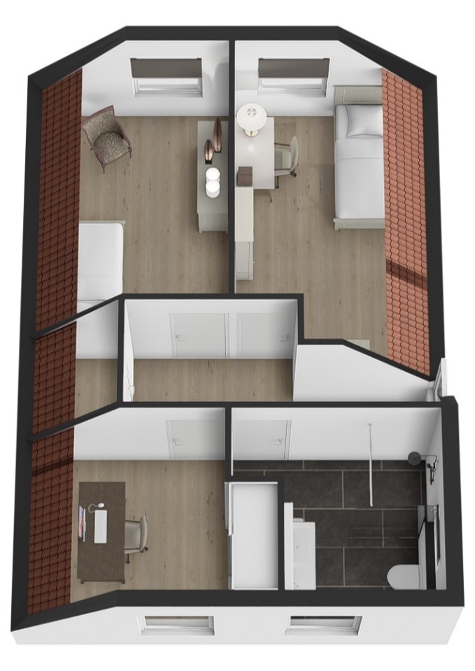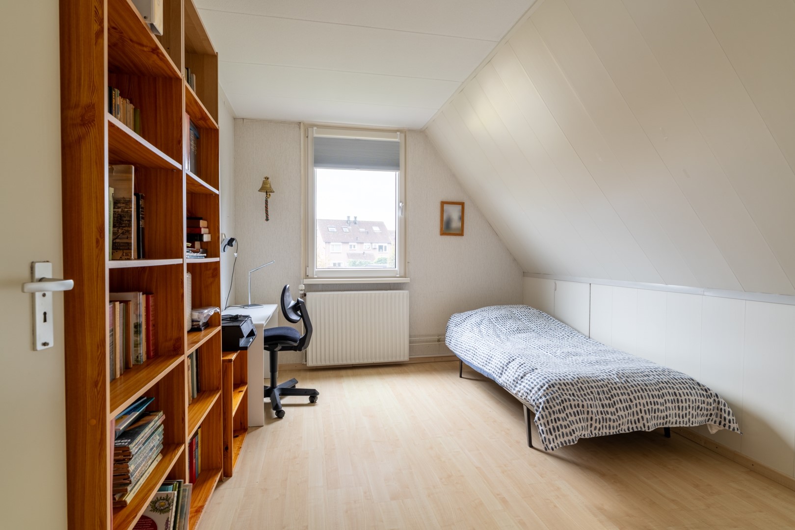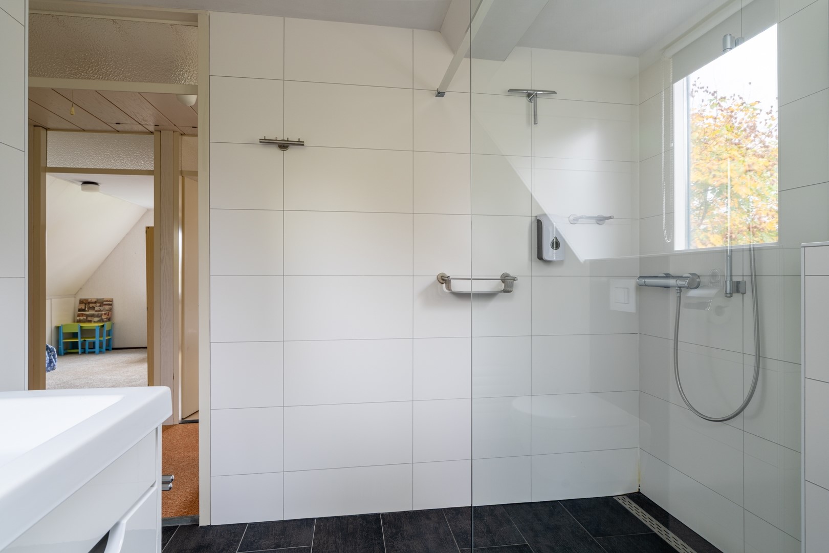 Op de begane grond bevindt zich een slaapkamer met een vaste kast, wastafel, airco en een erker. Een ideale ruimte voor wie gelijkvloers wil wonen of een fijne werk-/hobbykamer zoekt. Op de verdieping vind je drie goed formaat slaapkamers. De kozijnen zijn hier van onderhoudsarm kunststof met dubbel glas. De badkamer is modern en verzorgd: voorzien van een inloopdouche, dubbel wastafelmeubel, toilet en elektrische vloerverwarming. Op de overloop is nog een bergkast aanwezig. Via een vlizotrap is de ruime zolder bereikbaar, met in het midden stahoogte – ideaal voor extra bergruimte.