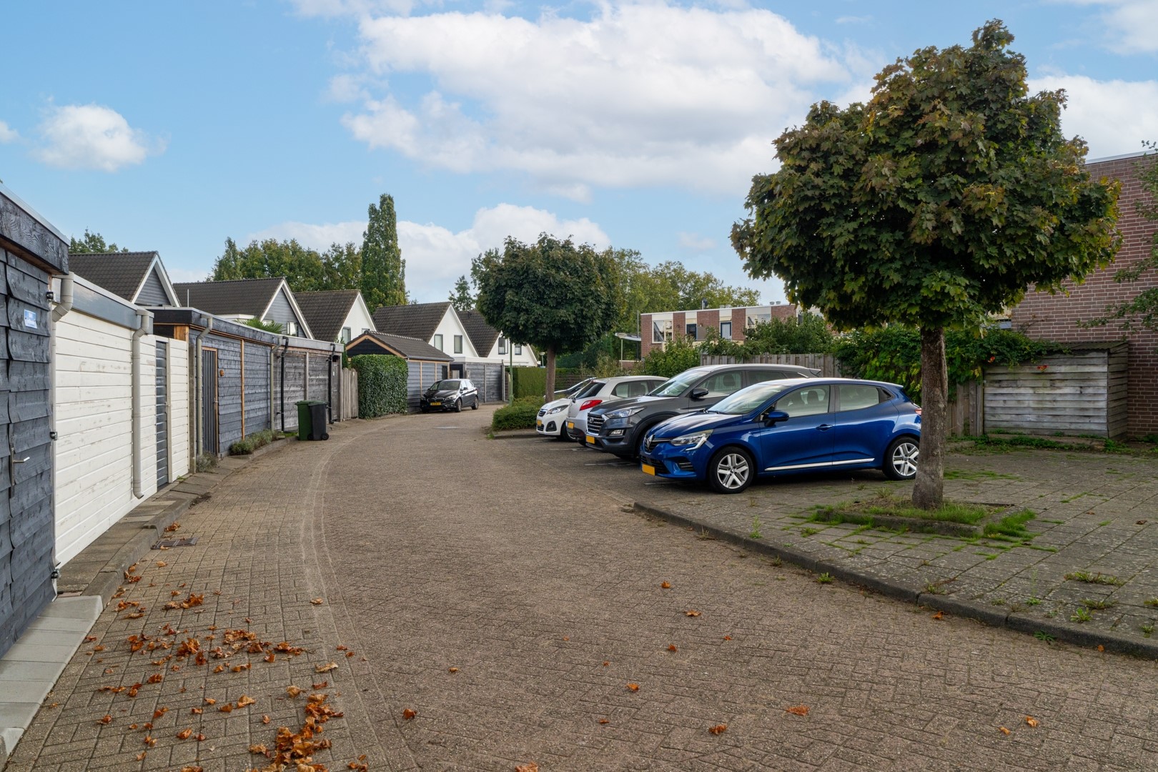 De woning staat op een royaal perceel van 509 m² met een diepe, groene tuin met veel privacy, groene planten, gras en prettige zitplekken. Achterin vind je een tuinschuur (ca. 4 x 2 m) – altijd handig voor tuingereedschap of fietsen. Daarnaast beschikt de woning over een grote garage (ca. 6,5 x 3 m) en een ruime oprit, waar je met gemak twee auto’s kwijt kunt. Hier geniet je van privacy, rust en volop buitenruimte.