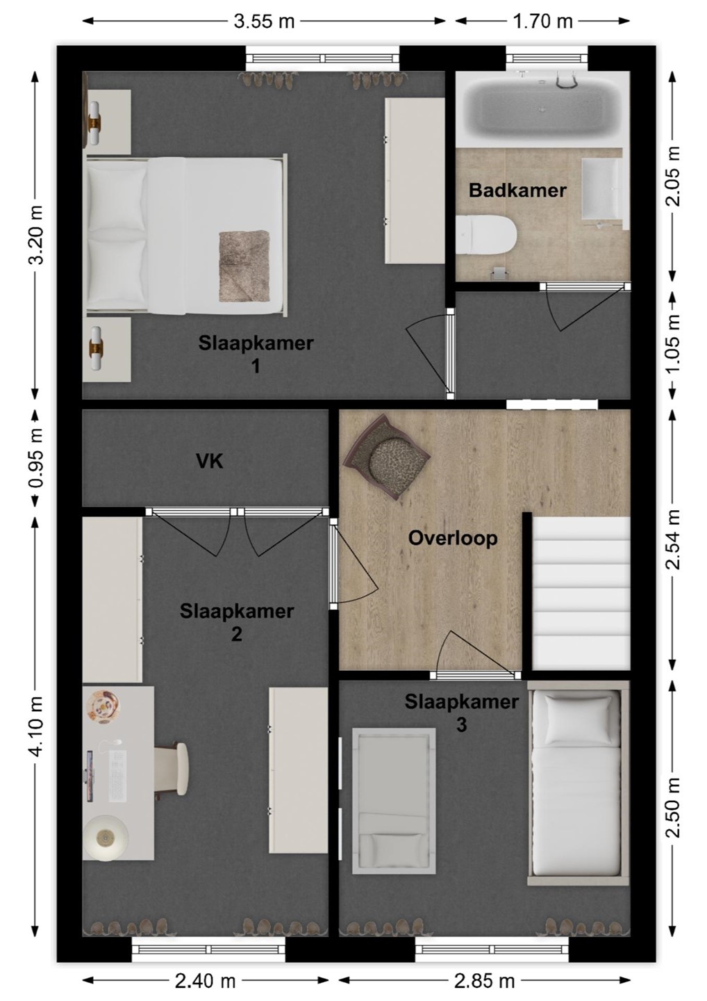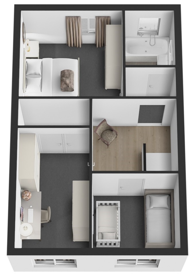 Slaapkamers en badkamer: