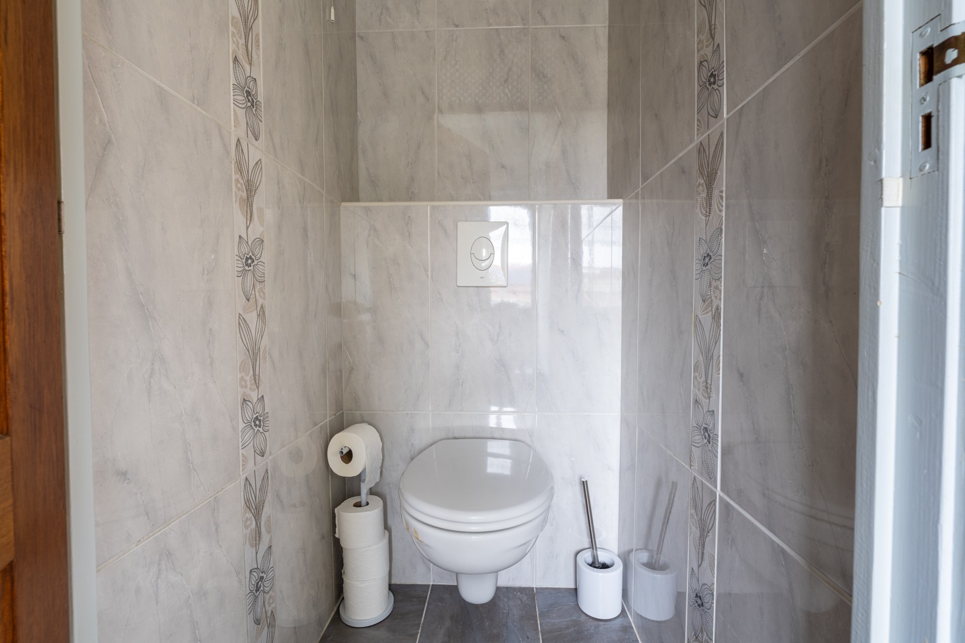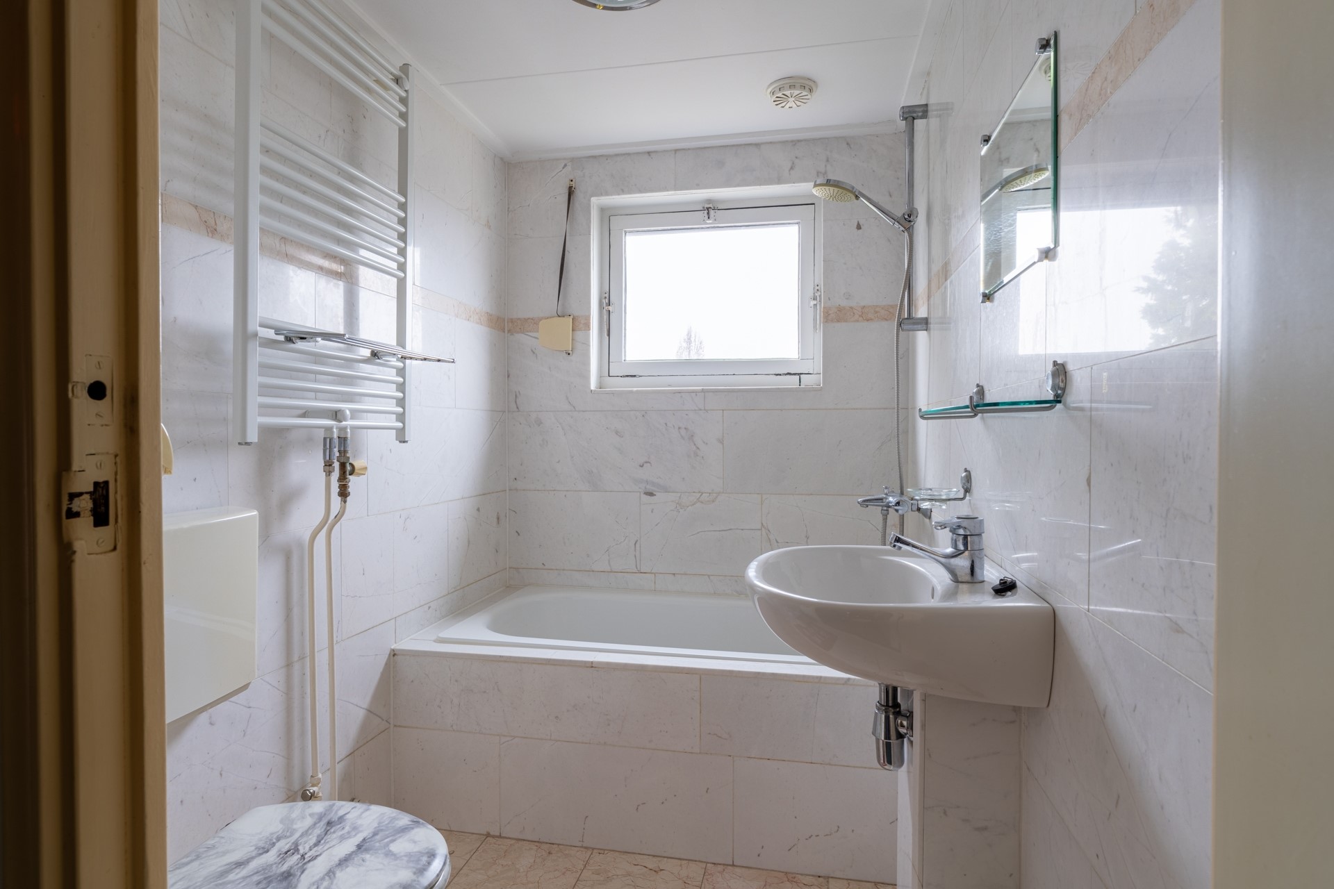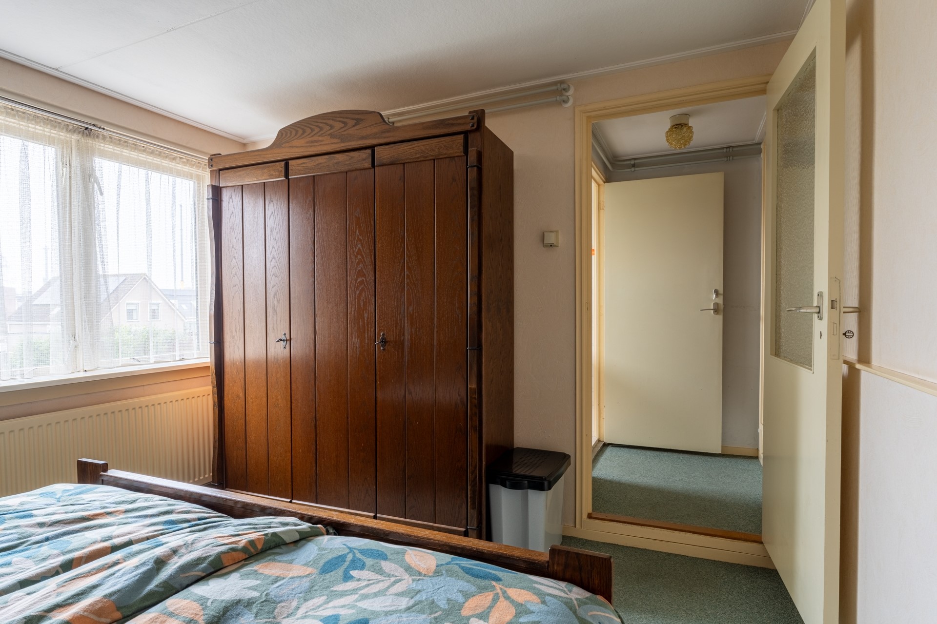 De woning heeft drie slaapkamers op de eerste verdieping. De twee slaapkamers aan de voorzijde zijn uitgerust met een dakkapel, wat zorgt voor extra ruimte en licht. Aan de achterzijde is een dakopbouw geplaatst, wat de plafondhoogte aanzienlijk vergroot, zodat je zonder moeite rechtop kunt staan. Eén van de slaapkamers heeft twee ruime ingebouwde kasten. De badkamer is volledig betegeld met marmeren tegels en beschikt over een toilet, wastafel en een douche/ligbad combinatie.