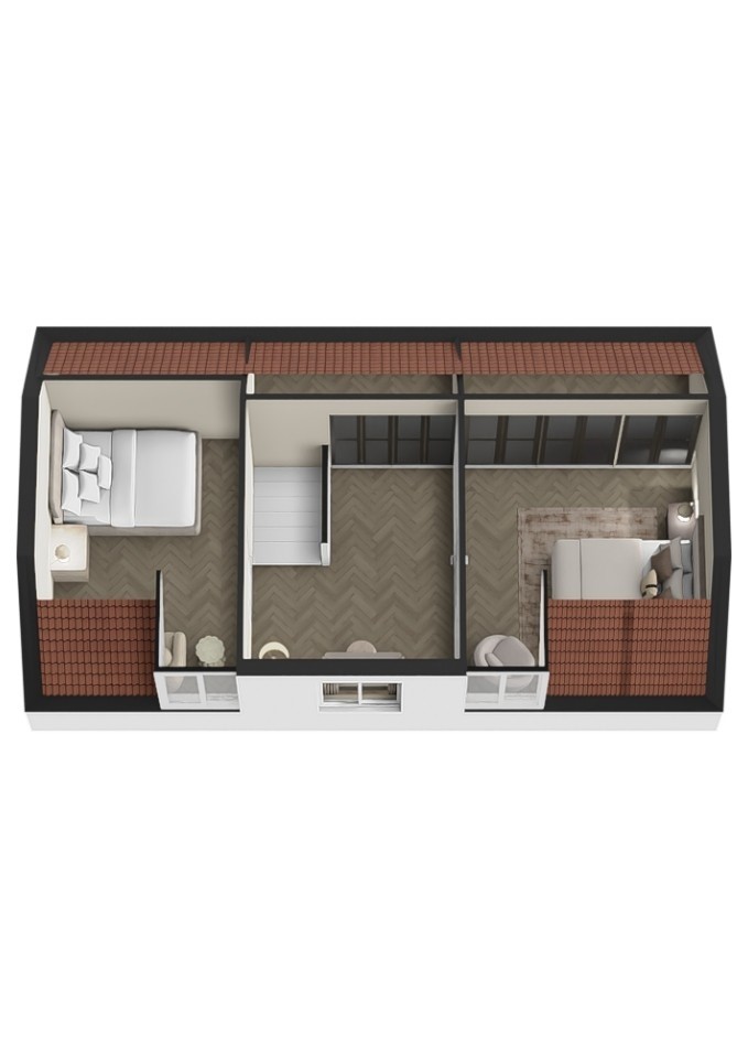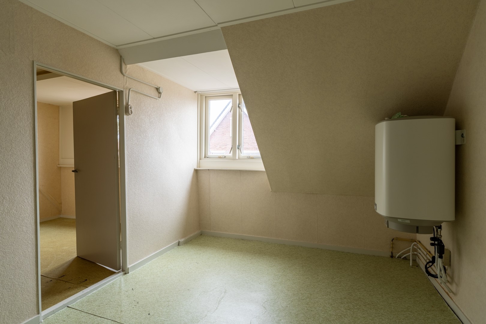 De woning heeft een overzichtelijke indeling. Op de begane grond bevinden zich twee ruimtes: een kamer met plek voor de keuken en eettafel en een woonkamer van prettig formaat. De woonkamer is voorzien van dubbele beglazing. In de keukenruimte is daarnaast een ruime trapkast aanwezig. De badkamer bevindt zich eveneens op de begane grond en is uitgerust met een zitbad en toilet. Op de eerste verdieping kom je uit op de overloop, met aan weerszijden twee slaapkamers. Aan de voorzijde zorgt een grote dakkapel voor extra ruimte en licht. Beide kamers zijn van goed formaat. Zowel op één van de kamers als op de overloop zijn ruime knieschotten aanwezig, ideaal voor extra bergruimte. De woning wordt verwarmd middels gaskachels. De warmwatervoorziening loopt via een Itho Daalderop boiler uit 2022.