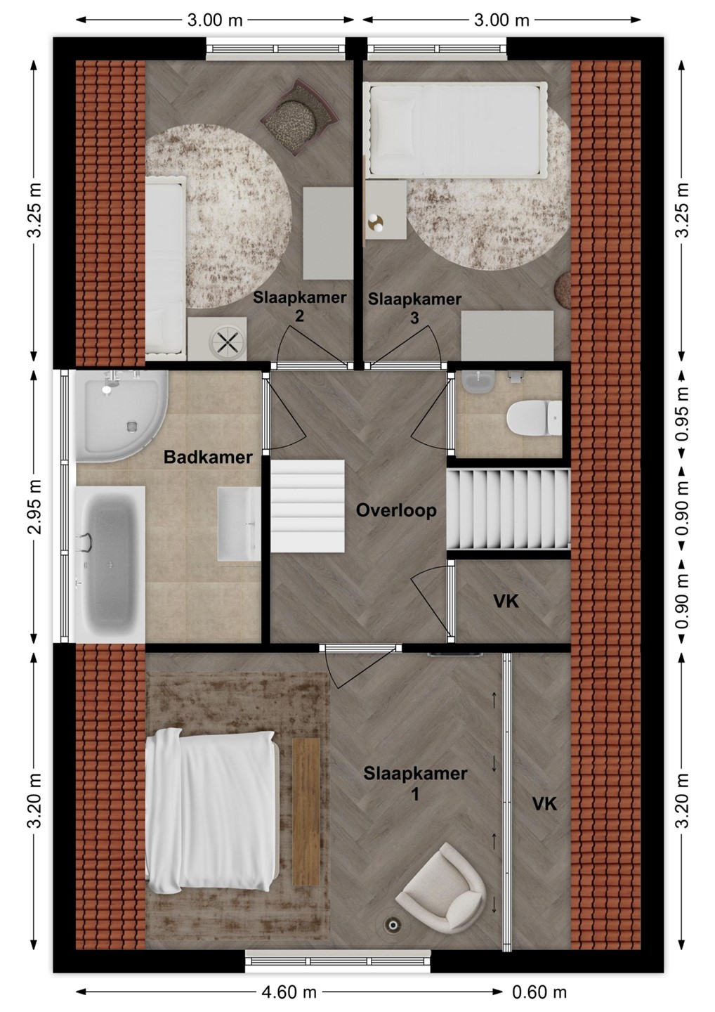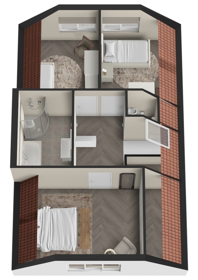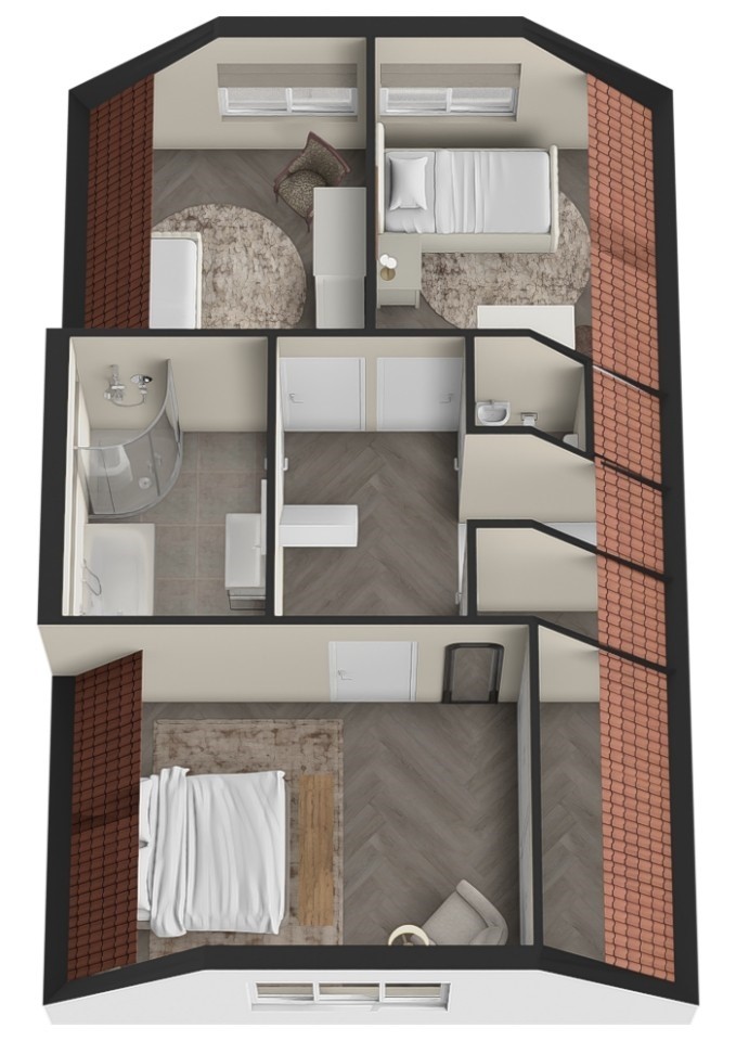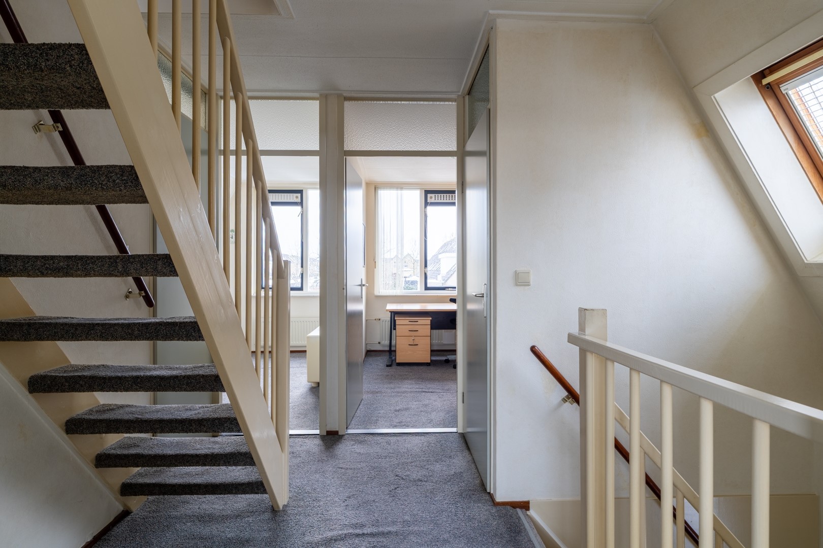 Deze woning is uitermate geschikt voor een (groeiend) gezin. Op de eerste verdieping bevinden zich drie volwaardige slaapkamers, waaronder een ruime hoofdslaapkamer met een grote vaste kast. De zolder biedt extra mogelijkheden: momenteel ingericht met een washoek en de opstelplaats voor de cv-installatie, maar dankzij twee grote kozijnen is hier eenvoudig een extra slaapkamer, hobbyruimte of thuiswerkplek te realiseren. De badkamer is compleet uitgevoerd en voorzien van een dakkapel, wat zorgt voor extra daglicht en ruimte. Je beschikt hier over een douche, ligbad en wastafel. Daarnaast is er op de verdieping een separaat toilet aanwezig.