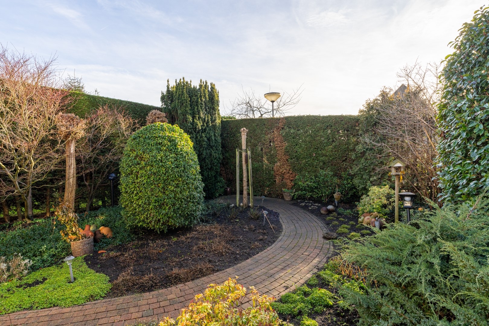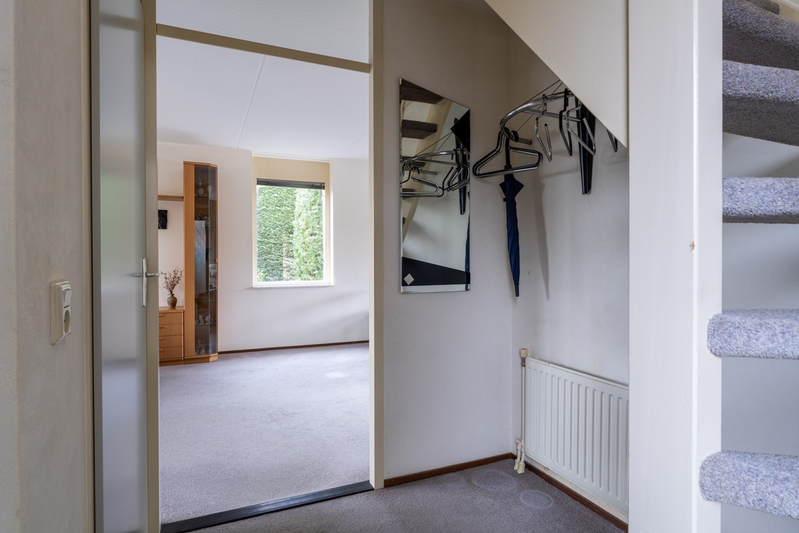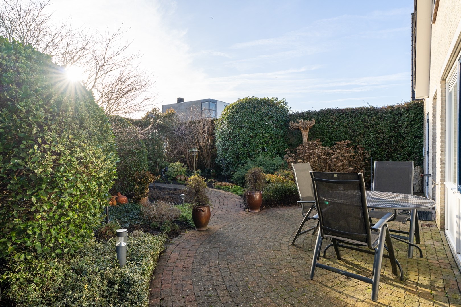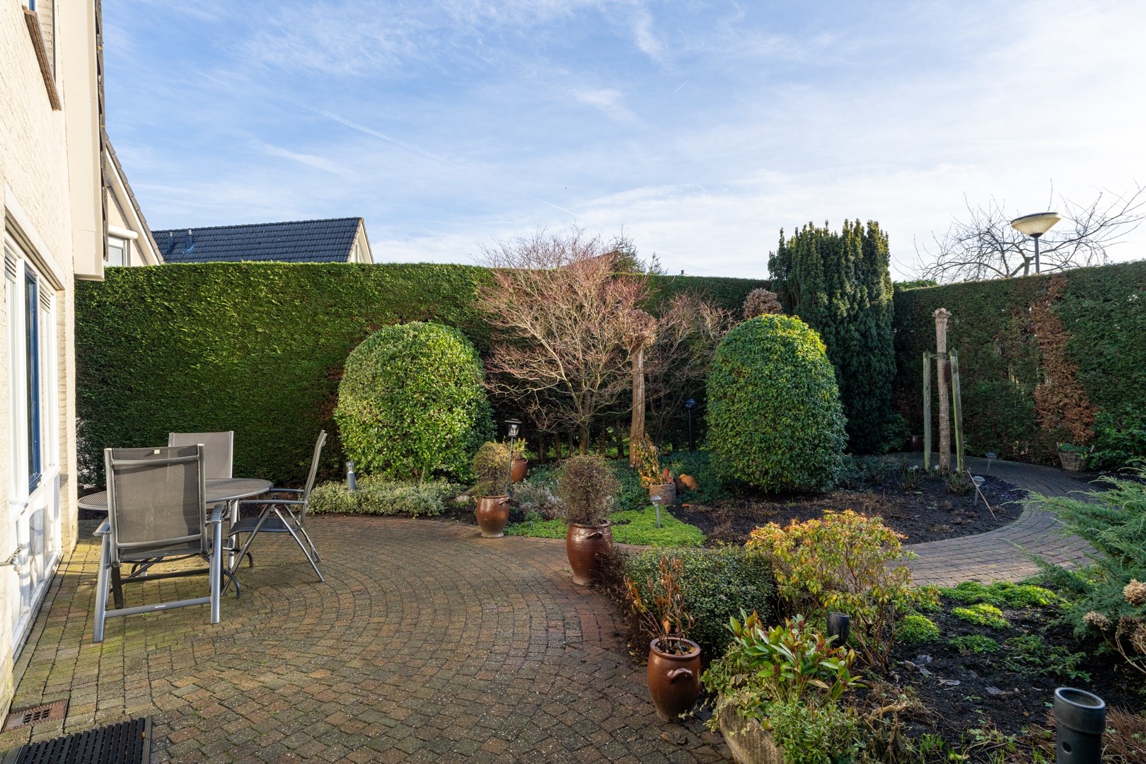 De tuin is groen, omsloten en biedt veel privacy dankzij de volle coniferenhaag. Een heerlijke plek om in alle rust buiten te zitten, met weinig inkijk van de buren. Verder beschikt de woning over een ruime garage van circa 3 x 6 meter en een lange oprit van ongeveer 9 meter. Parkeren op eigen terrein is hier dan ook geen enkel probleem.